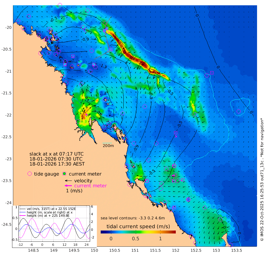 22cm/s 150T +10cm/s rms + 2cm/s 5T. Brampton I 18m 11cm/s -178T +9cm/s rms + 6cm/s 66T. Wigton I 38m 20cm/s -153T +7cm/s rms + 8cm/s 141T. Tern I 47m 22cm/s -145T +7cm/s rms + 12cm/s 54T. N Bugatti Rf 64m 16cm/s -133T +3cm/s rms + 13cm/s 178T. W Bugatti Rf 70m 16cm/s -137T +3cm/s rms + 3cm/s -130T. Creal Rf 69m 28cm/s -69T +7cm/s rms + 4cm/s 2T. North Rf 62m 23cm/s -54T +9cm/s rms + 2cm/s -56T. Cape Capricorn 26m 10cm/s -86T +5cm/s rms + 3cm/s 166T. L Musgrave I 42m 14cm/s -81T +9cm/s rms + 1cm/s -142T. Round Hill Hd 26m 4cm/s -160T +41cm/s rms + 48cm/s 116T. GBRELR 305m 6cm/s -110T +7cm/s rms + 6cm/s 123T. GBRCCH 92m 42cm/s -89T +8cm/s rms + 3cm/s -33T. GBRHIN 45m 28cm/s -92T +4cm/s rms + 2cm/s 41T. GBRHIS 46m 27cm/s -108T +16cm/s rms + 4cm/s -22T. GBROTE 59m -101cm Bell Cay -52cm Holbourne I -151cm Tern I -65cm Bugatti Rf -101cm Creal Rf -42cm White Tip I -34cm North Rf -45cm Rundle I -12cm L Musgrave I -6cm Saumarez Reef -36cm Kennedy Reef -26cm Unnamed Reef No. 2 -44cm Abbot Point -54cm Bowen -80cm Tideway Reef -72cm Hayman Island -111cm Square Reef -67cm Double Bay -84cm Molle Island -90cm Cid Harbour -73cm Hook Island -85cm Border Island -88cm Haslewood Island -93cm Shute Harbour -127cm Thomas Island -126cm Credlin Reef -129cm East Repulse Island -131cm Blacksmith Island -146cm Laguna Quays -130cm Carlisle Island (Off) -142cm St. Bees Island -132cm Scawfell Island -155cm Penrith Island -175cm Mackay Outer Harbour -188cm Hay Point -194cm Prudhoe Island -179cm Middle Island (Percy Isles) -90cm Gannet Cay -7cm Elusive Reef -261cm Mcewin Islet -174cm Mumford Island -189cm Osborn Island -193cm Marquis Island -170cm Reef Point -128cm High Peak Island -109cm Port Clinton -96cm Peaked Island -27cm Karamea Bank -68cm Johnson Patch - NW -78cm Rosslyn Bay -76cm Middle Island (Keppel Isles) -94cm Port Alma -26cm Heron Island -31cm One Tree Islet -36cm Polmaise Reef -44cm Tryon Island -26cm Rock Cod Shoal -47cm Gatcombe Head -62cm Gladstone -51cm South Trees (Storm Surge) -22cm Clews Point -19cm Round Hill Head -9cm Lady Elliot Island -9cm Breaksea Spit -16cm Bundaberg (Burnett Heads) -14cm Elliot Heads -11cm Waddy Point (Fraser Island)