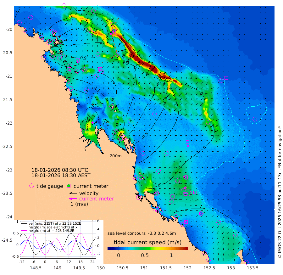 36cm/s 158T +10cm/s rms + 2cm/s 5T. Brampton I 18m 31cm/s 173T +9cm/s rms + 6cm/s 66T. Wigton I 38m 25cm/s -156T +7cm/s rms + 8cm/s 141T. Tern I 47m 43cm/s -156T +7cm/s rms + 12cm/s 54T. N Bugatti Rf 64m 42cm/s -145T +3cm/s rms + 13cm/s 178T. W Bugatti Rf 70m 23cm/s -155T +3cm/s rms + 3cm/s -130T. Creal Rf 69m 36cm/s -73T +7cm/s rms + 4cm/s 2T. North Rf 62m 33cm/s -43T +9cm/s rms + 2cm/s -56T. Cape Capricorn 26m 10cm/s -87T +5cm/s rms + 3cm/s 166T. L Musgrave I 42m 14cm/s -76T +9cm/s rms + 1cm/s -142T. Round Hill Hd 26m 6cm/s -165T +41cm/s rms + 48cm/s 116T. GBRELR 305m 16cm/s -85T +7cm/s rms + 6cm/s 123T. GBRCCH 92m 49cm/s -99T +8cm/s rms + 3cm/s -33T. GBRHIN 45m 31cm/s -94T +4cm/s rms + 2cm/s 41T. GBRHIS 46m 30cm/s -119T +16cm/s rms + 4cm/s -22T. GBROTE 59m -56cm Bell Cay -29cm Holbourne I -109cm Tern I -42cm Bugatti Rf -72cm Creal Rf -22cm White Tip I 3cm North Rf 7cm Rundle I 13cm L Musgrave I 13cm Saumarez Reef -11cm Kennedy Reef -4cm Unnamed Reef No. 2 -21cm Abbot Point -31cm Bowen -60cm Tideway Reef -45cm Hayman Island -83cm Square Reef -49cm Double Bay -65cm Molle Island -62cm Cid Harbour -53cm Hook Island -62cm Border Island -65cm Haslewood Island -68cm Shute Harbour -101cm Thomas Island -93cm Credlin Reef -100cm East Repulse Island -100cm Blacksmith Island -121cm Laguna Quays -99cm Carlisle Island (Off) -109cm St. Bees Island -96cm Scawfell Island -112cm Penrith Island -140cm Mackay Outer Harbour -148cm Hay Point -152cm Prudhoe Island -124cm Middle Island (Percy Isles) -47cm Gannet Cay 7cm Elusive Reef -230cm Mcewin Islet -100cm Mumford Island -119cm Osborn Island -122cm Marquis Island -105cm Reef Point -75cm High Peak Island -50cm Port Clinton -33cm Peaked Island 12cm Karamea Bank -17cm Johnson Patch - NW -15cm Rosslyn Bay -11cm Middle Island (Keppel Isles) -24cm Port Alma 11cm Heron Island 9cm One Tree Islet 9cm Polmaise Reef -2cm Tryon Island 17cm Rock Cod Shoal 2cm Gatcombe Head -6cm Gladstone 4cm South Trees (Storm Surge) 20cm Clews Point 17cm Round Hill Head 14cm Lady Elliot Island 12cm Breaksea Spit 22cm Bundaberg (Burnett Heads) 27cm Elliot Heads 5cm Waddy Point (Fraser Island)