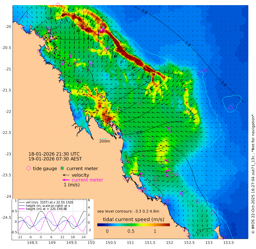 37cm/s -180T +10cm/s rms + 2cm/s 5T. Brampton I 18m 47cm/s 174T +9cm/s rms + 6cm/s 66T. Wigton I 38m 25cm/s -148T +7cm/s rms + 8cm/s 141T. Tern I 47m 61cm/s -161T +7cm/s rms + 12cm/s 54T. N Bugatti Rf 64m 77cm/s -147T +3cm/s rms + 13cm/s 178T. W Bugatti Rf 70m 29cm/s -163T +3cm/s rms + 3cm/s -130T. Creal Rf 69m 57cm/s -79T +7cm/s rms + 4cm/s 2T. North Rf 62m 48cm/s -33T +9cm/s rms + 2cm/s -56T. Cape Capricorn 26m 16cm/s -115T +5cm/s rms + 3cm/s 166T. L Musgrave I 42m 12cm/s -70T +9cm/s rms + 1cm/s -142T. Round Hill Hd 26m 7cm/s -104T +41cm/s rms + 48cm/s 116T. GBRELR 305m 44cm/s -68T +7cm/s rms + 6cm/s 123T. GBRCCH 92m 57cm/s -110T +8cm/s rms + 3cm/s -33T. GBRHIN 45m 33cm/s -95T +4cm/s rms + 2cm/s 41T. GBRHIS 46m 31cm/s -119T +16cm/s rms + 4cm/s -22T. GBROTE 59m 55cm Bell Cay 44cm Holbourne I 3cm Tern I 37cm Bugatti Rf 16cm Creal Rf 54cm White Tip I 110cm North Rf 130cm Rundle I 100cm L Musgrave I 76cm Saumarez Reef 57cm Kennedy Reef 73cm Unnamed Reef No. 2 51cm Abbot Point 43cm Bowen 19cm Tideway Reef 40cm Hayman Island 11cm Square Reef 25cm Double Bay 22cm Molle Island 23cm Cid Harbour 21cm Hook Island 14cm Border Island 9cm Haslewood Island 15cm Shute Harbour -8cm Thomas Island 11cm Credlin Reef -5cm East Repulse Island -7cm Blacksmith Island -32cm Laguna Quays -5cm Carlisle Island (Off) -20cm St. Bees Island -8cm Scawfell Island 1cm Penrith Island -29cm Mackay Outer Harbour -29cm Hay Point -30cm Prudhoe Island 13cm Middle Island (Percy Isles) 54cm Gannet Cay 79cm Elusive Reef -118cm Mcewin Islet 47cm Mumford Island 29cm Osborn Island 24cm Marquis Island 36cm Reef Point 47cm High Peak Island 83cm Port Clinton 103cm Peaked Island 118cm Karamea Bank 110cm Johnson Patch - NW 123cm Rosslyn Bay 130cm Middle Island (Keppel Isles) 119cm Port Alma 114cm Heron Island 126cm One Tree Islet 120cm Polmaise Reef 119cm Tryon Island 130cm Rock Cod Shoal 114cm Gatcombe Head 115cm Gladstone 123cm South Trees (Storm Surge) 125cm Clews Point 113cm Round Hill Head 99cm Lady Elliot Island 102cm Breaksea Spit 113cm Bundaberg (Burnett Heads) 119cm Elliot Heads 83cm Waddy Point (Fraser Island)