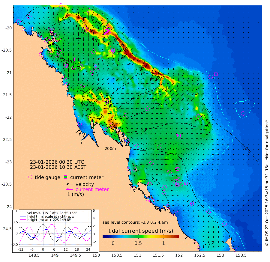 35cm/s 173T +10cm/s rms + 2cm/s 5T. Brampton I 18m 45cm/s 172T +9cm/s rms + 6cm/s 66T. Wigton I 38m 18cm/s -157T +7cm/s rms + 8cm/s 141T. Tern I 47m 53cm/s -164T +7cm/s rms + 12cm/s 54T. N Bugatti Rf 64m 63cm/s -151T +3cm/s rms + 13cm/s 178T. W Bugatti Rf 70m 28cm/s -170T +3cm/s rms + 3cm/s -130T. Creal Rf 69m 38cm/s -84T +7cm/s rms + 4cm/s 2T. North Rf 62m 37cm/s -33T +9cm/s rms + 2cm/s -56T. Cape Capricorn 26m 11cm/s -122T +5cm/s rms + 3cm/s 166T. L Musgrave I 42m 7cm/s -84T +9cm/s rms + 1cm/s -142T. Round Hill Hd 26m 5cm/s -134T +41cm/s rms + 48cm/s 116T. GBRELR 305m 36cm/s -70T +7cm/s rms + 6cm/s 123T. GBRCCH 92m 40cm/s -115T +8cm/s rms + 3cm/s -33T. GBRHIN 45m 22cm/s -97T +4cm/s rms + 2cm/s 41T. GBRHIS 46m 24cm/s -133T +16cm/s rms + 4cm/s -22T. GBROTE 59m 76cm Bell Cay 54cm Holbourne I 37cm Tern I 50cm Bugatti Rf 41cm Creal Rf 59cm White Tip I 110cm North Rf 132cm Rundle I 94cm L Musgrave I 82cm Saumarez Reef 59cm Kennedy Reef 72cm Unnamed Reef No. 2 56cm Abbot Point 50cm Bowen 37cm Tideway Reef 51cm Hayman Island 40cm Square Reef 46cm Double Bay 38cm Molle Island 36cm Cid Harbour 41cm Hook Island 25cm Border Island 29cm Haslewood Island 33cm Shute Harbour 19cm Thomas Island 38cm Credlin Reef 20cm East Repulse Island 14cm Blacksmith Island 0cm Laguna Quays 27cm Carlisle Island (Off) 19cm St. Bees Island 18cm Scawfell Island 35cm Penrith Island 10cm Mackay Outer Harbour 13cm Hay Point 23cm Prudhoe Island 59cm Middle Island (Percy Isles) 72cm Gannet Cay 72cm Elusive Reef -63cm Mcewin Islet 75cm Mumford Island 54cm Osborn Island 58cm Marquis Island 61cm Reef Point 77cm High Peak Island 112cm Port Clinton 128cm Peaked Island 119cm Karamea Bank 125cm Johnson Patch - NW 136cm Rosslyn Bay 143cm Middle Island (Keppel Isles) 140cm Port Alma 115cm Heron Island 121cm One Tree Islet 121cm Polmaise Reef 116cm Tryon Island 129cm Rock Cod Shoal 122cm Gatcombe Head 128cm Gladstone 131cm South Trees (Storm Surge) 119cm Clews Point 111cm Round Hill Head 95cm Lady Elliot Island 90cm Breaksea Spit 115cm Bundaberg (Burnett Heads) 120cm Elliot Heads 74cm Waddy Point (Fraser Island)