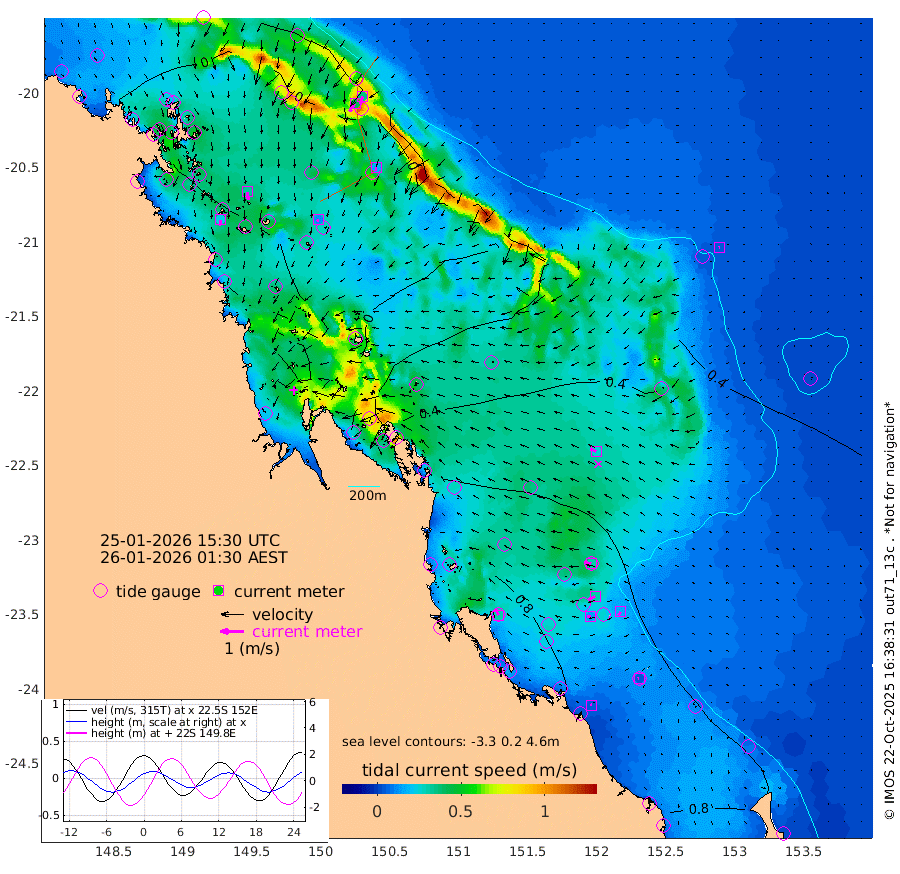 24cm/s -177T +10cm/s rms + 2cm/s 5T. Brampton I 18m 33cm/s 173T +9cm/s rms + 6cm/s 66T. Wigton I 38m 11cm/s -150T +7cm/s rms + 8cm/s 141T. Tern I 47m 35cm/s -162T +7cm/s rms + 12cm/s 54T. N Bugatti Rf 64m 42cm/s -145T +3cm/s rms + 13cm/s 178T. W Bugatti Rf 70m 17cm/s -177T +3cm/s rms + 3cm/s -130T. Creal Rf 69m 31cm/s -76T +7cm/s rms + 4cm/s 2T. North Rf 62m 31cm/s -27T +9cm/s rms + 2cm/s -56T. Cape Capricorn 26m 4cm/s -112T +5cm/s rms + 3cm/s 166T. L Musgrave I 42m 5cm/s -68T +9cm/s rms + 1cm/s -142T. Round Hill Hd 26m 3cm/s -107T +41cm/s rms + 48cm/s 116T. GBRELR 305m 26cm/s -66T +7cm/s rms + 6cm/s 123T. GBRCCH 92m 30cm/s -114T +8cm/s rms + 3cm/s -33T. GBRHIN 45m 13cm/s -99T +4cm/s rms + 2cm/s 41T. GBRHIS 46m 16cm/s -144T +16cm/s rms + 4cm/s -22T. GBROTE 59m 48cm Bell Cay 6cm Holbourne I 15cm Tern I 14cm Bugatti Rf 13cm Creal Rf 16cm White Tip I 69cm North Rf 89cm Rundle I 58cm L Musgrave I 39cm Saumarez Reef 17cm Kennedy Reef 23cm Unnamed Reef No. 2 6cm Abbot Point 4cm Bowen -1cm Tideway Reef 9cm Hayman Island -5cm Square Reef 8cm Double Bay -16cm Molle Island 2cm Cid Harbour 5cm Hook Island -3cm Border Island -3cm Haslewood Island 0cm Shute Harbour -3cm Thomas Island 13cm Credlin Reef 1cm East Repulse Island -1cm Blacksmith Island -13cm Laguna Quays 8cm Carlisle Island (Off) 15cm St. Bees Island 2cm Scawfell Island 15cm Penrith Island 3cm Mackay Outer Harbour 9cm Hay Point 11cm Prudhoe Island 49cm Middle Island (Percy Isles) 54cm Gannet Cay 33cm Elusive Reef 5cm Mcewin Islet 54cm Mumford Island 53cm Osborn Island 63cm Marquis Island 56cm Reef Point 57cm High Peak Island 83cm Port Clinton 84cm Peaked Island 75cm Karamea Bank 86cm Johnson Patch - NW 97cm Rosslyn Bay 97cm Middle Island (Keppel Isles) 105cm Port Alma 72cm Heron Island 77cm One Tree Islet 81cm Polmaise Reef 75cm Tryon Island 85cm Rock Cod Shoal 84cm Gatcombe Head 95cm Gladstone 94cm South Trees (Storm Surge) 78cm Clews Point 72cm Round Hill Head 58cm Lady Elliot Island 58cm Breaksea Spit 77cm Bundaberg (Burnett Heads) 81cm Elliot Heads 44cm Waddy Point (Fraser Island)