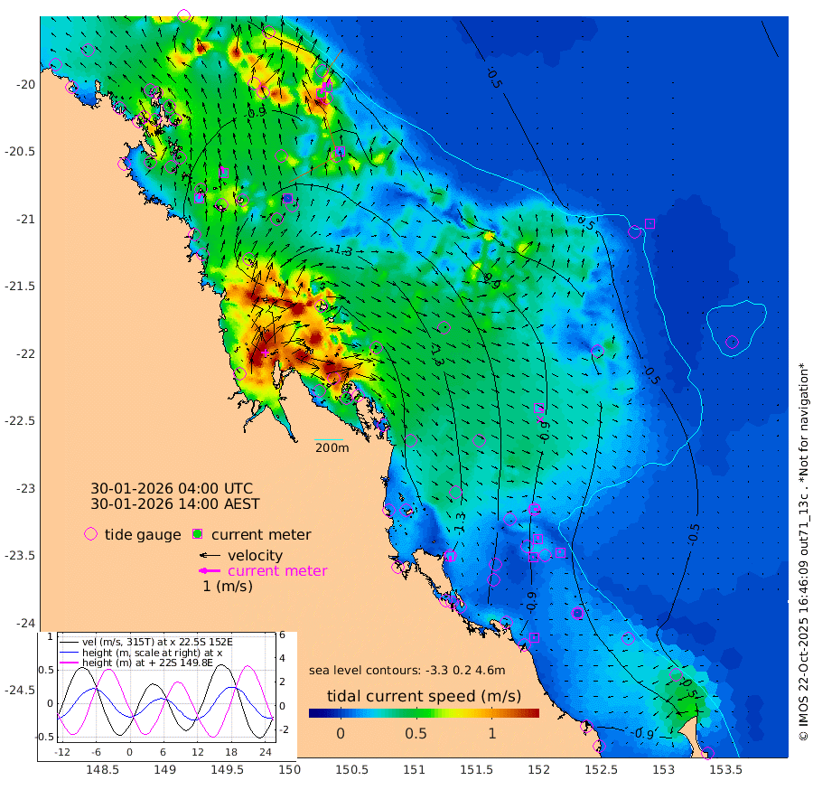 20cm/s 9T +10cm/s rms + 2cm/s 5T. Brampton I 18m 33cm/s -12T +9cm/s rms + 6cm/s 66T. Wigton I 38m 2cm/s 19T +7cm/s rms + 8cm/s 141T. Tern I 47m 39cm/s 9T +7cm/s rms + 12cm/s 54T. N Bugatti Rf 64m 54cm/s 23T +3cm/s rms + 13cm/s 178T. W Bugatti Rf 70m 14cm/s -21T +3cm/s rms + 3cm/s -130T. Creal Rf 69m 13cm/s 86T +7cm/s rms + 4cm/s 2T. North Rf 62m 19cm/s 178T +9cm/s rms + 2cm/s -56T. Cape Capricorn 26m 2cm/s 7T +5cm/s rms + 3cm/s 166T. L Musgrave I 42m 6cm/s -111T +9cm/s rms + 1cm/s -142T. Round Hill Hd 26m 2cm/s 43T +41cm/s rms + 48cm/s 116T. GBRELR 305m 27cm/s 119T +7cm/s rms + 6cm/s 123T. GBRCCH 92m 12cm/s 11T +8cm/s rms + 3cm/s -33T. GBRHIN 45m 6cm/s -77T +4cm/s rms + 2cm/s 41T. GBRHIS 46m 12cm/s -37T +16cm/s rms + 4cm/s -22T. GBROTE 59m -130cm Bell Cay -78cm Holbourne I -141cm Tern I -77cm Bugatti Rf -98cm Creal Rf -66cm White Tip I -96cm North Rf -130cm Rundle I -64cm L Musgrave I -42cm Saumarez Reef -66cm Kennedy Reef -70cm Unnamed Reef No. 2 -78cm Abbot Point -82cm Bowen -81cm Tideway Reef -90cm Hayman Island -98cm Square Reef -96cm Double Bay -83cm Molle Island -93cm Cid Harbour -84cm Hook Island -78cm Border Island -87cm Haslewood Island -95cm Shute Harbour -106cm Thomas Island -122cm Credlin Reef -124cm East Repulse Island -105cm Blacksmith Island -110cm Laguna Quays -126cm Carlisle Island (Off) -134cm St. Bees Island -126cm Scawfell Island -140cm Penrith Island -141cm Mackay Outer Harbour -154cm Hay Point -160cm Prudhoe Island -171cm Middle Island (Percy Isles) -120cm Gannet Cay -43cm Elusive Reef -158cm Mcewin Islet -197cm Mumford Island -198cm Osborn Island -209cm Marquis Island -189cm Reef Point -154cm High Peak Island -167cm Port Clinton -166cm Peaked Island -99cm Karamea Bank -126cm Johnson Patch - NW -161cm Rosslyn Bay -166cm Middle Island (Keppel Isles) -177cm Port Alma -91cm Heron Island -97cm One Tree Islet -104cm Polmaise Reef -102cm Tryon Island -111cm Rock Cod Shoal -120cm Gatcombe Head -137cm Gladstone -131cm South Trees (Storm Surge) -94cm Clews Point -83cm Round Hill Head -59cm Lady Elliot Island -53cm Breaksea Spit -83cm Bundaberg (Burnett Heads) -84cm Elliot Heads -45cm Waddy Point (Fraser Island)