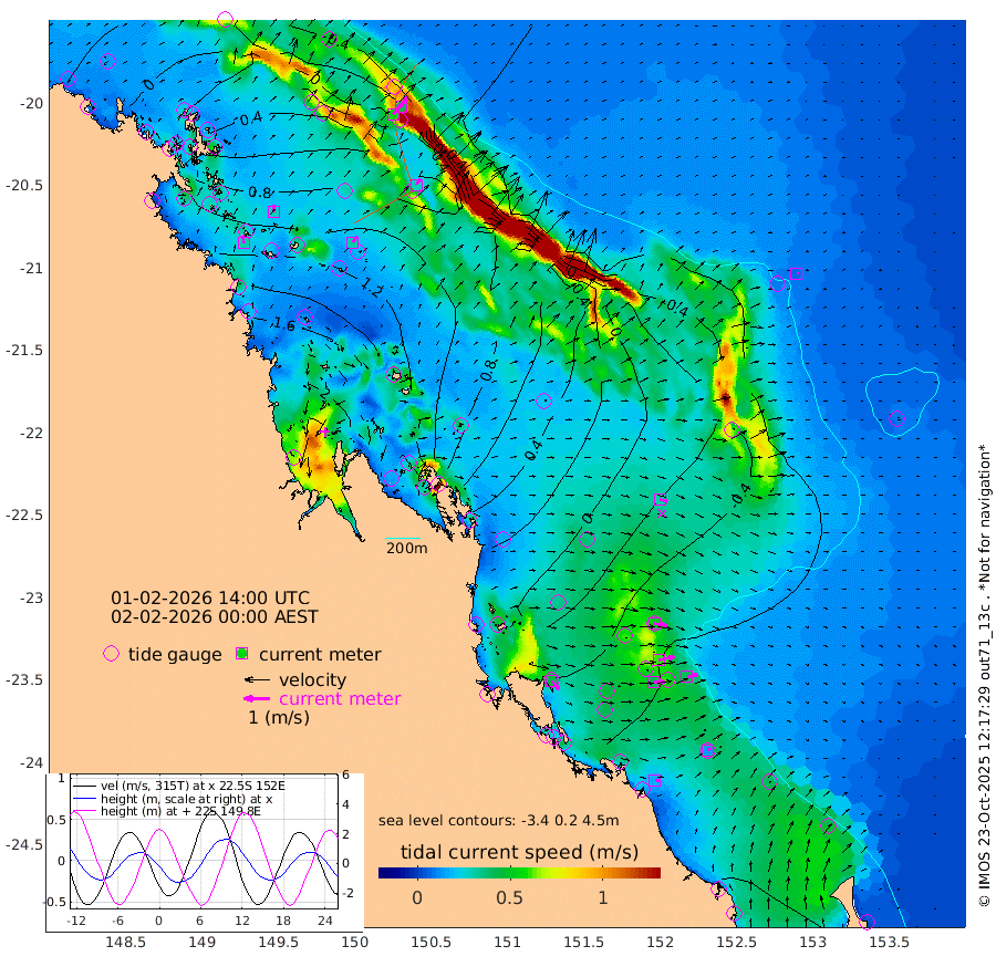 30cm/s -9T +10cm/s rms + 2cm/s 5T. Brampton I 18m 28cm/s -1T +9cm/s rms + 6cm/s 66T. Wigton I 38m 30cm/s 36T +7cm/s rms + 8cm/s 141T. Tern I 47m 44cm/s 23T +7cm/s rms + 12cm/s 54T. N Bugatti Rf 64m 54cm/s 40T +3cm/s rms + 13cm/s 178T. W Bugatti Rf 70m 28cm/s 38T +3cm/s rms + 3cm/s -130T. Creal Rf 69m 50cm/s 99T +7cm/s rms + 4cm/s 2T. North Rf 62m 44cm/s 139T +9cm/s rms + 2cm/s -56T. Cape Capricorn 26m 15cm/s 58T +5cm/s rms + 3cm/s 166T. L Musgrave I 42m 16cm/s 95T +9cm/s rms + 1cm/s -142T. Round Hill Hd 26m 7cm/s 77T +41cm/s rms + 48cm/s 116T. GBRELR 305m 30cm/s 106T +7cm/s rms + 6cm/s 123T. GBRCCH 92m 62cm/s 79T +8cm/s rms + 3cm/s -33T. GBRHIN 45m 42cm/s 89T +4cm/s rms + 2cm/s 41T. GBRHIS 46m 41cm/s 78T +16cm/s rms + 4cm/s -22T. GBROTE 59m 41cm Bell Cay -10cm Holbourne I 110cm Tern I 13cm Bugatti Rf 57cm Creal Rf -19cm White Tip I -49cm North Rf -46cm Rundle I -63cm L Musgrave I -56cm Saumarez Reef -29cm Kennedy Reef -40cm Unnamed Reef No. 2 -9cm Abbot Point 4cm Bowen 34cm Tideway Reef 20cm Hayman Island 57cm Square Reef 22cm Double Bay 30cm Molle Island 56cm Cid Harbour 24cm Hook Island 44cm Border Island 62cm Haslewood Island 53cm Shute Harbour 96cm Thomas Island 88cm Credlin Reef 114cm East Repulse Island 110cm Blacksmith Island 127cm Laguna Quays 110cm Carlisle Island (Off) 139cm St. Bees Island 119cm Scawfell Island 118cm Penrith Island 151cm Mackay Outer Harbour 163cm Hay Point 153cm Prudhoe Island 117cm Middle Island (Percy Isles) 35cm Gannet Cay -63cm Elusive Reef 276cm Mcewin Islet 104cm Mumford Island 146cm Osborn Island 162cm Marquis Island 134cm Reef Point 77cm High Peak Island 27cm Port Clinton 7cm Peaked Island -55cm Karamea Bank -27cm Johnson Patch - NW -11cm Rosslyn Bay -15cm Middle Island (Keppel Isles) 7cm Port Alma -55cm Heron Island -74cm One Tree Islet -56cm Polmaise Reef -43cm Tryon Island -56cm Rock Cod Shoal -33cm Gatcombe Head -19cm Gladstone -33cm South Trees (Storm Surge) -70cm Clews Point -61cm Round Hill Head -65cm Lady Elliot Island -70cm Breaksea Spit -62cm Bundaberg (Burnett Heads) -61cm Elliot Heads -56cm Waddy Point (Fraser Island)