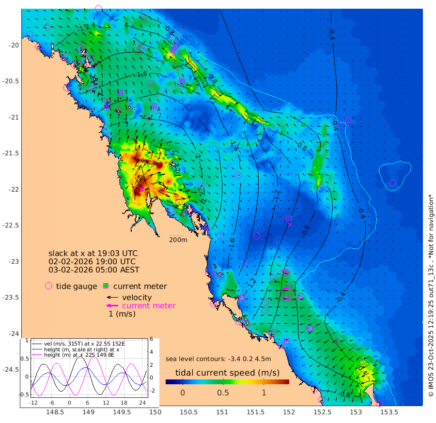 4cm/s -6T +10cm/s rms + 2cm/s 5T. Brampton I 18m 14cm/s -40T +9cm/s rms + 6cm/s 66T. Wigton I 38m 17cm/s -137T +7cm/s rms + 8cm/s 141T. Tern I 47m 15cm/s -83T +7cm/s rms + 12cm/s 54T. N Bugatti Rf 64m 13cm/s -1T +3cm/s rms + 13cm/s 178T. W Bugatti Rf 70m 14cm/s -72T +3cm/s rms + 3cm/s -130T. Creal Rf 69m 44cm/s -65T +7cm/s rms + 4cm/s 2T. North Rf 62m 24cm/s -55T +9cm/s rms + 2cm/s -56T. Cape Capricorn 26m 22cm/s -84T +5cm/s rms + 3cm/s 166T. L Musgrave I 42m 23cm/s -65T +9cm/s rms + 1cm/s -142T. Round Hill Hd 26m 6cm/s -63T +41cm/s rms + 48cm/s 116T. GBRELR 305m 4cm/s -2T +7cm/s rms + 6cm/s 123T. GBRCCH 92m 43cm/s -89T +8cm/s rms + 3cm/s -33T. GBRHIN 45m 32cm/s -88T +4cm/s rms + 2cm/s 41T. GBRHIS 46m 27cm/s -72T +16cm/s rms + 4cm/s -22T. GBROTE 59m -168cm Bell Cay -124cm Holbourne I -226cm Tern I -125cm Bugatti Rf -165cm Creal Rf -98cm White Tip I -83cm North Rf -114cm Rundle I -42cm L Musgrave I -52cm Saumarez Reef -101cm Kennedy Reef -88cm Unnamed Reef No. 2 -119cm Abbot Point -129cm Bowen -148cm Tideway Reef -141cm Hayman Island -186cm Square Reef -152cm Double Bay -152cm Molle Island -160cm Cid Harbour -146cm Hook Island -149cm Border Island -160cm Haslewood Island -163cm Shute Harbour -188cm Thomas Island -206cm Credlin Reef -209cm East Repulse Island -196cm Blacksmith Island -211cm Laguna Quays -219cm Carlisle Island (Off) -241cm St. Bees Island -207cm Scawfell Island -230cm Penrith Island -244cm Mackay Outer Harbour -260cm Hay Point -268cm Prudhoe Island -259cm Middle Island (Percy Isles) -151cm Gannet Cay -40cm Elusive Reef -314cm Mcewin Islet -262cm Mumford Island -276cm Osborn Island -293cm Marquis Island -259cm Reef Point -211cm High Peak Island -197cm Port Clinton -187cm Peaked Island -82cm Karamea Bank -131cm Johnson Patch - NW -164cm Rosslyn Bay -166cm Middle Island (Keppel Isles) -196cm Port Alma -77cm Heron Island -72cm One Tree Islet -89cm Polmaise Reef -88cm Tryon Island -91cm Rock Cod Shoal -114cm Gatcombe Head -144cm Gladstone -127cm South Trees (Storm Surge) -66cm Clews Point -63cm Round Hill Head -36cm Lady Elliot Island -23cm Breaksea Spit -72cm Bundaberg (Burnett Heads) -74cm Elliot Heads -16cm Waddy Point (Fraser Island)