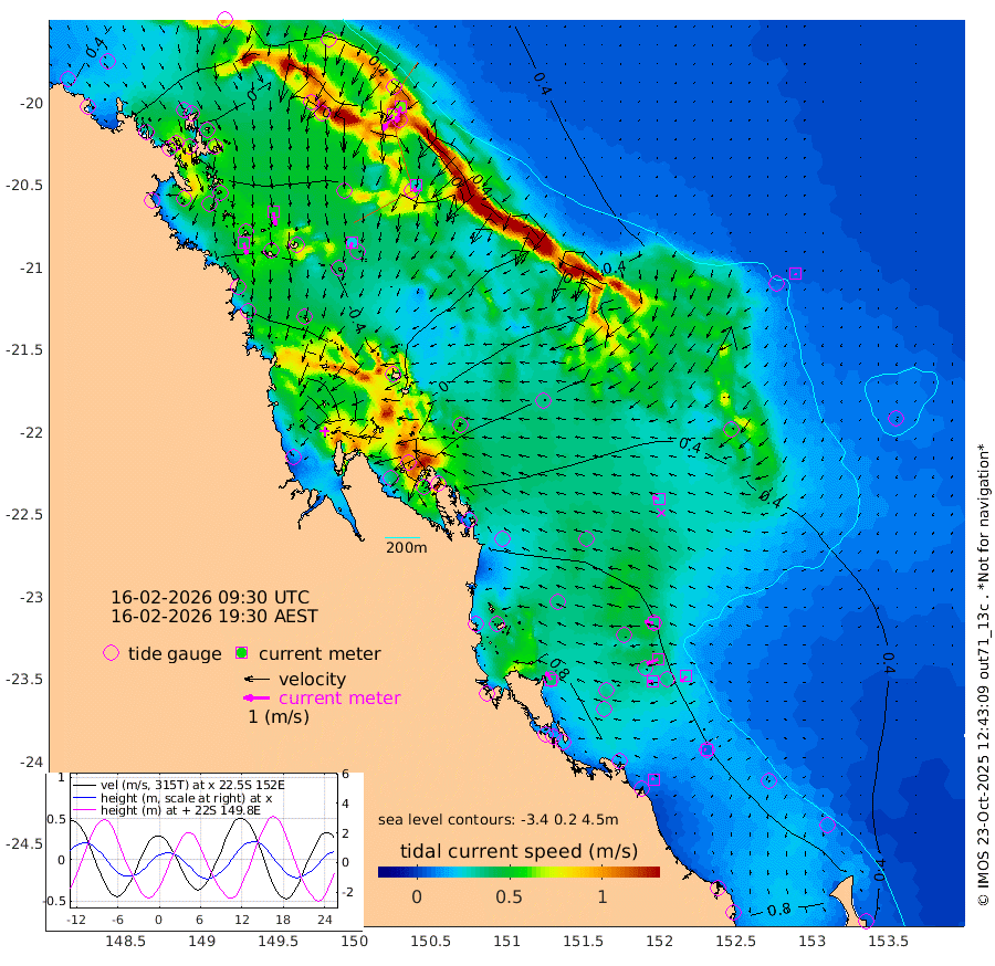 45cm/s 164T +10cm/s rms + 2cm/s 5T. Brampton I 18m 50cm/s 170T +9cm/s rms + 6cm/s 66T. Wigton I 38m 23cm/s -161T +7cm/s rms + 8cm/s 141T. Tern I 47m 62cm/s -163T +7cm/s rms + 12cm/s 54T. N Bugatti Rf 64m 71cm/s -150T +3cm/s rms + 13cm/s 178T. W Bugatti Rf 70m 29cm/s -171T +3cm/s rms + 3cm/s -130T. Creal Rf 69m 36cm/s -78T +7cm/s rms + 4cm/s 2T. North Rf 62m 37cm/s -33T +9cm/s rms + 2cm/s -56T. Cape Capricorn 26m 6cm/s -89T +5cm/s rms + 3cm/s 166T. L Musgrave I 42m 9cm/s -73T +9cm/s rms + 1cm/s -142T. Round Hill Hd 26m 7cm/s -170T +41cm/s rms + 48cm/s 116T. GBRELR 305m 26cm/s -76T +7cm/s rms + 6cm/s 123T. GBRCCH 92m 46cm/s -112T +8cm/s rms + 3cm/s -33T. GBRHIN 45m 24cm/s -96T +4cm/s rms + 2cm/s 41T. GBRHIS 46m 26cm/s -138T +16cm/s rms + 4cm/s -22T. GBROTE 59m 31cm Bell Cay 21cm Holbourne I -8cm Tern I 11cm Bugatti Rf -2cm Creal Rf 22cm White Tip I 60cm North Rf 85cm Rundle I 48cm L Musgrave I 39cm Saumarez Reef 36cm Kennedy Reef 36cm Unnamed Reef No. 2 28cm Abbot Point 22cm Bowen -2cm Tideway Reef 19cm Hayman Island -6cm Square Reef 9cm Double Bay -9cm Molle Island 6cm Cid Harbour 2cm Hook Island -4cm Border Island -5cm Haslewood Island -2cm Shute Harbour -23cm Thomas Island -6cm Credlin Reef -18cm East Repulse Island -16cm Blacksmith Island -39cm Laguna Quays -14cm Carlisle Island (Off) -10cm St. Bees Island -3cm Scawfell Island -6cm Penrith Island -36cm Mackay Outer Harbour -34cm Hay Point -35cm Prudhoe Island 1cm Middle Island (Percy Isles) 33cm Gannet Cay 29cm Elusive Reef -104cm Mcewin Islet 45cm Mumford Island 26cm Osborn Island 26cm Marquis Island 29cm Reef Point 32cm High Peak Island 58cm Port Clinton 76cm Peaked Island 68cm Karamea Bank 66cm Johnson Patch - NW 87cm Rosslyn Bay 92cm Middle Island (Keppel Isles) 91cm Port Alma 64cm Heron Island 68cm One Tree Islet 74cm Polmaise Reef 62cm Tryon Island 78cm Rock Cod Shoal 76cm Gatcombe Head 82cm Gladstone 85cm South Trees (Storm Surge) 77cm Clews Point 65cm Round Hill Head 45cm Lady Elliot Island 41cm Breaksea Spit 72cm Bundaberg (Burnett Heads) 81cm Elliot Heads 28cm Waddy Point (Fraser Island)