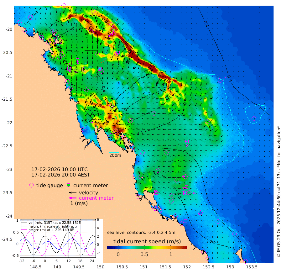 49cm/s 165T +10cm/s rms + 2cm/s 5T. Brampton I 18m 55cm/s 170T +9cm/s rms + 6cm/s 66T. Wigton I 38m 24cm/s -161T +7cm/s rms + 8cm/s 141T. Tern I 47m 67cm/s -163T +7cm/s rms + 12cm/s 54T. N Bugatti Rf 64m 77cm/s -150T +3cm/s rms + 13cm/s 178T. W Bugatti Rf 70m 31cm/s -172T +3cm/s rms + 3cm/s -130T. Creal Rf 69m 40cm/s -79T +7cm/s rms + 4cm/s 2T. North Rf 62m 41cm/s -33T +9cm/s rms + 2cm/s -56T. Cape Capricorn 26m 8cm/s -93T +5cm/s rms + 3cm/s 166T. L Musgrave I 42m 9cm/s -77T +9cm/s rms + 1cm/s -142T. Round Hill Hd 26m 7cm/s -167T +41cm/s rms + 48cm/s 116T. GBRELR 305m 30cm/s -75T +7cm/s rms + 6cm/s 123T. GBRCCH 92m 50cm/s -112T +8cm/s rms + 3cm/s -33T. GBRHIN 45m 26cm/s -96T +4cm/s rms + 2cm/s 41T. GBRHIS 46m 29cm/s -138T +16cm/s rms + 4cm/s -22T. GBROTE 59m 39cm Bell Cay 26cm Holbourne I -4cm Tern I 16cm Bugatti Rf 3cm Creal Rf 28cm White Tip I 72cm North Rf 99cm Rundle I 59cm L Musgrave I 51cm Saumarez Reef 40cm Kennedy Reef 44cm Unnamed Reef No. 2 34cm Abbot Point 27cm Bowen 3cm Tideway Reef 23cm Hayman Island -1cm Square Reef 16cm Double Bay -9cm Molle Island 10cm Cid Harbour 6cm Hook Island -2cm Border Island -2cm Haslewood Island 2cm Shute Harbour -20cm Thomas Island 0cm Credlin Reef -15cm East Repulse Island -14cm Blacksmith Island -39cm Laguna Quays -10cm Carlisle Island (Off) -3cm St. Bees Island 0cm Scawfell Island -4cm Penrith Island -36cm Mackay Outer Harbour -33cm Hay Point -31cm Prudhoe Island 6cm Middle Island (Percy Isles) 40cm Gannet Cay 37cm Elusive Reef -112cm Mcewin Islet 50cm Mumford Island 28cm Osborn Island 31cm Marquis Island 34cm Reef Point 40cm High Peak Island 70cm Port Clinton 92cm Peaked Island 82cm Karamea Bank 79cm Johnson Patch - NW 101cm Rosslyn Bay 108cm Middle Island (Keppel Isles) 106cm Port Alma 77cm Heron Island 81cm One Tree Islet 88cm Polmaise Reef 75cm Tryon Island 93cm Rock Cod Shoal 89cm Gatcombe Head 95cm Gladstone 99cm South Trees (Storm Surge) 89cm Clews Point 77cm Round Hill Head 57cm Lady Elliot Island 51cm Breaksea Spit 84cm Bundaberg (Burnett Heads) 94cm Elliot Heads 37cm Waddy Point (Fraser Island)