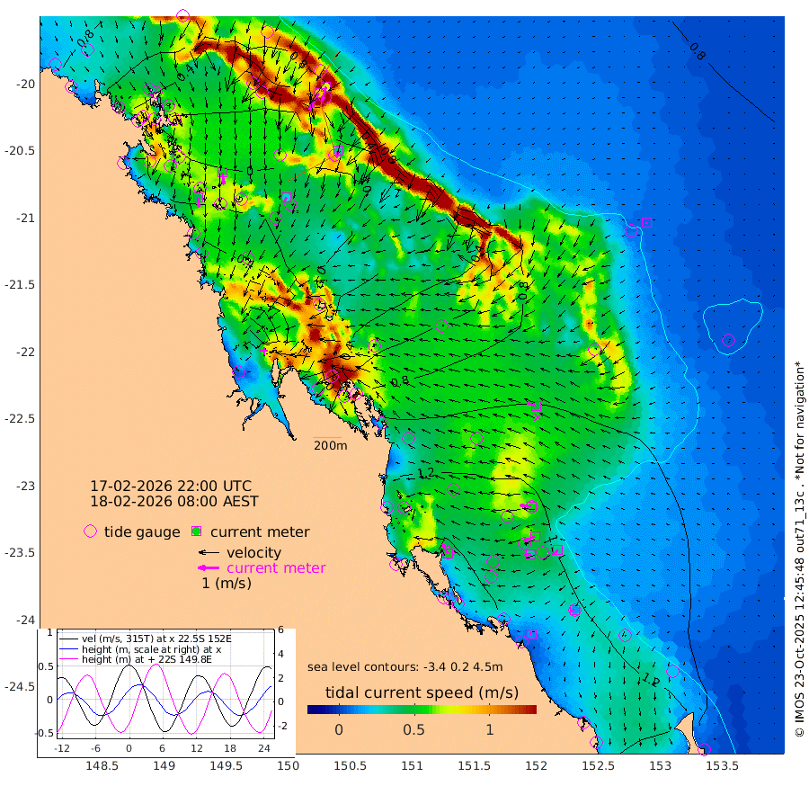 45cm/s 175T +10cm/s rms + 2cm/s 5T. Brampton I 18m 57cm/s 172T +9cm/s rms + 6cm/s 66T. Wigton I 38m 26cm/s -154T +7cm/s rms + 8cm/s 141T. Tern I 47m 72cm/s -163T +7cm/s rms + 12cm/s 54T. N Bugatti Rf 64m 90cm/s -150T +3cm/s rms + 13cm/s 178T. W Bugatti Rf 70m 36cm/s -168T +3cm/s rms + 3cm/s -130T. Creal Rf 69m 55cm/s -82T +7cm/s rms + 4cm/s 2T. North Rf 62m 51cm/s -32T +9cm/s rms + 2cm/s -56T. Cape Capricorn 26m 15cm/s -115T +5cm/s rms + 3cm/s 166T. L Musgrave I 42m 11cm/s -68T +9cm/s rms + 1cm/s -142T. Round Hill Hd 26m 7cm/s -125T +41cm/s rms + 48cm/s 116T. GBRELR 305m 47cm/s -70T +7cm/s rms + 6cm/s 123T. GBRCCH 92m 57cm/s -112T +8cm/s rms + 3cm/s -33T. GBRHIN 45m 32cm/s -96T +4cm/s rms + 2cm/s 41T. GBRHIS 46m 33cm/s -128T +16cm/s rms + 4cm/s -22T. GBROTE 59m 80cm Bell Cay 66cm Holbourne I 29cm Tern I 55cm Bugatti Rf 36cm Creal Rf 71cm White Tip I 128cm North Rf 156cm Rundle I 111cm L Musgrave I 92cm Saumarez Reef 76cm Kennedy Reef 91cm Unnamed Reef No. 2 73cm Abbot Point 65cm Bowen 40cm Tideway Reef 62cm Hayman Island 38cm Square Reef 49cm Double Bay 44cm Molle Island 43cm Cid Harbour 43cm Hook Island 30cm Border Island 29cm Haslewood Island 36cm Shute Harbour 12cm Thomas Island 36cm Credlin Reef 17cm East Repulse Island 8cm Blacksmith Island -13cm Laguna Quays 20cm Carlisle Island (Off) 2cm St. Bees Island 10cm Scawfell Island 29cm Penrith Island -6cm Mackay Outer Harbour -4cm Hay Point 2cm Prudhoe Island 45cm Middle Island (Percy Isles) 76cm Gannet Cay 89cm Elusive Reef -108cm Mcewin Islet 80cm Mumford Island 55cm Osborn Island 53cm Marquis Island 63cm Reef Point 76cm High Peak Island 118cm Port Clinton 140cm Peaked Island 139cm Karamea Bank 136cm Johnson Patch - NW 155cm Rosslyn Bay 164cm Middle Island (Keppel Isles) 156cm Port Alma 132cm Heron Island 144cm One Tree Islet 141cm Polmaise Reef 135cm Tryon Island 153cm Rock Cod Shoal 139cm Gatcombe Head 143cm Gladstone 149cm South Trees (Storm Surge) 142cm Clews Point 129cm Round Hill Head 110cm Lady Elliot Island 107cm Breaksea Spit 132cm Bundaberg (Burnett Heads) 138cm Elliot Heads 86cm Waddy Point (Fraser Island)