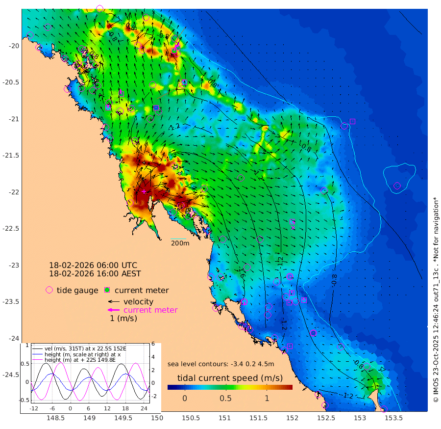 26cm/s 0T +10cm/s rms + 2cm/s 5T. Brampton I 18m 44cm/s -12T +9cm/s rms + 6cm/s 66T. Wigton I 38m 4cm/s -13T +7cm/s rms + 8cm/s 141T. Tern I 47m 44cm/s 8T +7cm/s rms + 12cm/s 54T. N Bugatti Rf 64m 57cm/s 24T +3cm/s rms + 13cm/s 178T. W Bugatti Rf 70m 23cm/s -16T +3cm/s rms + 3cm/s -130T. Creal Rf 69m 11cm/s 76T +7cm/s rms + 4cm/s 2T. North Rf 62m 19cm/s 171T +9cm/s rms + 2cm/s -56T. Cape Capricorn 26m 1cm/s -44T +5cm/s rms + 3cm/s 166T. L Musgrave I 42m 6cm/s -98T +9cm/s rms + 1cm/s -142T. Round Hill Hd 26m 2cm/s 3T +41cm/s rms + 48cm/s 116T. GBRELR 305m 27cm/s 114T +7cm/s rms + 6cm/s 123T. GBRCCH 92m 12cm/s 12T +8cm/s rms + 3cm/s -33T. GBRHIN 45m 7cm/s -64T +4cm/s rms + 2cm/s 41T. GBRHIS 46m 17cm/s -32T +16cm/s rms + 4cm/s -22T. GBROTE 59m -152cm Bell Cay -81cm Holbourne I -158cm Tern I -90cm Bugatti Rf -115cm Creal Rf -77cm White Tip I -118cm North Rf -157cm Rundle I -81cm L Musgrave I -63cm Saumarez Reef -81cm Kennedy Reef -76cm Unnamed Reef No. 2 -83cm Abbot Point -86cm Bowen -89cm Tideway Reef -103cm Hayman Island -117cm Square Reef -85cm Double Bay -91cm Molle Island -111cm Cid Harbour -88cm Hook Island -90cm Border Island -98cm Haslewood Island -102cm Shute Harbour -117cm Thomas Island -137cm Credlin Reef -130cm East Repulse Island -129cm Blacksmith Island -119cm Laguna Quays -135cm Carlisle Island (Off) -153cm St. Bees Island -142cm Scawfell Island -166cm Penrith Island -154cm Mackay Outer Harbour -170cm Hay Point -171cm Prudhoe Island -200cm Middle Island (Percy Isles) -142cm Gannet Cay -52cm Elusive Reef -168cm Mcewin Islet -234cm Mumford Island -236cm Osborn Island -246cm Marquis Island -223cm Reef Point -182cm High Peak Island -192cm Port Clinton -196cm Peaked Island -120cm Karamea Bank -162cm Johnson Patch - NW -193cm Rosslyn Bay -196cm Middle Island (Keppel Isles) -215cm Port Alma -117cm Heron Island -121cm One Tree Islet -132cm Polmaise Reef -134cm Tryon Island -132cm Rock Cod Shoal -150cm Gatcombe Head -172cm Gladstone -164cm South Trees (Storm Surge) -120cm Clews Point -108cm Round Hill Head -77cm Lady Elliot Island -72cm Breaksea Spit -112cm Bundaberg (Burnett Heads) -121cm Elliot Heads -57cm Waddy Point (Fraser Island)