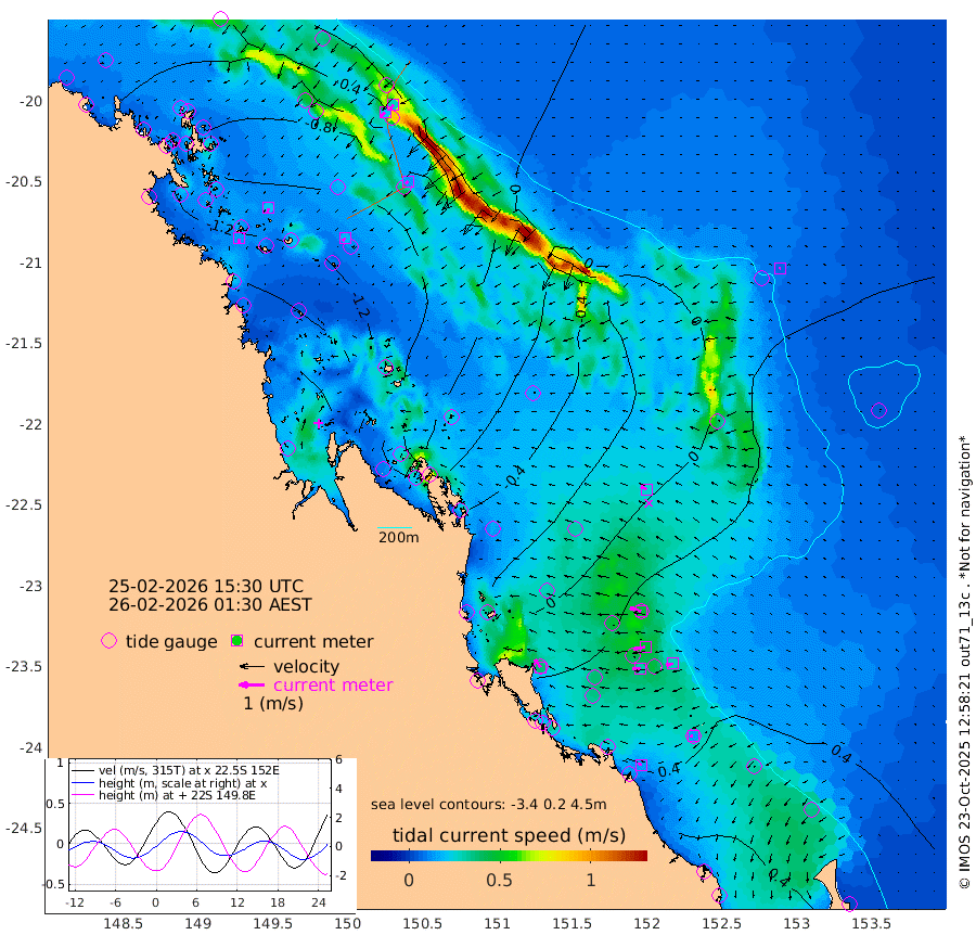 15cm/s -176T +10cm/s rms + 2cm/s 5T. Brampton I 18m 21cm/s -173T +9cm/s rms + 6cm/s 66T. Wigton I 38m 18cm/s -138T +7cm/s rms + 8cm/s 141T. Tern I 47m 27cm/s -146T +7cm/s rms + 12cm/s 54T. N Bugatti Rf 64m 22cm/s -133T +3cm/s rms + 13cm/s 178T. W Bugatti Rf 70m 13cm/s -134T +3cm/s rms + 3cm/s -130T. Creal Rf 69m 46cm/s -74T +7cm/s rms + 4cm/s 2T. North Rf 62m 38cm/s -36T +9cm/s rms + 2cm/s -56T. Cape Capricorn 26m 13cm/s -108T +5cm/s rms + 3cm/s 166T. L Musgrave I 42m 14cm/s -72T +9cm/s rms + 1cm/s -142T. Round Hill Hd 26m 6cm/s -78T +41cm/s rms + 48cm/s 116T. GBRELR 305m 25cm/s -59T +7cm/s rms + 6cm/s 123T. GBRCCH 92m 48cm/s -100T +8cm/s rms + 3cm/s -33T. GBRHIN 45m 31cm/s -91T +4cm/s rms + 2cm/s 41T. GBRHIS 46m 27cm/s -100T +16cm/s rms + 4cm/s -22T. GBROTE 59m -41cm Bell Cay -53cm Holbourne I -101cm Tern I -47cm Bugatti Rf -67cm Creal Rf -31cm White Tip I 24cm North Rf 24cm Rundle I 37cm L Musgrave I 19cm Saumarez Reef -36cm Kennedy Reef -22cm Unnamed Reef No. 2 -59cm Abbot Point -66cm Bowen -74cm Tideway Reef -70cm Hayman Island -93cm Square Reef -67cm Double Bay -90cm Molle Island -90cm Cid Harbour -64cm Hook Island -81cm Border Island -88cm Haslewood Island -85cm Shute Harbour -100cm Thomas Island -96cm Credlin Reef -117cm East Repulse Island -114cm Blacksmith Island -121cm Laguna Quays -111cm Carlisle Island (Off) -121cm St. Bees Island -115cm Scawfell Island -109cm Penrith Island -123cm Mackay Outer Harbour -127cm Hay Point -117cm Prudhoe Island -80cm Middle Island (Percy Isles) -27cm Gannet Cay 17cm Elusive Reef -160cm Mcewin Islet -91cm Mumford Island -111cm Osborn Island -111cm Marquis Island -101cm Reef Point -59cm High Peak Island -18cm Port Clinton -14cm Peaked Island 30cm Karamea Bank 20cm Johnson Patch - NW 3cm Rosslyn Bay 2cm Middle Island (Keppel Isles) -7cm Port Alma 31cm Heron Island 42cm One Tree Islet 34cm Polmaise Reef 23cm Tryon Island 30cm Rock Cod Shoal 20cm Gatcombe Head 13cm Gladstone 21cm South Trees (Storm Surge) 42cm Clews Point 39cm Round Hill Head 42cm Lady Elliot Island 47cm Breaksea Spit 37cm Bundaberg (Burnett Heads) 35cm Elliot Heads 40cm Waddy Point (Fraser Island)
