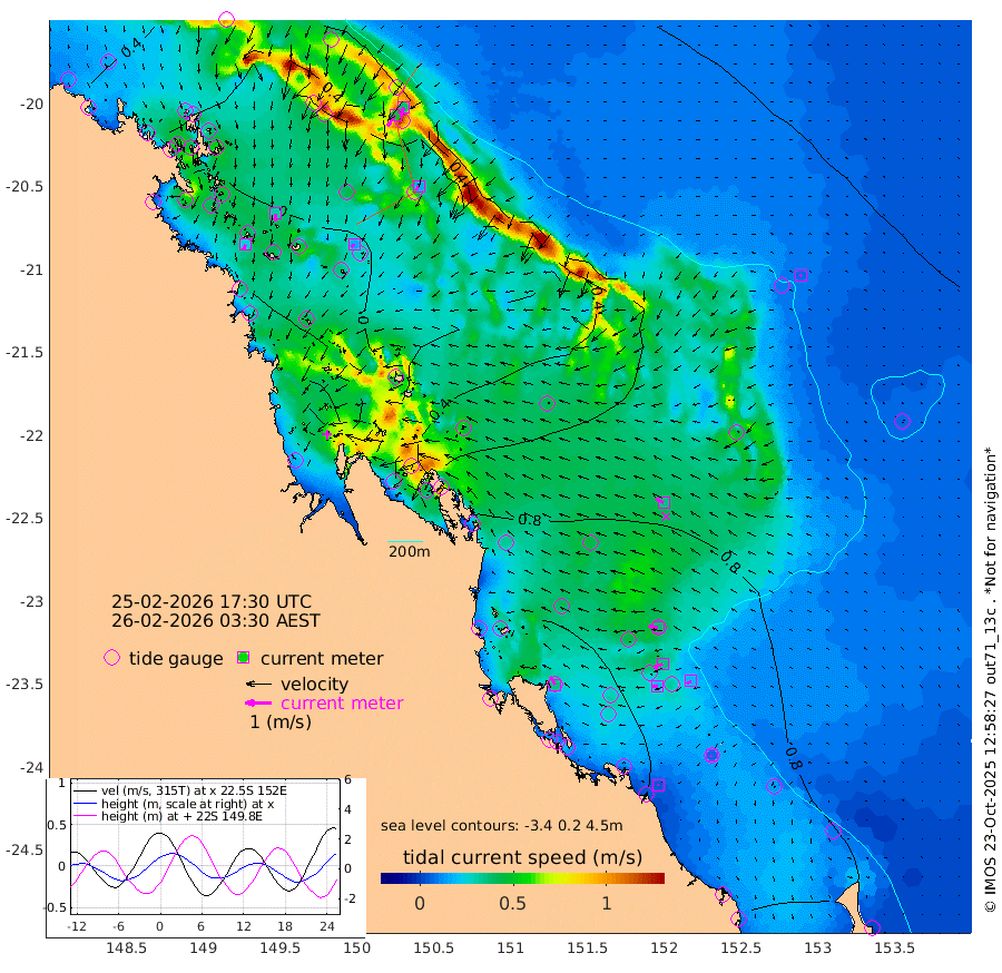 23cm/s -162T +10cm/s rms + 2cm/s 5T. Brampton I 18m 30cm/s 178T +9cm/s rms + 6cm/s 66T. Wigton I 38m 16cm/s -132T +7cm/s rms + 8cm/s 141T. Tern I 47m 38cm/s -161T +7cm/s rms + 12cm/s 54T. N Bugatti Rf 64m 49cm/s -145T +3cm/s rms + 13cm/s 178T. W Bugatti Rf 70m 17cm/s -154T +3cm/s rms + 3cm/s -130T. Creal Rf 69m 36cm/s -81T +7cm/s rms + 4cm/s 2T. North Rf 62m 36cm/s -27T +9cm/s rms + 2cm/s -56T. Cape Capricorn 26m 7cm/s -156T +5cm/s rms + 3cm/s 166T. L Musgrave I 42m 4cm/s -63T +9cm/s rms + 1cm/s -142T. Round Hill Hd 26m 6cm/s -76T +41cm/s rms + 48cm/s 116T. GBRELR 305m 35cm/s -65T +7cm/s rms + 6cm/s 123T. GBRCCH 92m 35cm/s -111T +8cm/s rms + 3cm/s -33T. GBRHIN 45m 19cm/s -96T +4cm/s rms + 2cm/s 41T. GBRHIS 46m 20cm/s -120T +16cm/s rms + 4cm/s -22T. GBROTE 59m 60cm Bell Cay 40cm Holbourne I 24cm Tern I 36cm Bugatti Rf 27cm Creal Rf 45cm White Tip I 92cm North Rf 110cm Rundle I 81cm L Musgrave I 49cm Saumarez Reef 48cm Kennedy Reef 58cm Unnamed Reef No. 2 36cm Abbot Point 32cm Bowen 21cm Tideway Reef 32cm Hayman Island 11cm Square Reef 42cm Double Bay 27cm Molle Island 15cm Cid Harbour 35cm Hook Island 16cm Border Island 11cm Haslewood Island 20cm Shute Harbour 9cm Thomas Island 22cm Credlin Reef 13cm East Repulse Island 1cm Blacksmith Island -2cm Laguna Quays 18cm Carlisle Island (Off) 7cm St. Bees Island 3cm Scawfell Island 20cm Penrith Island 10cm Mackay Outer Harbour 13cm Hay Point 15cm Prudhoe Island 57cm Middle Island (Percy Isles) 65cm Gannet Cay 66cm Elusive Reef -3cm Mcewin Islet 57cm Mumford Island 50cm Osborn Island 54cm Marquis Island 53cm Reef Point 60cm High Peak Island 99cm Port Clinton 92cm Peaked Island 97cm Karamea Bank 103cm Johnson Patch - NW 111cm Rosslyn Bay 111cm Middle Island (Keppel Isles) 114cm Port Alma 93cm Heron Island 105cm One Tree Islet 100cm Polmaise Reef 95cm Tryon Island 107cm Rock Cod Shoal 100cm Gatcombe Head 106cm Gladstone 108cm South Trees (Storm Surge) 100cm Clews Point 92cm Round Hill Head 80cm Lady Elliot Island 85cm Breaksea Spit 94cm Bundaberg (Burnett Heads) 92cm Elliot Heads 67cm Waddy Point (Fraser Island)