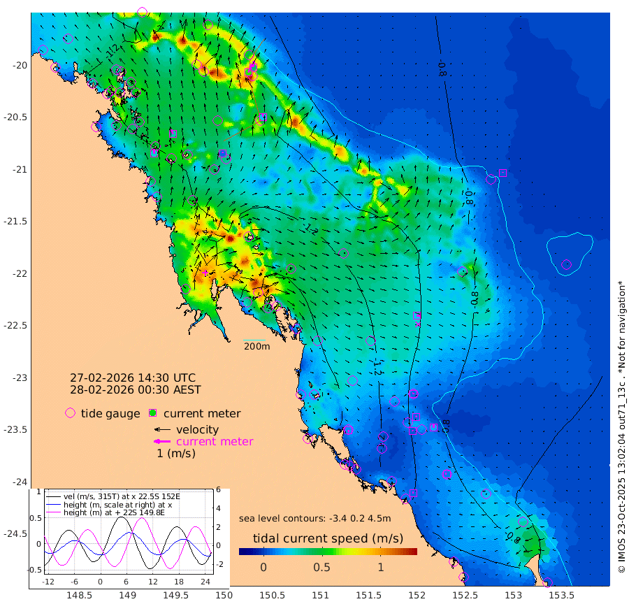 26cm/s -2T +10cm/s rms + 2cm/s 5T. Brampton I 18m 31cm/s -17T +9cm/s rms + 6cm/s 66T. Wigton I 38m 7cm/s 12T +7cm/s rms + 8cm/s 141T. Tern I 47m 37cm/s 2T +7cm/s rms + 12cm/s 54T. N Bugatti Rf 64m 60cm/s 28T +3cm/s rms + 13cm/s 178T. W Bugatti Rf 70m 20cm/s -1T +3cm/s rms + 3cm/s -130T. Creal Rf 69m 7cm/s 10T +7cm/s rms + 4cm/s 2T. North Rf 62m 12cm/s 171T +9cm/s rms + 2cm/s -56T. Cape Capricorn 26m 8cm/s -65T +5cm/s rms + 3cm/s 166T. L Musgrave I 42m 8cm/s -60T +9cm/s rms + 1cm/s -142T. Round Hill Hd 26m 4cm/s -5T +41cm/s rms + 48cm/s 116T. GBRELR 305m 22cm/s 98T +7cm/s rms + 6cm/s 123T. GBRCCH 92m 8cm/s 28T +8cm/s rms + 3cm/s -33T. GBRHIN 45m 4cm/s -38T +4cm/s rms + 2cm/s 41T. GBRHIS 46m 17cm/s -2T +16cm/s rms + 4cm/s -22T. GBROTE 59m -123cm Bell Cay -123cm Holbourne I -134cm Tern I -102cm Bugatti Rf -106cm Creal Rf -99cm White Tip I -101cm North Rf -130cm Rundle I -71cm L Musgrave I -64cm Saumarez Reef -117cm Kennedy Reef -111cm Unnamed Reef No. 2 -125cm Abbot Point -124cm Bowen -113cm Tideway Reef -124cm Hayman Island -124cm Square Reef -132cm Double Bay -129cm Molle Island -117cm Cid Harbour -118cm Hook Island -108cm Border Island -109cm Haslewood Island -119cm Shute Harbour -112cm Thomas Island -129cm Credlin Reef -130cm East Repulse Island -113cm Blacksmith Island -113cm Laguna Quays -133cm Carlisle Island (Off) -130cm St. Bees Island -115cm Scawfell Island -133cm Penrith Island -125cm Mackay Outer Harbour -132cm Hay Point -135cm Prudhoe Island -150cm Middle Island (Percy Isles) -111cm Gannet Cay -73cm Elusive Reef -106cm Mcewin Islet -171cm Mumford Island -165cm Osborn Island -167cm Marquis Island -161cm Reef Point -140cm High Peak Island -154cm Port Clinton -154cm Peaked Island -105cm Karamea Bank -122cm Johnson Patch - NW -153cm Rosslyn Bay -158cm Middle Island (Keppel Isles) -168cm Port Alma -96cm Heron Island -102cm One Tree Islet -107cm Polmaise Reef -103cm Tryon Island -117cm Rock Cod Shoal -119cm Gatcombe Head -135cm Gladstone -131cm South Trees (Storm Surge) -98cm Clews Point -87cm Round Hill Head -64cm Lady Elliot Island -60cm Breaksea Spit -96cm Bundaberg (Burnett Heads) -97cm Elliot Heads -41cm Waddy Point (Fraser Island)