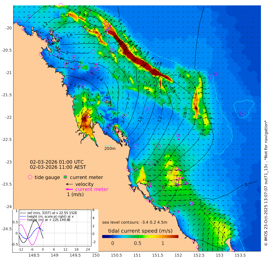 34cm/s -17T +10cm/s rms + 2cm/s 5T. Brampton I 18m 30cm/s 4T +9cm/s rms + 6cm/s 66T. Wigton I 38m 35cm/s 30T +7cm/s rms + 8cm/s 141T. Tern I 47m 58cm/s 33T +7cm/s rms + 12cm/s 54T. N Bugatti Rf 64m 45cm/s 40T +3cm/s rms + 13cm/s 178T. W Bugatti Rf 70m 25cm/s 49T +3cm/s rms + 3cm/s -130T. Creal Rf 69m 74cm/s 111T +7cm/s rms + 4cm/s 2T. North Rf 62m 57cm/s 139T +9cm/s rms + 2cm/s -56T. Cape Capricorn 26m 23cm/s 94T +5cm/s rms + 3cm/s 166T. L Musgrave I 42m 31cm/s 111T +9cm/s rms + 1cm/s -142T. Round Hill Hd 26m 7cm/s 68T +41cm/s rms + 48cm/s 116T. GBRELR 305m 22cm/s 115T +7cm/s rms + 6cm/s 123T. GBRCCH 92m 80cm/s 79T +8cm/s rms + 3cm/s -33T. GBRHIN 45m 52cm/s 91T +4cm/s rms + 2cm/s 41T. GBRHIS 46m 40cm/s 82T +16cm/s rms + 4cm/s -22T. GBROTE 59m 154cm Bell Cay 116cm Holbourne I 249cm Tern I 127cm Bugatti Rf 178cm Creal Rf 90cm White Tip I 40cm North Rf 52cm Rundle I 7cm L Musgrave I 26cm Saumarez Reef 77cm Kennedy Reef 68cm Unnamed Reef No. 2 113cm Abbot Point 128cm Bowen 163cm Tideway Reef 145cm Hayman Island 210cm Square Reef 151cm Double Bay 179cm Molle Island 182cm Cid Harbour 153cm Hook Island 172cm Border Island 188cm Haslewood Island 182cm Shute Harbour 223cm Thomas Island 232cm Credlin Reef 252cm East Repulse Island 237cm Blacksmith Island 263cm Laguna Quays 255cm Carlisle Island (Off) 281cm St. Bees Island 246cm Scawfell Island 259cm Penrith Island 292cm Mackay Outer Harbour 307cm Hay Point 303cm Prudhoe Island 257cm Middle Island (Percy Isles) 129cm Gannet Cay 19cm Elusive Reef 406cm Mcewin Islet 247cm Mumford Island 283cm Osborn Island 303cm Marquis Island 263cm Reef Point 197cm High Peak Island 149cm Port Clinton 131cm Peaked Island 31cm Karamea Bank 76cm Johnson Patch - NW 100cm Rosslyn Bay 100cm Middle Island (Keppel Isles) 127cm Port Alma 30cm Heron Island 17cm One Tree Islet 29cm Polmaise Reef 46cm Tryon Island 35cm Rock Cod Shoal 55cm Gatcombe Head 80cm Gladstone 61cm South Trees (Storm Surge) 5cm Clews Point 13cm Round Hill Head 3cm Lady Elliot Island -8cm Breaksea Spit 15cm Bundaberg (Burnett Heads) 16cm Elliot Heads -3cm Waddy Point (Fraser Island)