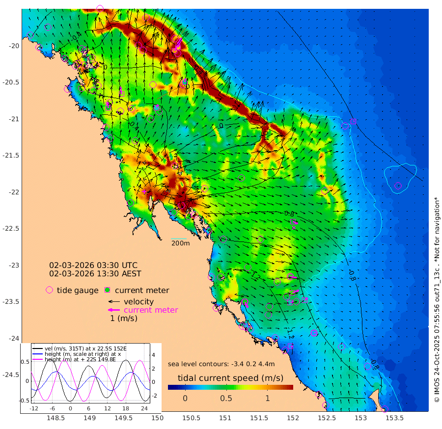 51cm/s -7T +10cm/s rms + 2cm/s 5T. Brampton I 18m 65cm/s -8T +9cm/s rms + 6cm/s 66T. Wigton I 38m 28cm/s 24T +7cm/s rms + 8cm/s 141T. Tern I 47m 88cm/s 19T +7cm/s rms + 12cm/s 54T. N Bugatti Rf 64m 101cm/s 29T +3cm/s rms + 13cm/s 178T. W Bugatti Rf 70m 34cm/s 11T +3cm/s rms + 3cm/s -130T. Creal Rf 69m 60cm/s 103T +7cm/s rms + 4cm/s 2T. North Rf 62m 56cm/s 151T +9cm/s rms + 2cm/s -56T. Cape Capricorn 26m 16cm/s 84T +5cm/s rms + 3cm/s 166T. L Musgrave I 42m 13cm/s 118T +9cm/s rms + 1cm/s -142T. Round Hill Hd 26m 6cm/s 47T +41cm/s rms + 48cm/s 116T. GBRELR 305m 47cm/s 113T +7cm/s rms + 6cm/s 123T. GBRCCH 92m 61cm/s 69T +8cm/s rms + 3cm/s -33T. GBRHIN 45m 31cm/s 82T +4cm/s rms + 2cm/s 41T. GBRHIS 46m 30cm/s 45T +16cm/s rms + 4cm/s -22T. GBROTE 59m -70cm Bell Cay -46cm Holbourne I -19cm Tern I -32cm Bugatti Rf -20cm Creal Rf -46cm White Tip I -110cm North Rf -144cm Rundle I -90cm L Musgrave I -62cm Saumarez Reef -59cm Kennedy Reef -65cm Unnamed Reef No. 2 -45cm Abbot Point -37cm Bowen -14cm Tideway Reef -36cm Hayman Island -9cm Square Reef -42cm Double Bay -7cm Molle Island -9cm Cid Harbour -24cm Hook Island 2cm Border Island 4cm Haslewood Island -12cm Shute Harbour 6cm Thomas Island -8cm Credlin Reef 14cm East Repulse Island 17cm Blacksmith Island 32cm Laguna Quays 8cm Carlisle Island (Off) 12cm St. Bees Island 8cm Scawfell Island -12cm Penrith Island 17cm Mackay Outer Harbour 11cm Hay Point -8cm Prudhoe Island -59cm Middle Island (Percy Isles) -72cm Gannet Cay -60cm Elusive Reef 96cm Mcewin Islet -89cm Mumford Island -50cm Osborn Island -47cm Marquis Island -54cm Reef Point -71cm High Peak Island -125cm Port Clinton -142cm Peaked Island -120cm Karamea Bank -131cm Johnson Patch - NW -149cm Rosslyn Bay -156cm Middle Island (Keppel Isles) -153cm Port Alma -112cm Heron Island -131cm One Tree Islet -132cm Polmaise Reef -112cm Tryon Island -129cm Rock Cod Shoal -130cm Gatcombe Head -135cm Gladstone -140cm South Trees (Storm Surge) -131cm Clews Point -111cm Round Hill Head -87cm Lady Elliot Island -87cm Breaksea Spit -115cm Bundaberg (Burnett Heads) -118cm Elliot Heads -66cm Waddy Point (Fraser Island)