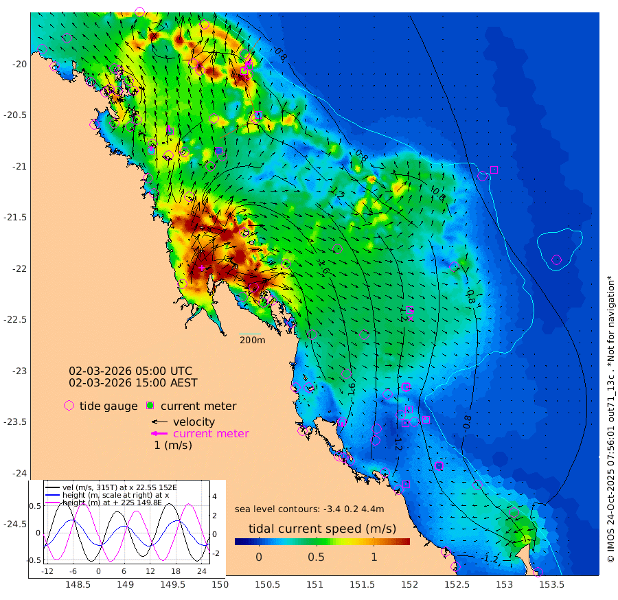 26cm/s 2T +10cm/s rms + 2cm/s 5T. Brampton I 18m 43cm/s -13T +9cm/s rms + 6cm/s 66T. Wigton I 38m 4cm/s -19T +7cm/s rms + 8cm/s 141T. Tern I 47m 49cm/s 10T +7cm/s rms + 12cm/s 54T. N Bugatti Rf 64m 65cm/s 23T +3cm/s rms + 13cm/s 178T. W Bugatti Rf 70m 20cm/s -20T +3cm/s rms + 3cm/s -130T. Creal Rf 69m 12cm/s 79T +7cm/s rms + 4cm/s 2T. North Rf 62m 20cm/s 178T +9cm/s rms + 2cm/s -56T. Cape Capricorn 26m 2cm/s 51T +5cm/s rms + 3cm/s 166T. L Musgrave I 42m 8cm/s -88T +9cm/s rms + 1cm/s -142T. Round Hill Hd 26m 2cm/s 9T +41cm/s rms + 48cm/s 116T. GBRELR 305m 29cm/s 114T +7cm/s rms + 6cm/s 123T. GBRCCH 92m 15cm/s 4T +8cm/s rms + 3cm/s -33T. GBRHIN 45m 7cm/s -72T +4cm/s rms + 2cm/s 41T. GBRHIS 46m 17cm/s -35T +16cm/s rms + 4cm/s -22T. GBROTE 59m -164cm Bell Cay -105cm Holbourne I -177cm Tern I -104cm Bugatti Rf -129cm Creal Rf -91cm White Tip I -123cm North Rf -164cm Rundle I -83cm L Musgrave I -65cm Saumarez Reef -93cm Kennedy Reef -94cm Unnamed Reef No. 2 -103cm Abbot Point -107cm Bowen -109cm Tideway Reef -118cm Hayman Island -135cm Square Reef -129cm Double Bay -111cm Molle Island -119cm Cid Harbour -112cm Hook Island -99cm Border Island -110cm Haslewood Island -122cm Shute Harbour -135cm Thomas Island -152cm Credlin Reef -146cm East Repulse Island -135cm Blacksmith Island -138cm Laguna Quays -153cm Carlisle Island (Off) -170cm St. Bees Island -151cm Scawfell Island -177cm Penrith Island -174cm Mackay Outer Harbour -190cm Hay Point -206cm Prudhoe Island -225cm Middle Island (Percy Isles) -151cm Gannet Cay -59cm Elusive Reef -184cm Mcewin Islet -245cm Mumford Island -234cm Osborn Island -246cm Marquis Island -225cm Reef Point -195cm High Peak Island -213cm Port Clinton -215cm Peaked Island -127cm Karamea Bank -170cm Johnson Patch - NW -203cm Rosslyn Bay -208cm Middle Island (Keppel Isles) -224cm Port Alma -119cm Heron Island -127cm One Tree Islet -138cm Polmaise Reef -132cm Tryon Island -138cm Rock Cod Shoal -155cm Gatcombe Head -176cm Gladstone -168cm South Trees (Storm Surge) -121cm Clews Point -107cm Round Hill Head -78cm Lady Elliot Island -71cm Breaksea Spit -111cm Bundaberg (Burnett Heads) -115cm Elliot Heads -57cm Waddy Point (Fraser Island)