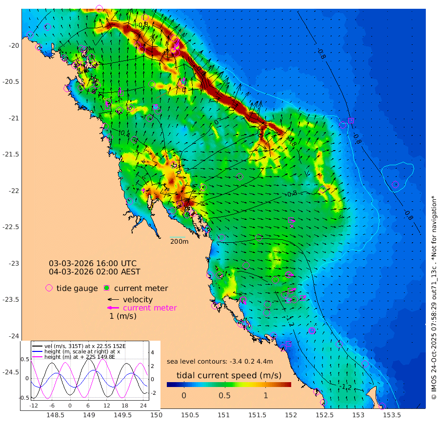 48cm/s -12T +10cm/s rms + 2cm/s 5T. Brampton I 18m 56cm/s -10T +9cm/s rms + 6cm/s 66T. Wigton I 38m 25cm/s 25T +7cm/s rms + 8cm/s 141T. Tern I 47m 69cm/s 14T +7cm/s rms + 12cm/s 54T. N Bugatti Rf 64m 89cm/s 32T +3cm/s rms + 13cm/s 178T. W Bugatti Rf 70m 36cm/s 12T +3cm/s rms + 3cm/s -130T. Creal Rf 69m 44cm/s 93T +7cm/s rms + 4cm/s 2T. North Rf 62m 46cm/s 148T +9cm/s rms + 2cm/s -56T. Cape Capricorn 26m 11cm/s 54T +5cm/s rms + 3cm/s 166T. L Musgrave I 42m 9cm/s 90T +9cm/s rms + 1cm/s -142T. Round Hill Hd 26m 6cm/s 35T +41cm/s rms + 48cm/s 116T. GBRELR 305m 40cm/s 107T +7cm/s rms + 6cm/s 123T. GBRCCH 92m 52cm/s 72T +8cm/s rms + 3cm/s -33T. GBRHIN 45m 29cm/s 82T +4cm/s rms + 2cm/s 41T. GBRHIS 46m 34cm/s 50T +16cm/s rms + 4cm/s -22T. GBROTE 59m -73cm Bell Cay -73cm Holbourne I -27cm Tern I -53cm Bugatti Rf -37cm Creal Rf -68cm White Tip I -114cm North Rf -143cm Rundle I -97cm L Musgrave I -91cm Saumarez Reef -80cm Kennedy Reef -84cm Unnamed Reef No. 2 -70cm Abbot Point -61cm Bowen -39cm Tideway Reef -59cm Hayman Island -44cm Square Reef -56cm Double Bay -34cm Molle Island -30cm Cid Harbour -47cm Hook Island -28cm Border Island -20cm Haslewood Island -32cm Shute Harbour -5cm Thomas Island -28cm Credlin Reef 5cm East Repulse Island 4cm Blacksmith Island 18cm Laguna Quays -8cm Carlisle Island (Off) 1cm St. Bees Island -5cm Scawfell Island -22cm Penrith Island 13cm Mackay Outer Harbour 11cm Hay Point -11cm Prudhoe Island -51cm Middle Island (Percy Isles) -69cm Gannet Cay -77cm Elusive Reef 111cm Mcewin Islet -86cm Mumford Island -40cm Osborn Island -36cm Marquis Island -40cm Reef Point -67cm High Peak Island -118cm Port Clinton -142cm Peaked Island -121cm Karamea Bank -131cm Johnson Patch - NW -143cm Rosslyn Bay -150cm Middle Island (Keppel Isles) -146cm Port Alma -117cm Heron Island -137cm One Tree Islet -133cm Polmaise Reef -111cm Tryon Island -129cm Rock Cod Shoal -127cm Gatcombe Head -134cm Gladstone -137cm South Trees (Storm Surge) -133cm Clews Point -116cm Round Hill Head -95cm Lady Elliot Island -89cm Breaksea Spit -122cm Bundaberg (Burnett Heads) -126cm Elliot Heads -70cm Waddy Point (Fraser Island)