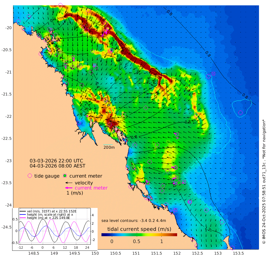 48cm/s 171T +10cm/s rms + 2cm/s 5T. Brampton I 18m 60cm/s 172T +9cm/s rms + 6cm/s 66T. Wigton I 38m 29cm/s -154T +7cm/s rms + 8cm/s 141T. Tern I 47m 79cm/s -162T +7cm/s rms + 12cm/s 54T. N Bugatti Rf 64m 96cm/s -149T +3cm/s rms + 13cm/s 178T. W Bugatti Rf 70m 37cm/s -166T +3cm/s rms + 3cm/s -130T. Creal Rf 69m 59cm/s -82T +7cm/s rms + 4cm/s 2T. North Rf 62m 53cm/s -32T +9cm/s rms + 2cm/s -56T. Cape Capricorn 26m 18cm/s -105T +5cm/s rms + 3cm/s 166T. L Musgrave I 42m 13cm/s -72T +9cm/s rms + 1cm/s -142T. Round Hill Hd 26m 7cm/s -124T +41cm/s rms + 48cm/s 116T. GBRELR 305m 46cm/s -70T +7cm/s rms + 6cm/s 123T. GBRCCH 92m 61cm/s -112T +8cm/s rms + 3cm/s -33T. GBRHIN 45m 35cm/s -95T +4cm/s rms + 2cm/s 41T. GBRHIS 46m 34cm/s -125T +16cm/s rms + 4cm/s -22T. GBROTE 59m 65cm Bell Cay 59cm Holbourne I 7cm Tern I 42cm Bugatti Rf 22cm Creal Rf 61cm White Tip I 119cm North Rf 147cm Rundle I 105cm L Musgrave I 87cm Saumarez Reef 70cm Kennedy Reef 78cm Unnamed Reef No. 2 57cm Abbot Point 47cm Bowen 22cm Tideway Reef 45cm Hayman Island 22cm Square Reef 41cm Double Bay 23cm Molle Island 14cm Cid Harbour 30cm Hook Island 8cm Border Island 1cm Haslewood Island 15cm Shute Harbour -12cm Thomas Island 5cm Credlin Reef -27cm East Repulse Island -21cm Blacksmith Island -40cm Laguna Quays -17cm Carlisle Island (Off) -29cm St. Bees Island -16cm Scawfell Island 4cm Penrith Island -34cm Mackay Outer Harbour -32cm Hay Point -12cm Prudhoe Island 38cm Middle Island (Percy Isles) 64cm Gannet Cay 79cm Elusive Reef -142cm Mcewin Islet 72cm Mumford Island 22cm Osborn Island 15cm Marquis Island 26cm Reef Point 56cm High Peak Island 111cm Port Clinton 135cm Peaked Island 126cm Karamea Bank 135cm Johnson Patch - NW 142cm Rosslyn Bay 149cm Middle Island (Keppel Isles) 141cm Port Alma 124cm Heron Island 145cm One Tree Islet 139cm Polmaise Reef 120cm Tryon Island 133cm Rock Cod Shoal 131cm Gatcombe Head 132cm Gladstone 139cm South Trees (Storm Surge) 140cm Clews Point 122cm Round Hill Head 103cm Lady Elliot Island 102cm Breaksea Spit 126cm Bundaberg (Burnett Heads) 132cm Elliot Heads 81cm Waddy Point (Fraser Island)