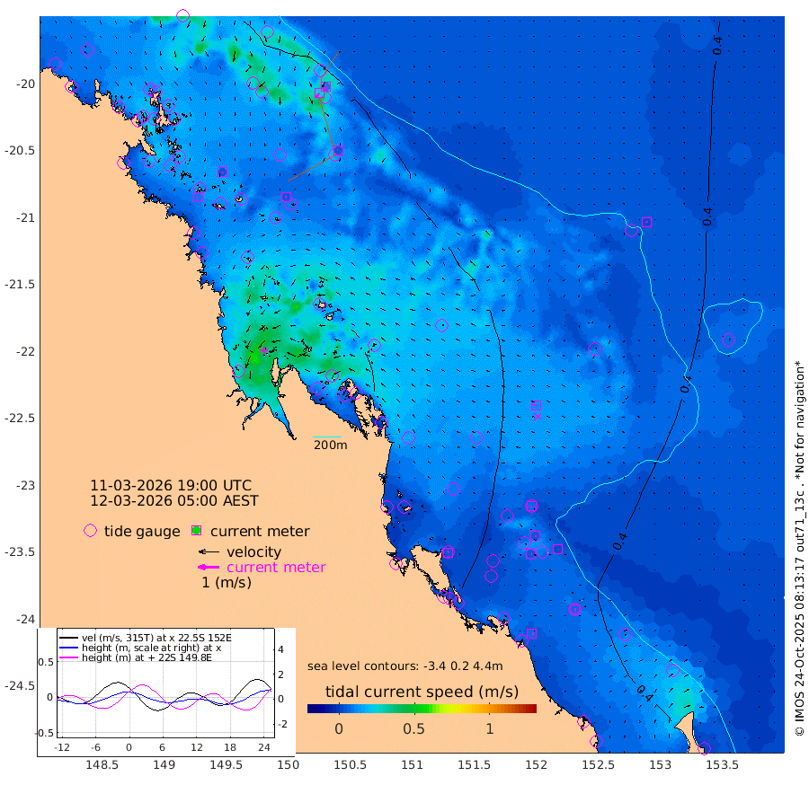 8cm/s -102T +10cm/s rms + 2cm/s 5T. Brampton I 18m 5cm/s 179T +9cm/s rms + 6cm/s 66T. Wigton I 38m 6cm/s -86T +7cm/s rms + 8cm/s 141T. Tern I 47m 9cm/s 180T +7cm/s rms + 12cm/s 54T. N Bugatti Rf 64m 22cm/s -145T +3cm/s rms + 13cm/s 178T. W Bugatti Rf 70m 4cm/s -126T +3cm/s rms + 3cm/s -130T. Creal Rf 69m 7cm/s -166T +7cm/s rms + 4cm/s 2T. North Rf 62m 5cm/s 28T +9cm/s rms + 2cm/s -56T. Cape Capricorn 26m 8cm/s 112T +5cm/s rms + 3cm/s 166T. L Musgrave I 42m 7cm/s 105T +9cm/s rms + 1cm/s -142T. Round Hill Hd 26m 3cm/s -49T +41cm/s rms + 48cm/s 116T. GBRELR 305m 12cm/s -67T +7cm/s rms + 6cm/s 123T. GBRCCH 92m 5cm/s 119T +8cm/s rms + 3cm/s -33T. GBRHIN 45m 4cm/s 100T +4cm/s rms + 2cm/s 41T. GBRHIS 46m 1cm/s 104T +16cm/s rms + 4cm/s -22T. GBROTE 59m 67cm Bell Cay 72cm Holbourne I 75cm Tern I 60cm Bugatti Rf 61cm Creal Rf 60cm White Tip I 55cm North Rf 64cm Rundle I 41cm L Musgrave I 25cm Saumarez Reef 68cm Kennedy Reef 62cm Unnamed Reef No. 2 66cm Abbot Point 67cm Bowen 64cm Tideway Reef 70cm Hayman Island 71cm Square Reef 79cm Double Bay 84cm Molle Island 61cm Cid Harbour 71cm Hook Island 64cm Border Island 56cm Haslewood Island 68cm Shute Harbour 66cm Thomas Island 69cm Credlin Reef 67cm East Repulse Island 66cm Blacksmith Island 71cm Laguna Quays 69cm Carlisle Island (Off) 68cm St. Bees Island 69cm Scawfell Island 80cm Penrith Island 78cm Mackay Outer Harbour 82cm Hay Point 84cm Prudhoe Island 94cm Middle Island (Percy Isles) 63cm Gannet Cay 46cm Elusive Reef 92cm Mcewin Islet 102cm Mumford Island 94cm Osborn Island 90cm Marquis Island 84cm Reef Point 71cm High Peak Island 82cm Port Clinton 72cm Peaked Island 49cm Karamea Bank 68cm Johnson Patch - NW 73cm Rosslyn Bay 72cm Middle Island (Keppel Isles) 77cm Port Alma 50cm Heron Island 64cm One Tree Islet 57cm Polmaise Reef 56cm Tryon Island 51cm Rock Cod Shoal 58cm Gatcombe Head 62cm Gladstone 61cm South Trees (Storm Surge) 53cm Clews Point 44cm Round Hill Head 37cm Lady Elliot Island 45cm Breaksea Spit 45cm Bundaberg (Burnett Heads) 43cm Elliot Heads 34cm Waddy Point (Fraser Island)