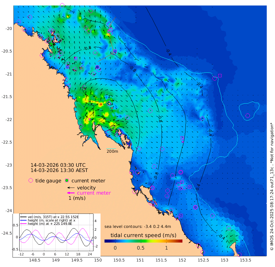 8cm/s 23T +10cm/s rms + 2cm/s 5T. Brampton I 18m 18cm/s -13T +9cm/s rms + 6cm/s 66T. Wigton I 38m 1cm/s -121T +7cm/s rms + 8cm/s 141T. Tern I 47m 24cm/s 7T +7cm/s rms + 12cm/s 54T. N Bugatti Rf 64m 34cm/s 23T +3cm/s rms + 13cm/s 178T. W Bugatti Rf 70m 8cm/s -29T +3cm/s rms + 3cm/s -130T. Creal Rf 69m 5cm/s 47T +7cm/s rms + 4cm/s 2T. North Rf 62m 9cm/s -159T +9cm/s rms + 2cm/s -56T. Cape Capricorn 26m 4cm/s -59T +5cm/s rms + 3cm/s 166T. L Musgrave I 42m 6cm/s -94T +9cm/s rms + 1cm/s -142T. Round Hill Hd 26m 1cm/s 78T +41cm/s rms + 48cm/s 116T. GBRELR 305m 15cm/s 119T +7cm/s rms + 6cm/s 123T. GBRCCH 92m 9cm/s -35T +8cm/s rms + 3cm/s -33T. GBRHIN 45m 7cm/s -86T +4cm/s rms + 2cm/s 41T. GBRHIS 46m 8cm/s -70T +16cm/s rms + 4cm/s -22T. GBROTE 59m -94cm Bell Cay -68cm Holbourne I -112cm Tern I -67cm Bugatti Rf -82cm Creal Rf -59cm White Tip I -63cm North Rf -83cm Rundle I -40cm L Musgrave I -31cm Saumarez Reef -64cm Kennedy Reef -57cm Unnamed Reef No. 2 -68cm Abbot Point -71cm Bowen -75cm Tideway Reef -78cm Hayman Island -95cm Square Reef -73cm Double Bay -80cm Molle Island -80cm Cid Harbour -70cm Hook Island -73cm Border Island -71cm Haslewood Island -81cm Shute Harbour -91cm Thomas Island -98cm Credlin Reef -92cm East Repulse Island -91cm Blacksmith Island -95cm Laguna Quays -93cm Carlisle Island (Off) -92cm St. Bees Island -93cm Scawfell Island -117cm Penrith Island -114cm Mackay Outer Harbour -123cm Hay Point -132cm Prudhoe Island -134cm Middle Island (Percy Isles) -85cm Gannet Cay -34cm Elusive Reef -122cm Mcewin Islet -155cm Mumford Island -149cm Osborn Island -143cm Marquis Island -135cm Reef Point -110cm High Peak Island -113cm Port Clinton -117cm Peaked Island -62cm Karamea Bank -88cm Johnson Patch - NW -106cm Rosslyn Bay -108cm Middle Island (Keppel Isles) -115cm Port Alma -58cm Heron Island -70cm One Tree Islet -71cm Polmaise Reef -70cm Tryon Island -66cm Rock Cod Shoal -78cm Gatcombe Head -87cm Gladstone -82cm South Trees (Storm Surge) -64cm Clews Point -52cm Round Hill Head -36cm Lady Elliot Island -35cm Breaksea Spit -50cm Bundaberg (Burnett Heads) -49cm Elliot Heads -30cm Waddy Point (Fraser Island)
