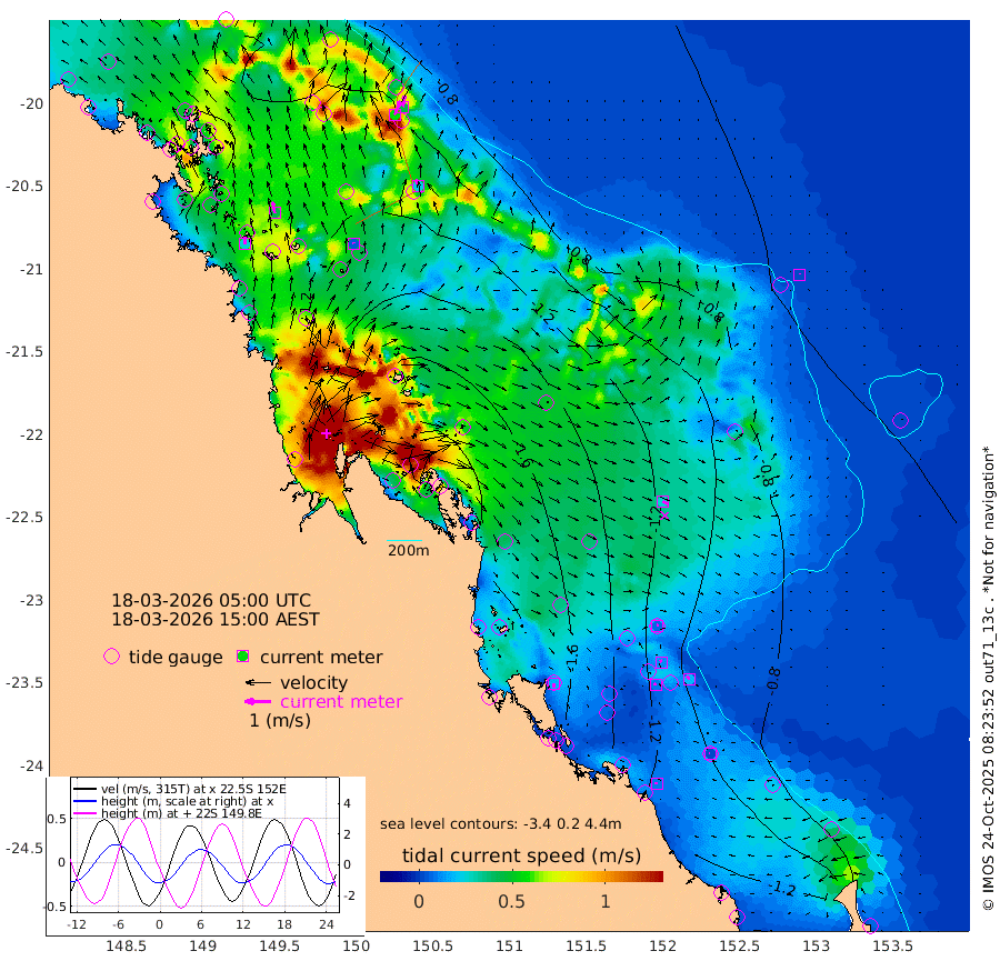 26cm/s -2T +10cm/s rms + 2cm/s 5T. Brampton I 18m 44cm/s -13T +9cm/s rms + 6cm/s 66T. Wigton I 38m 4cm/s -17T +7cm/s rms + 8cm/s 141T. Tern I 47m 45cm/s 7T +7cm/s rms + 12cm/s 54T. N Bugatti Rf 64m 59cm/s 24T +3cm/s rms + 13cm/s 178T. W Bugatti Rf 70m 24cm/s -17T +3cm/s rms + 3cm/s -130T. Creal Rf 69m 8cm/s 47T +7cm/s rms + 4cm/s 2T. North Rf 62m 16cm/s 178T +9cm/s rms + 2cm/s -56T. Cape Capricorn 26m 3cm/s -61T +5cm/s rms + 3cm/s 166T. L Musgrave I 42m 9cm/s -83T +9cm/s rms + 1cm/s -142T. Round Hill Hd 26m 2cm/s -15T +41cm/s rms + 48cm/s 116T. GBRELR 305m 25cm/s 111T +7cm/s rms + 6cm/s 123T. GBRCCH 92m 11cm/s -9T +8cm/s rms + 3cm/s -33T. GBRHIN 45m 9cm/s -70T +4cm/s rms + 2cm/s 41T. GBRHIS 46m 18cm/s -36T +16cm/s rms + 4cm/s -22T. GBROTE 59m -164cm Bell Cay -101cm Holbourne I -177cm Tern I -107cm Bugatti Rf -132cm Creal Rf -93cm White Tip I -123cm North Rf -163cm Rundle I -84cm L Musgrave I -69cm Saumarez Reef -99cm Kennedy Reef -92cm Unnamed Reef No. 2 -104cm Abbot Point -107cm Bowen -109cm Tideway Reef -122cm Hayman Island -141cm Square Reef -107cm Double Bay -116cm Molle Island -132cm Cid Harbour -108cm Hook Island -109cm Border Island -118cm Haslewood Island -123cm Shute Harbour -136cm Thomas Island -158cm Credlin Reef -151cm East Repulse Island -150cm Blacksmith Island -140cm Laguna Quays -157cm Carlisle Island (Off) -176cm St. Bees Island -162cm Scawfell Island -187cm Penrith Island -175cm Mackay Outer Harbour -190cm Hay Point -192cm Prudhoe Island -217cm Middle Island (Percy Isles) -151cm Gannet Cay -59cm Elusive Reef -184cm Mcewin Islet -253cm Mumford Island -253cm Osborn Island -263cm Marquis Island -239cm Reef Point -196cm High Peak Island -203cm Port Clinton -209cm Peaked Island -125cm Karamea Bank -169cm Johnson Patch - NW -202cm Rosslyn Bay -205cm Middle Island (Keppel Isles) -225cm Port Alma -122cm Heron Island -125cm One Tree Islet -137cm Polmaise Reef -139cm Tryon Island -137cm Rock Cod Shoal -156cm Gatcombe Head -179cm Gladstone -170cm South Trees (Storm Surge) -123cm Clews Point -110cm Round Hill Head -78cm Lady Elliot Island -72cm Breaksea Spit -115cm Bundaberg (Burnett Heads) -125cm Elliot Heads -57cm Waddy Point (Fraser Island)