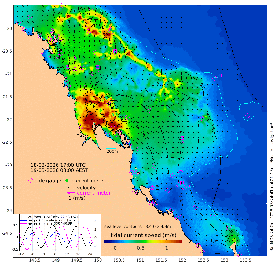 31cm/s -8T +10cm/s rms + 2cm/s 5T. Brampton I 18m 45cm/s -16T +9cm/s rms + 6cm/s 66T. Wigton I 38m 6cm/s -35T +7cm/s rms + 8cm/s 141T. Tern I 47m 42cm/s 2T +7cm/s rms + 12cm/s 54T. N Bugatti Rf 64m 62cm/s 28T +3cm/s rms + 13cm/s 178T. W Bugatti Rf 70m 26cm/s -18T +3cm/s rms + 3cm/s -130T. Creal Rf 69m 9cm/s 43T +7cm/s rms + 4cm/s 2T. North Rf 62m 16cm/s 172T +9cm/s rms + 2cm/s -56T. Cape Capricorn 26m 6cm/s -43T +5cm/s rms + 3cm/s 166T. L Musgrave I 42m 7cm/s -59T +9cm/s rms + 1cm/s -142T. Round Hill Hd 26m 4cm/s -9T +41cm/s rms + 48cm/s 116T. GBRELR 305m 25cm/s 106T +7cm/s rms + 6cm/s 123T. GBRCCH 92m 9cm/s 10T +8cm/s rms + 3cm/s -33T. GBRHIN 45m 7cm/s -62T +4cm/s rms + 2cm/s 41T. GBRHIS 46m 19cm/s -16T +16cm/s rms + 4cm/s -22T. GBROTE 59m -158cm Bell Cay -106cm Holbourne I -168cm Tern I -107cm Bugatti Rf -128cm Creal Rf -95cm White Tip I -124cm North Rf -164cm Rundle I -86cm L Musgrave I -83cm Saumarez Reef -98cm Kennedy Reef -96cm Unnamed Reef No. 2 -110cm Abbot Point -112cm Bowen -112cm Tideway Reef -124cm Hayman Island -141cm Square Reef -109cm Double Bay -110cm Molle Island -133cm Cid Harbour -105cm Hook Island -116cm Border Island -121cm Haslewood Island -122cm Shute Harbour -128cm Thomas Island -157cm Credlin Reef -145cm East Repulse Island -144cm Blacksmith Island -131cm Laguna Quays -155cm Carlisle Island (Off) -169cm St. Bees Island -156cm Scawfell Island -175cm Penrith Island -160cm Mackay Outer Harbour -174cm Hay Point -176cm Prudhoe Island -197cm Middle Island (Percy Isles) -144cm Gannet Cay -63cm Elusive Reef -157cm Mcewin Islet -237cm Mumford Island -237cm Osborn Island -247cm Marquis Island -226cm Reef Point -188cm High Peak Island -194cm Port Clinton -206cm Peaked Island -127cm Karamea Bank -162cm Johnson Patch - NW -199cm Rosslyn Bay -205cm Middle Island (Keppel Isles) -223cm Port Alma -122cm Heron Island -125cm One Tree Islet -138cm Polmaise Reef -133cm Tryon Island -142cm Rock Cod Shoal -154cm Gatcombe Head -180cm Gladstone -170cm South Trees (Storm Surge) -123cm Clews Point -112cm Round Hill Head -79cm Lady Elliot Island -68cm Breaksea Spit -120cm Bundaberg (Burnett Heads) -131cm Elliot Heads -54cm Waddy Point (Fraser Island)