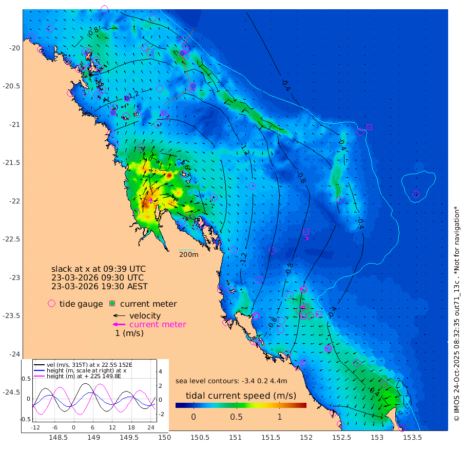 7cm/s 118T +10cm/s rms + 2cm/s 5T. Brampton I 18m 4cm/s -63T +9cm/s rms + 6cm/s 66T. Wigton I 38m 12cm/s -150T +7cm/s rms + 8cm/s 141T. Tern I 47m 13cm/s -133T +7cm/s rms + 12cm/s 54T. N Bugatti Rf 64m 4cm/s -114T +3cm/s rms + 13cm/s 178T. W Bugatti Rf 70m 8cm/s -101T +3cm/s rms + 3cm/s -130T. Creal Rf 69m 32cm/s -70T +7cm/s rms + 4cm/s 2T. North Rf 62m 20cm/s -49T +9cm/s rms + 2cm/s -56T. Cape Capricorn 26m 16cm/s -93T +5cm/s rms + 3cm/s 166T. L Musgrave I 42m 17cm/s -73T +9cm/s rms + 1cm/s -142T. Round Hill Hd 26m 3cm/s -113T +41cm/s rms + 48cm/s 116T. GBRELR 305m 6cm/s -45T +7cm/s rms + 6cm/s 123T. GBRCCH 92m 38cm/s -94T +8cm/s rms + 3cm/s -33T. GBRHIN 45m 28cm/s -88T +4cm/s rms + 2cm/s 41T. GBRHIS 46m 25cm/s -83T +16cm/s rms + 4cm/s -22T. GBROTE 59m -116cm Bell Cay -77cm Holbourne I -154cm Tern I -81cm Bugatti Rf -109cm Creal Rf -61cm White Tip I -56cm North Rf -75cm Rundle I -29cm L Musgrave I -16cm Saumarez Reef -65cm Kennedy Reef -54cm Unnamed Reef No. 2 -71cm Abbot Point -80cm Bowen -91cm Tideway Reef -90cm Hayman Island -110cm Square Reef -99cm Double Bay -113cm Molle Island -110cm Cid Harbour -96cm Hook Island -99cm Border Island -109cm Haslewood Island -109cm Shute Harbour -130cm Thomas Island -135cm Credlin Reef -150cm East Repulse Island -146cm Blacksmith Island -151cm Laguna Quays -154cm Carlisle Island (Off) -172cm St. Bees Island -150cm Scawfell Island -161cm Penrith Island -176cm Mackay Outer Harbour -188cm Hay Point -175cm Prudhoe Island -188cm Middle Island (Percy Isles) -110cm Gannet Cay -26cm Elusive Reef -264cm Mcewin Islet -179cm Mumford Island -207cm Osborn Island -223cm Marquis Island -197cm Reef Point -148cm High Peak Island -134cm Port Clinton -106cm Peaked Island -50cm Karamea Bank -89cm Johnson Patch - NW -110cm Rosslyn Bay -105cm Middle Island (Keppel Isles) -133cm Port Alma -52cm Heron Island -44cm One Tree Islet -56cm Polmaise Reef -64cm Tryon Island -60cm Rock Cod Shoal -78cm Gatcombe Head -100cm Gladstone -88cm South Trees (Storm Surge) -40cm Clews Point -41cm Round Hill Head -23cm Lady Elliot Island -23cm Breaksea Spit -50cm Bundaberg (Burnett Heads) -55cm Elliot Heads -12cm Waddy Point (Fraser Island)
