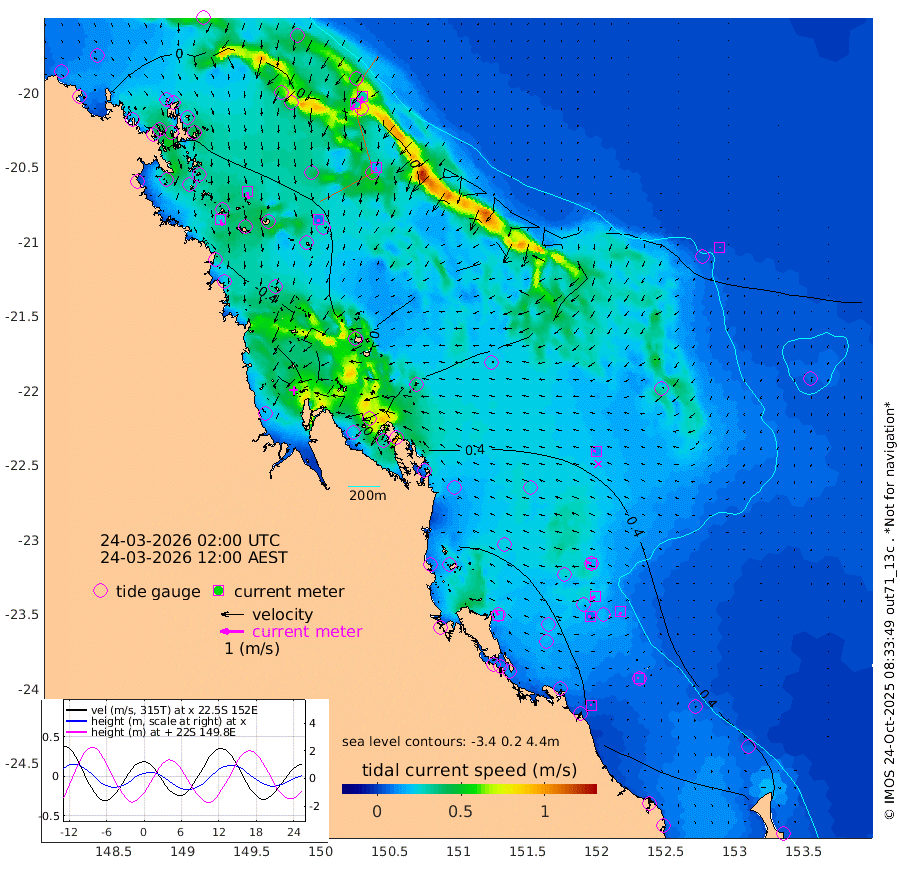 25cm/s 162T +10cm/s rms + 2cm/s 5T. Brampton I 18m 30cm/s 168T +9cm/s rms + 6cm/s 66T. Wigton I 38m 10cm/s -173T +7cm/s rms + 8cm/s 141T. Tern I 47m 30cm/s -161T +7cm/s rms + 12cm/s 54T. N Bugatti Rf 64m 31cm/s -149T +3cm/s rms + 13cm/s 178T. W Bugatti Rf 70m 16cm/s -179T +3cm/s rms + 3cm/s -130T. Creal Rf 69m 17cm/s -72T +7cm/s rms + 4cm/s 2T. North Rf 62m 20cm/s -35T +9cm/s rms + 2cm/s -56T. Cape Capricorn 26m 8cm/s -81T +5cm/s rms + 3cm/s 166T. L Musgrave I 42m 5cm/s -77T +9cm/s rms + 1cm/s -142T. Round Hill Hd 26m 3cm/s -177T +41cm/s rms + 48cm/s 116T. GBRELR 305m 13cm/s -79T +7cm/s rms + 6cm/s 123T. GBRCCH 92m 20cm/s -116T +8cm/s rms + 3cm/s -33T. GBRHIN 45m 10cm/s -100T +4cm/s rms + 2cm/s 41T. GBRHIS 46m 14cm/s -157T +16cm/s rms + 4cm/s -22T. GBROTE 59m 28cm Bell Cay 1cm Holbourne I 2cm Tern I 1cm Bugatti Rf 3cm Creal Rf 1cm White Tip I 41cm North Rf 59cm Rundle I 33cm L Musgrave I 24cm Saumarez Reef 5cm Kennedy Reef 5cm Unnamed Reef No. 2 -7cm Abbot Point -9cm Bowen -15cm Tideway Reef -7cm Hayman Island -15cm Square Reef 0cm Double Bay -20cm Molle Island -13cm Cid Harbour -5cm Hook Island -19cm Border Island -12cm Haslewood Island -13cm Shute Harbour -16cm Thomas Island -10cm Credlin Reef -21cm East Repulse Island -16cm Blacksmith Island -24cm Laguna Quays -11cm Carlisle Island (Off) -3cm St. Bees Island -11cm Scawfell Island -6cm Penrith Island -13cm Mackay Outer Harbour -9cm Hay Point -2cm Prudhoe Island 35cm Middle Island (Percy Isles) 33cm Gannet Cay 9cm Elusive Reef -23cm Mcewin Islet 30cm Mumford Island 18cm Osborn Island 28cm Marquis Island 23cm Reef Point 34cm High Peak Island 59cm Port Clinton 57cm Peaked Island 44cm Karamea Bank 60cm Johnson Patch - NW 64cm Rosslyn Bay 63cm Middle Island (Keppel Isles) 74cm Port Alma 46cm Heron Island 44cm One Tree Islet 53cm Polmaise Reef 40cm Tryon Island 50cm Rock Cod Shoal 58cm Gatcombe Head 67cm Gladstone 65cm South Trees (Storm Surge) 48cm Clews Point 46cm Round Hill Head 33cm Lady Elliot Island 27cm Breaksea Spit 54cm Bundaberg (Burnett Heads) 60cm Elliot Heads 17cm Waddy Point (Fraser Island)