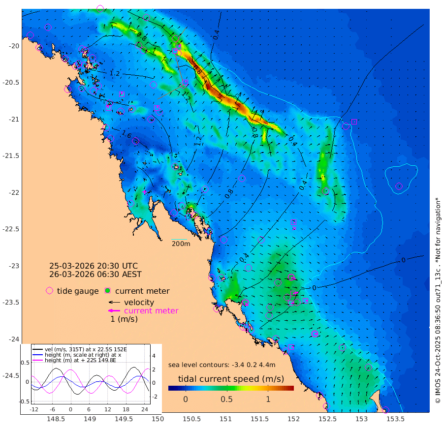 22cm/s -22T +10cm/s rms + 2cm/s 5T. Brampton I 18m 23cm/s 0T +9cm/s rms + 6cm/s 66T. Wigton I 38m 16cm/s 27T +7cm/s rms + 8cm/s 141T. Tern I 47m 33cm/s 34T +7cm/s rms + 12cm/s 54T. N Bugatti Rf 64m 18cm/s 42T +3cm/s rms + 13cm/s 178T. W Bugatti Rf 70m 11cm/s 40T +3cm/s rms + 3cm/s -130T. Creal Rf 69m 44cm/s 113T +7cm/s rms + 4cm/s 2T. North Rf 62m 35cm/s 140T +9cm/s rms + 2cm/s -56T. Cape Capricorn 26m 18cm/s 93T +5cm/s rms + 3cm/s 166T. L Musgrave I 42m 19cm/s 108T +9cm/s rms + 1cm/s -142T. Round Hill Hd 26m 4cm/s 70T +41cm/s rms + 48cm/s 116T. GBRELR 305m 14cm/s 124T +7cm/s rms + 6cm/s 123T. GBRCCH 92m 45cm/s 78T +8cm/s rms + 3cm/s -33T. GBRHIN 45m 29cm/s 91T +4cm/s rms + 2cm/s 41T. GBRHIS 46m 21cm/s 78T +16cm/s rms + 4cm/s -22T. GBROTE 59m 76cm Bell Cay 92cm Holbourne I 136cm Tern I 85cm Bugatti Rf 101cm Creal Rf 71cm White Tip I 16cm North Rf 16cm Rundle I 0cm L Musgrave I 14cm Saumarez Reef 75cm Kennedy Reef 66cm Unnamed Reef No. 2 100cm Abbot Point 106cm Bowen 116cm Tideway Reef 109cm Hayman Island 137cm Square Reef 104cm Double Bay 136cm Molle Island 127cm Cid Harbour 105cm Hook Island 123cm Border Island 123cm Haslewood Island 125cm Shute Harbour 136cm Thomas Island 141cm Credlin Reef 159cm East Repulse Island 147cm Blacksmith Island 157cm Laguna Quays 153cm Carlisle Island (Off) 153cm St. Bees Island 142cm Scawfell Island 149cm Penrith Island 160cm Mackay Outer Harbour 164cm Hay Point 153cm Prudhoe Island 114cm Middle Island (Percy Isles) 58cm Gannet Cay 28cm Elusive Reef 195cm Mcewin Islet 125cm Mumford Island 147cm Osborn Island 146cm Marquis Island 136cm Reef Point 93cm High Peak Island 56cm Port Clinton 52cm Peaked Island 11cm Karamea Bank 20cm Johnson Patch - NW 38cm Rosslyn Bay 40cm Middle Island (Keppel Isles) 45cm Port Alma 7cm Heron Island 4cm One Tree Islet 4cm Polmaise Reef 21cm Tryon Island 13cm Rock Cod Shoal 15cm Gatcombe Head 22cm Gladstone 15cm South Trees (Storm Surge) -4cm Clews Point -4cm Round Hill Head -4cm Lady Elliot Island -5cm Breaksea Spit -3cm Bundaberg (Burnett Heads) -4cm Elliot Heads -4cm Waddy Point (Fraser Island)