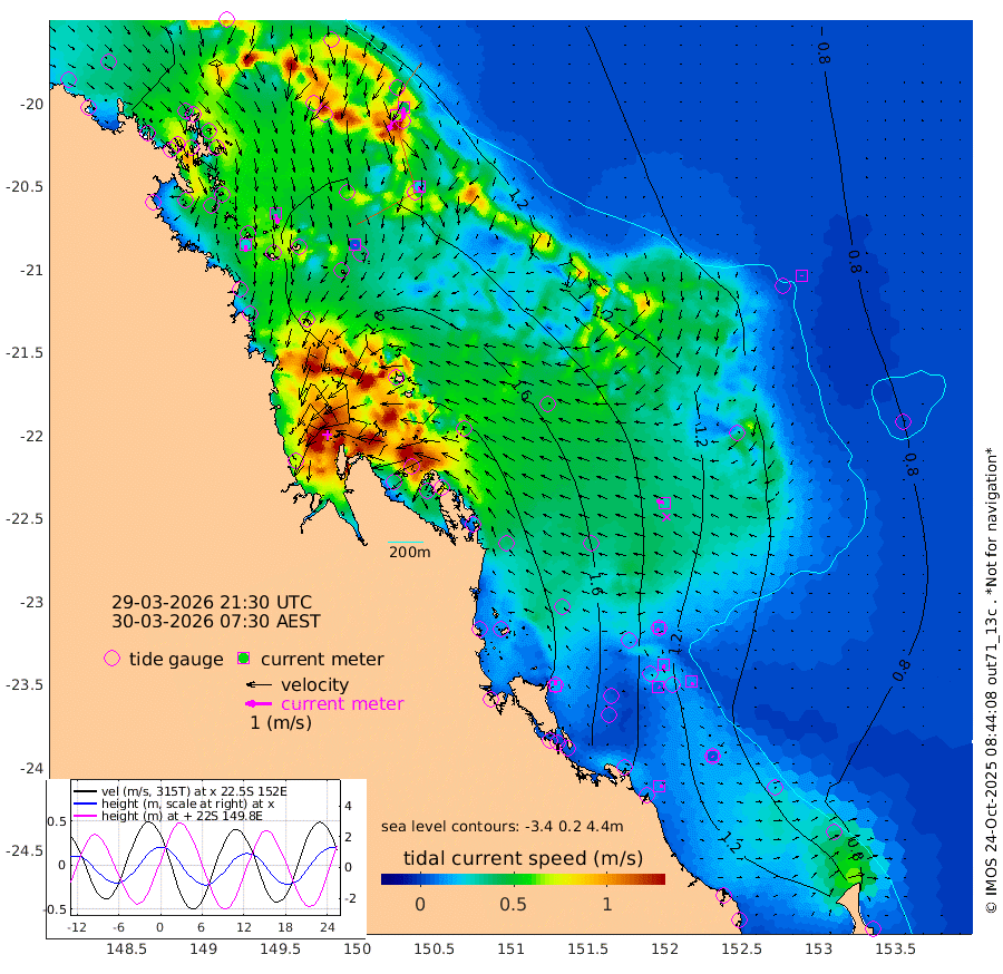 25cm/s -178T +10cm/s rms + 2cm/s 5T. Brampton I 18m 37cm/s 165T +9cm/s rms + 6cm/s 66T. Wigton I 38m 4cm/s -172T +7cm/s rms + 8cm/s 141T. Tern I 47m 42cm/s -176T +7cm/s rms + 12cm/s 54T. N Bugatti Rf 64m 67cm/s -154T +3cm/s rms + 13cm/s 178T. W Bugatti Rf 70m 22cm/s 168T +3cm/s rms + 3cm/s -130T. Creal Rf 69m 12cm/s -148T +7cm/s rms + 4cm/s 2T. North Rf 62m 16cm/s 2T +9cm/s rms + 2cm/s -56T. Cape Capricorn 26m 6cm/s 145T +5cm/s rms + 3cm/s 166T. L Musgrave I 42m 11cm/s 108T +9cm/s rms + 1cm/s -142T. Round Hill Hd 26m 2cm/s -166T +41cm/s rms + 48cm/s 116T. GBRELR 305m 29cm/s -72T +7cm/s rms + 6cm/s 123T. GBRCCH 92m 13cm/s 175T +8cm/s rms + 3cm/s -33T. GBRHIN 45m 6cm/s 113T +4cm/s rms + 2cm/s 41T. GBRHIS 46m 13cm/s 164T +16cm/s rms + 4cm/s -22T. GBROTE 59m 175cm Bell Cay 146cm Holbourne I 190cm Tern I 132cm Bugatti Rf 149cm Creal Rf 124cm White Tip I 139cm North Rf 178cm Rundle I 99cm L Musgrave I 90cm Saumarez Reef 127cm Kennedy Reef 130cm Unnamed Reef No. 2 144cm Abbot Point 145cm Bowen 143cm Tideway Reef 153cm Hayman Island 170cm Square Reef 165cm Double Bay 157cm Molle Island 146cm Cid Harbour 148cm Hook Island 133cm Border Island 140cm Haslewood Island 152cm Shute Harbour 154cm Thomas Island 177cm Credlin Reef 168cm East Repulse Island 150cm Blacksmith Island 158cm Laguna Quays 178cm Carlisle Island (Off) 182cm St. Bees Island 165cm Scawfell Island 194cm Penrith Island 185cm Mackay Outer Harbour 198cm Hay Point 214cm Prudhoe Island 225cm Middle Island (Percy Isles) 157cm Gannet Cay 88cm Elusive Reef 173cm Mcewin Islet 248cm Mumford Island 231cm Osborn Island 241cm Marquis Island 221cm Reef Point 200cm High Peak Island 220cm Port Clinton 224cm Peaked Island 142cm Karamea Bank 178cm Johnson Patch - NW 210cm Rosslyn Bay 217cm Middle Island (Keppel Isles) 229cm Port Alma 134cm Heron Island 145cm One Tree Islet 149cm Polmaise Reef 141cm Tryon Island 154cm Rock Cod Shoal 164cm Gatcombe Head 183cm Gladstone 176cm South Trees (Storm Surge) 133cm Clews Point 119cm Round Hill Head 93cm Lady Elliot Island 84cm Breaksea Spit 125cm Bundaberg (Burnett Heads) 127cm Elliot Heads 68cm Waddy Point (Fraser Island)