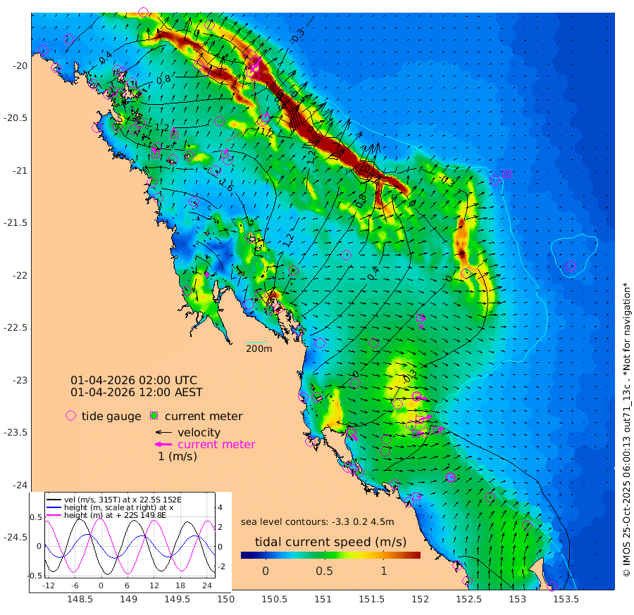 44cm/s -11T +10cm/s rms + 2cm/s 5T. Brampton I 18m 47cm/s -4T +9cm/s rms + 6cm/s 66T. Wigton I 38m 35cm/s 29T +7cm/s rms + 8cm/s 141T. Tern I 47m 73cm/s 23T +7cm/s rms + 12cm/s 54T. N Bugatti Rf 64m 75cm/s 35T +3cm/s rms + 13cm/s 178T. W Bugatti Rf 70m 34cm/s 30T +3cm/s rms + 3cm/s -130T. Creal Rf 69m 68cm/s 105T +7cm/s rms + 4cm/s 2T. North Rf 62m 58cm/s 142T +9cm/s rms + 2cm/s -56T. Cape Capricorn 26m 17cm/s 82T +5cm/s rms + 3cm/s 166T. L Musgrave I 42m 23cm/s 108T +9cm/s rms + 1cm/s -142T. Round Hill Hd 26m 7cm/s 59T +41cm/s rms + 48cm/s 116T. GBRELR 305m 36cm/s 110T +7cm/s rms + 6cm/s 123T. GBRCCH 92m 76cm/s 74T +8cm/s rms + 3cm/s -33T. GBRHIN 45m 46cm/s 88T +4cm/s rms + 2cm/s 41T. GBRHIS 46m 39cm/s 70T +16cm/s rms + 4cm/s -22T. GBROTE 59m 54cm Bell Cay 29cm Holbourne I 134cm Tern I 42cm Bugatti Rf 85cm Creal Rf 11cm White Tip I -39cm North Rf -45cm Rundle I -51cm L Musgrave I -34cm Saumarez Reef -8cm Kennedy Reef -12cm Unnamed Reef No. 2 22cm Abbot Point 36cm Bowen 69cm Tideway Reef 47cm Hayman Island 96cm Square Reef 62cm Double Bay 79cm Molle Island 82cm Cid Harbour 63cm Hook Island 80cm Border Island 97cm Haslewood Island 86cm Shute Harbour 125cm Thomas Island 118cm Credlin Reef 145cm East Repulse Island 134cm Blacksmith Island 163cm Laguna Quays 146cm Carlisle Island (Off) 167cm St. Bees Island 144cm Scawfell Island 138cm Penrith Island 180cm Mackay Outer Harbour 188cm Hay Point 181cm Prudhoe Island 131cm Middle Island (Percy Isles) 41cm Gannet Cay -38cm Elusive Reef 306cm Mcewin Islet 102cm Mumford Island 143cm Osborn Island 162cm Marquis Island 130cm Reef Point 82cm High Peak Island 32cm Port Clinton 6cm Peaked Island -49cm Karamea Bank -25cm Johnson Patch - NW -15cm Rosslyn Bay -19cm Middle Island (Keppel Isles) 1cm Port Alma -47cm Heron Island -65cm One Tree Islet -55cm Polmaise Reef -42cm Tryon Island -51cm Rock Cod Shoal -35cm Gatcombe Head -21cm Gladstone -36cm South Trees (Storm Surge) -71cm Clews Point -56cm Round Hill Head -53cm Lady Elliot Island -61cm Breaksea Spit -57cm Bundaberg (Burnett Heads) -59cm Elliot Heads -45cm Waddy Point (Fraser Island)