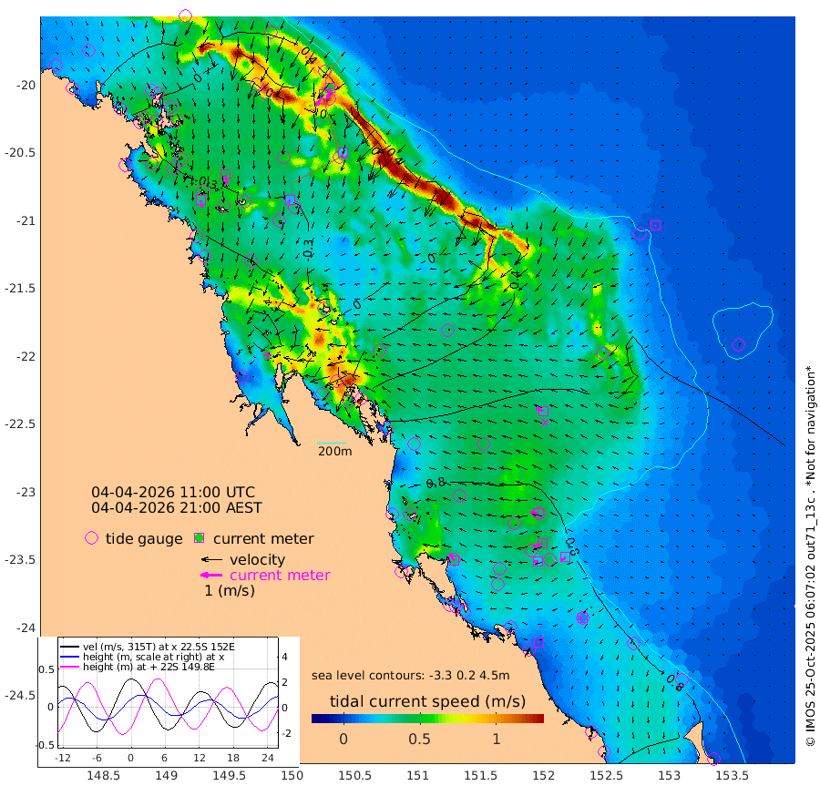 35cm/s 171T +10cm/s rms + 2cm/s 5T. Brampton I 18m 46cm/s 172T +9cm/s rms + 6cm/s 66T. Wigton I 38m 19cm/s -150T +7cm/s rms + 8cm/s 141T. Tern I 47m 52cm/s -164T +7cm/s rms + 12cm/s 54T. N Bugatti Rf 64m 63cm/s -147T +3cm/s rms + 13cm/s 178T. W Bugatti Rf 70m 26cm/s -173T +3cm/s rms + 3cm/s -130T. Creal Rf 69m 40cm/s -83T +7cm/s rms + 4cm/s 2T. North Rf 62m 38cm/s -31T +9cm/s rms + 2cm/s -56T. Cape Capricorn 26m 12cm/s -116T +5cm/s rms + 3cm/s 166T. L Musgrave I 42m 8cm/s -89T +9cm/s rms + 1cm/s -142T. Round Hill Hd 26m 5cm/s -127T +41cm/s rms + 48cm/s 116T. GBRELR 305m 34cm/s -69T +7cm/s rms + 6cm/s 123T. GBRCCH 92m 44cm/s -113T +8cm/s rms + 3cm/s -33T. GBRHIN 45m 24cm/s -95T +4cm/s rms + 2cm/s 41T. GBRHIS 46m 25cm/s -128T +16cm/s rms + 4cm/s -22T. GBROTE 59m 54cm Bell Cay 25cm Holbourne I 12cm Tern I 29cm Bugatti Rf 22cm Creal Rf 38cm White Tip I 90cm North Rf 111cm Rundle I 78cm L Musgrave I 69cm Saumarez Reef 39cm Kennedy Reef 43cm Unnamed Reef No. 2 27cm Abbot Point 21cm Bowen 10cm Tideway Reef 26cm Hayman Island 19cm Square Reef 8cm Double Bay -6cm Molle Island 14cm Cid Harbour 11cm Hook Island 7cm Border Island 0cm Haslewood Island 5cm Shute Harbour -7cm Thomas Island 13cm Credlin Reef -16cm East Repulse Island -2cm Blacksmith Island -25cm Laguna Quays -8cm Carlisle Island (Off) 6cm St. Bees Island 8cm Scawfell Island 14cm Penrith Island -15cm Mackay Outer Harbour -12cm Hay Point -1cm Prudhoe Island 35cm Middle Island (Percy Isles) 52cm Gannet Cay 50cm Elusive Reef -79cm Mcewin Islet 73cm Mumford Island 45cm Osborn Island 45cm Marquis Island 42cm Reef Point 52cm High Peak Island 85cm Port Clinton 111cm Peaked Island 93cm Karamea Bank 106cm Johnson Patch - NW 112cm Rosslyn Bay 116cm Middle Island (Keppel Isles) 115cm Port Alma 94cm Heron Island 108cm One Tree Islet 107cm Polmaise Reef 97cm Tryon Island 99cm Rock Cod Shoal 100cm Gatcombe Head 107cm Gladstone 109cm South Trees (Storm Surge) 107cm Clews Point 95cm Round Hill Head 78cm Lady Elliot Island 76cm Breaksea Spit 96cm Bundaberg (Burnett Heads) 104cm Elliot Heads 63cm Waddy Point (Fraser Island)