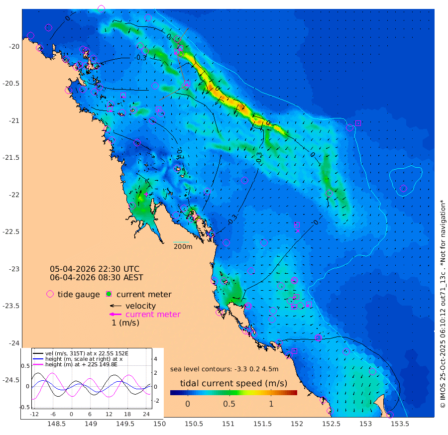 23cm/s 152T +10cm/s rms + 2cm/s 5T. Brampton I 18m 22cm/s 169T +9cm/s rms + 6cm/s 66T. Wigton I 38m 15cm/s -170T +7cm/s rms + 8cm/s 141T. Tern I 47m 25cm/s -161T +7cm/s rms + 12cm/s 54T. N Bugatti Rf 64m 28cm/s -149T +3cm/s rms + 13cm/s 178T. W Bugatti Rf 70m 19cm/s -171T +3cm/s rms + 3cm/s -130T. Creal Rf 69m 18cm/s -76T +7cm/s rms + 4cm/s 2T. North Rf 62m 17cm/s -49T +9cm/s rms + 2cm/s -56T. Cape Capricorn 26m 9cm/s -87T +5cm/s rms + 3cm/s 166T. L Musgrave I 42m 8cm/s -71T +9cm/s rms + 1cm/s -142T. Round Hill Hd 26m 4cm/s 176T +41cm/s rms + 48cm/s 116T. GBRELR 305m 12cm/s -92T +7cm/s rms + 6cm/s 123T. GBRCCH 92m 30cm/s -99T +8cm/s rms + 3cm/s -33T. GBRHIN 45m 19cm/s -97T +4cm/s rms + 2cm/s 41T. GBRHIS 46m 21cm/s -129T +16cm/s rms + 4cm/s -22T. GBROTE 59m -22cm Bell Cay -8cm Holbourne I -52cm Tern I -13cm Bugatti Rf -30cm Creal Rf -1cm White Tip I 12cm North Rf 15cm Rundle I 17cm L Musgrave I 31cm Saumarez Reef 6cm Kennedy Reef 8cm Unnamed Reef No. 2 3cm Abbot Point -3cm Bowen -19cm Tideway Reef -10cm Hayman Island -22cm Square Reef -35cm Double Bay -26cm Molle Island -14cm Cid Harbour -24cm Hook Island -20cm Border Island -21cm Haslewood Island -26cm Shute Harbour -45cm Thomas Island -36cm Credlin Reef -46cm East Repulse Island -40cm Blacksmith Island -61cm Laguna Quays -47cm Carlisle Island (Off) -55cm St. Bees Island -48cm Scawfell Island -49cm Penrith Island -73cm Mackay Outer Harbour -79cm Hay Point -80cm Prudhoe Island -71cm Middle Island (Percy Isles) -25cm Gannet Cay 13cm Elusive Reef -157cm Mcewin Islet -47cm Mumford Island -60cm Osborn Island -66cm Marquis Island -51cm Reef Point -34cm High Peak Island -27cm Port Clinton -2cm Peaked Island 18cm Karamea Bank 2cm Johnson Patch - NW 2cm Rosslyn Bay 7cm Middle Island (Keppel Isles) -4cm Port Alma 17cm Heron Island 16cm One Tree Islet 16cm Polmaise Reef 15cm Tryon Island 21cm Rock Cod Shoal 10cm Gatcombe Head 6cm Gladstone 11cm South Trees (Storm Surge) 22cm Clews Point 20cm Round Hill Head 19cm Lady Elliot Island 14cm Breaksea Spit 24cm Bundaberg (Burnett Heads) 31cm Elliot Heads 9cm Waddy Point (Fraser Island)