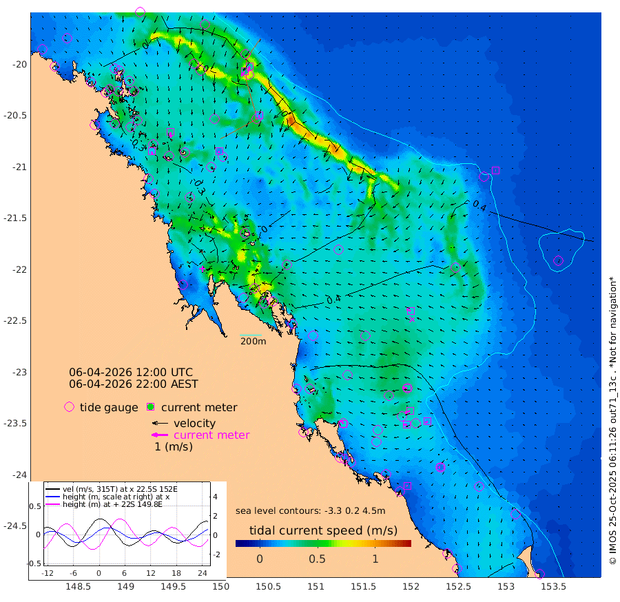 22cm/s 173T +10cm/s rms + 2cm/s 5T. Brampton I 18m 32cm/s 174T +9cm/s rms + 6cm/s 66T. Wigton I 38m 12cm/s -148T +7cm/s rms + 8cm/s 141T. Tern I 47m 32cm/s -161T +7cm/s rms + 12cm/s 54T. N Bugatti Rf 64m 35cm/s -146T +3cm/s rms + 13cm/s 178T. W Bugatti Rf 70m 16cm/s -179T +3cm/s rms + 3cm/s -130T. Creal Rf 69m 31cm/s -81T +7cm/s rms + 4cm/s 2T. North Rf 62m 26cm/s -32T +9cm/s rms + 2cm/s -56T. Cape Capricorn 26m 10cm/s -116T +5cm/s rms + 3cm/s 166T. L Musgrave I 42m 6cm/s -95T +9cm/s rms + 1cm/s -142T. Round Hill Hd 26m 4cm/s -113T +41cm/s rms + 48cm/s 116T. GBRELR 305m 26cm/s -66T +7cm/s rms + 6cm/s 123T. GBRCCH 92m 31cm/s -112T +8cm/s rms + 3cm/s -33T. GBRHIN 45m 18cm/s -95T +4cm/s rms + 2cm/s 41T. GBRHIS 46m 17cm/s -122T +16cm/s rms + 4cm/s -22T. GBROTE 59m 40cm Bell Cay 4cm Holbourne I 8cm Tern I 18cm Bugatti Rf 16cm Creal Rf 22cm White Tip I 67cm North Rf 81cm Rundle I 60cm L Musgrave I 53cm Saumarez Reef 14cm Kennedy Reef 22cm Unnamed Reef No. 2 8cm Abbot Point 6cm Bowen 1cm Tideway Reef 10cm Hayman Island 9cm Square Reef -5cm Double Bay -13cm Molle Island 11cm Cid Harbour -3cm Hook Island 2cm Border Island 1cm Haslewood Island -1cm Shute Harbour -5cm Thomas Island 10cm Credlin Reef -9cm East Repulse Island 5cm Blacksmith Island -17cm Laguna Quays -4cm Carlisle Island (Off) 12cm St. Bees Island 14cm Scawfell Island 12cm Penrith Island -8cm Mackay Outer Harbour -5cm Hay Point -3cm Prudhoe Island 25cm Middle Island (Percy Isles) 39cm Gannet Cay 34cm Elusive Reef -45cm Mcewin Islet 52cm Mumford Island 40cm Osborn Island 44cm Marquis Island 40cm Reef Point 41cm High Peak Island 58cm Port Clinton 78cm Peaked Island 69cm Karamea Bank 79cm Johnson Patch - NW 82cm Rosslyn Bay 84cm Middle Island (Keppel Isles) 85cm Port Alma 73cm Heron Island 78cm One Tree Islet 79cm Polmaise Reef 77cm Tryon Island 75cm Rock Cod Shoal 74cm Gatcombe Head 80cm Gladstone 81cm South Trees (Storm Surge) 78cm Clews Point 73cm Round Hill Head 61cm Lady Elliot Island 60cm Breaksea Spit 72cm Bundaberg (Burnett Heads) 82cm Elliot Heads 52cm Waddy Point (Fraser Island)