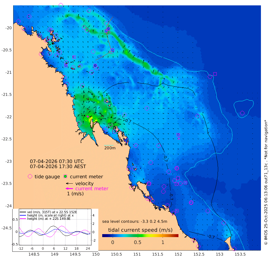 9cm/s -2T +10cm/s rms + 2cm/s 5T. Brampton I 18m 16cm/s -10T +9cm/s rms + 6cm/s 66T. Wigton I 38m 3cm/s 45T +7cm/s rms + 8cm/s 141T. Tern I 47m 5cm/s -21T +7cm/s rms + 12cm/s 54T. N Bugatti Rf 64m 10cm/s 41T +3cm/s rms + 13cm/s 178T. W Bugatti Rf 70m 9cm/s -9T +3cm/s rms + 3cm/s -130T. Creal Rf 69m 8cm/s -30T +7cm/s rms + 4cm/s 2T. North Rf 62m 2cm/s 174T +9cm/s rms + 2cm/s -56T. Cape Capricorn 26m 8cm/s -67T +5cm/s rms + 3cm/s 166T. L Musgrave I 42m 7cm/s -58T +9cm/s rms + 1cm/s -142T. Round Hill Hd 26m 0cm/s -78T +41cm/s rms + 48cm/s 116T. GBRELR 305m 10cm/s 95T +7cm/s rms + 6cm/s 123T. GBRCCH 92m 3cm/s -46T +8cm/s rms + 3cm/s -33T. GBRHIN 45m 3cm/s -38T +4cm/s rms + 2cm/s 41T. GBRHIS 46m 8cm/s 6T +16cm/s rms + 4cm/s -22T. GBROTE 59m -69cm Bell Cay -43cm Holbourne I -67cm Tern I -50cm Bugatti Rf -58cm Creal Rf -45cm White Tip I -61cm North Rf -74cm Rundle I -48cm L Musgrave I -46cm Saumarez Reef -46cm Kennedy Reef -40cm Unnamed Reef No. 2 -40cm Abbot Point -41cm Bowen -43cm Tideway Reef -46cm Hayman Island -61cm Square Reef -34cm Double Bay -50cm Molle Island -57cm Cid Harbour -46cm Hook Island -51cm Border Island -50cm Haslewood Island -48cm Shute Harbour -51cm Thomas Island -62cm Credlin Reef -53cm East Repulse Island -67cm Blacksmith Island -55cm Laguna Quays -61cm Carlisle Island (Off) -76cm St. Bees Island -70cm Scawfell Island -74cm Penrith Island -66cm Mackay Outer Harbour -70cm Hay Point -66cm Prudhoe Island -90cm Middle Island (Percy Isles) -66cm Gannet Cay -36cm Elusive Reef -76cm Mcewin Islet -101cm Mumford Island -103cm Osborn Island -110cm Marquis Island -95cm Reef Point -80cm High Peak Island -84cm Port Clinton -83cm Peaked Island -57cm Karamea Bank -84cm Johnson Patch - NW -86cm Rosslyn Bay -84cm Middle Island (Keppel Isles) -98cm Port Alma -65cm Heron Island -65cm One Tree Islet -68cm Polmaise Reef -71cm Tryon Island -62cm Rock Cod Shoal -73cm Gatcombe Head -85cm Gladstone -81cm South Trees (Storm Surge) -62cm Clews Point -61cm Round Hill Head -48cm Lady Elliot Island -48cm Breaksea Spit -66cm Bundaberg (Burnett Heads) -75cm Elliot Heads -36cm Waddy Point (Fraser Island)