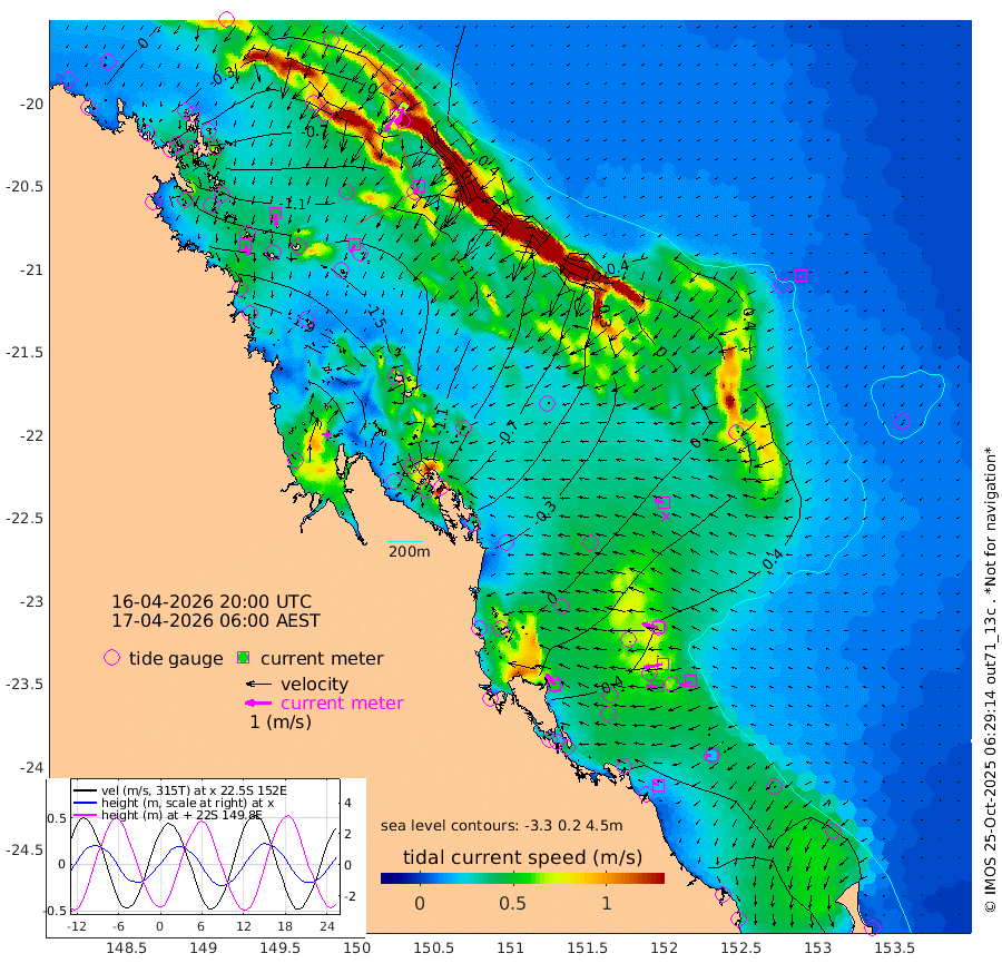 45cm/s 165T +10cm/s rms + 2cm/s 5T. Brampton I 18m 45cm/s 175T +9cm/s rms + 6cm/s 66T. Wigton I 38m 34cm/s -154T +7cm/s rms + 8cm/s 141T. Tern I 47m 69cm/s -156T +7cm/s rms + 12cm/s 54T. N Bugatti Rf 64m 72cm/s -148T +3cm/s rms + 13cm/s 178T. W Bugatti Rf 70m 35cm/s -154T +3cm/s rms + 3cm/s -130T. Creal Rf 69m 63cm/s -76T +7cm/s rms + 4cm/s 2T. North Rf 62m 54cm/s -39T +9cm/s rms + 2cm/s -56T. Cape Capricorn 26m 21cm/s -93T +5cm/s rms + 3cm/s 166T. L Musgrave I 42m 20cm/s -71T +9cm/s rms + 1cm/s -142T. Round Hill Hd 26m 7cm/s -135T +41cm/s rms + 48cm/s 116T. GBRELR 305m 36cm/s -73T +7cm/s rms + 6cm/s 123T. GBRCCH 92m 73cm/s -102T +8cm/s rms + 3cm/s -33T. GBRHIN 45m 46cm/s -94T +4cm/s rms + 2cm/s 41T. GBRHIS 46m 43cm/s -116T +16cm/s rms + 4cm/s -22T. GBROTE 59m -46cm Bell Cay -11cm Holbourne I -124cm Tern I -32cm Bugatti Rf -75cm Creal Rf 0cm White Tip I 44cm North Rf 51cm Rundle I 54cm L Musgrave I 45cm Saumarez Reef 9cm Kennedy Reef 26cm Unnamed Reef No. 2 -4cm Abbot Point -19cm Bowen -54cm Tideway Reef -34cm Hayman Island -82cm Square Reef -32cm Double Bay -57cm Molle Island -73cm Cid Harbour -43cm Hook Island -73cm Border Island -77cm Haslewood Island -70cm Shute Harbour -114cm Thomas Island -104cm Credlin Reef -125cm East Repulse Island -131cm Blacksmith Island -149cm Laguna Quays -122cm Carlisle Island (Off) -148cm St. Bees Island -133cm Scawfell Island -128cm Penrith Island -169cm Mackay Outer Harbour -178cm Hay Point -166cm Prudhoe Island -127cm Middle Island (Percy Isles) -37cm Gannet Cay 44cm Elusive Reef -309cm Mcewin Islet -111cm Mumford Island -155cm Osborn Island -164cm Marquis Island -134cm Reef Point -74cm High Peak Island -22cm Port Clinton 2cm Peaked Island 57cm Karamea Bank 26cm Johnson Patch - NW 21cm Rosslyn Bay 28cm Middle Island (Keppel Isles) 4cm Port Alma 53cm Heron Island 63cm One Tree Islet 54cm Polmaise Reef 37cm Tryon Island 62cm Rock Cod Shoal 40cm Gatcombe Head 25cm Gladstone 40cm South Trees (Storm Surge) 67cm Clews Point 56cm Round Hill Head 57cm Lady Elliot Island 56cm Breaksea Spit 61cm Bundaberg (Burnett Heads) 62cm Elliot Heads 43cm Waddy Point (Fraser Island)