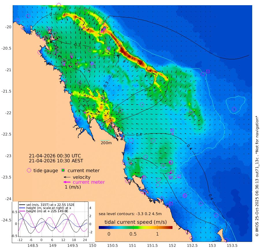 35cm/s 160T +10cm/s rms + 2cm/s 5T. Brampton I 18m 40cm/s 168T +9cm/s rms + 6cm/s 66T. Wigton I 38m 17cm/s -170T +7cm/s rms + 8cm/s 141T. Tern I 47m 43cm/s -161T +7cm/s rms + 12cm/s 54T. N Bugatti Rf 64m 47cm/s -150T +3cm/s rms + 13cm/s 178T. W Bugatti Rf 70m 22cm/s -178T +3cm/s rms + 3cm/s -130T. Creal Rf 69m 25cm/s -72T +7cm/s rms + 4cm/s 2T. North Rf 62m 27cm/s -35T +9cm/s rms + 2cm/s -56T. Cape Capricorn 26m 12cm/s -82T +5cm/s rms + 3cm/s 166T. L Musgrave I 42m 7cm/s -70T +9cm/s rms + 1cm/s -142T. Round Hill Hd 26m 5cm/s -177T +41cm/s rms + 48cm/s 116T. GBRELR 305m 18cm/s -80T +7cm/s rms + 6cm/s 123T. GBRCCH 92m 32cm/s -113T +8cm/s rms + 3cm/s -33T. GBRHIN 45m 18cm/s -99T +4cm/s rms + 2cm/s 41T. GBRHIS 46m 22cm/s -147T +16cm/s rms + 4cm/s -22T. GBROTE 59m 23cm Bell Cay 2cm Holbourne I -13cm Tern I -4cm Bugatti Rf -7cm Creal Rf 1cm White Tip I 45cm North Rf 66cm Rundle I 37cm L Musgrave I 34cm Saumarez Reef 8cm Kennedy Reef 9cm Unnamed Reef No. 2 -4cm Abbot Point -8cm Bowen -20cm Tideway Reef -11cm Hayman Island -22cm Square Reef -5cm Double Bay -32cm Molle Island -19cm Cid Harbour -11cm Hook Island -27cm Border Island -22cm Haslewood Island -21cm Shute Harbour -30cm Thomas Island -22cm Credlin Reef -38cm East Repulse Island -32cm Blacksmith Island -44cm Laguna Quays -28cm Carlisle Island (Off) -20cm St. Bees Island -26cm Scawfell Island -23cm Penrith Island -36cm Mackay Outer Harbour -33cm Hay Point -21cm Prudhoe Island 17cm Middle Island (Percy Isles) 25cm Gannet Cay 12cm Elusive Reef -77cm Mcewin Islet 22cm Mumford Island -1cm Osborn Island 6cm Marquis Island 6cm Reef Point 24cm High Peak Island 55cm Port Clinton 65cm Peaked Island 51cm Karamea Bank 62cm Johnson Patch - NW 68cm Rosslyn Bay 70cm Middle Island (Keppel Isles) 75cm Port Alma 50cm Heron Island 52cm One Tree Islet 60cm Polmaise Reef 42cm Tryon Island 56cm Rock Cod Shoal 61cm Gatcombe Head 69cm Gladstone 70cm South Trees (Storm Surge) 57cm Clews Point 51cm Round Hill Head 37cm Lady Elliot Island 30cm Breaksea Spit 61cm Bundaberg (Burnett Heads) 67cm Elliot Heads 18cm Waddy Point (Fraser Island)