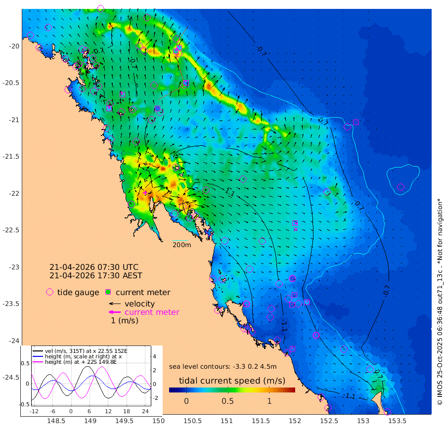 20cm/s -3T +10cm/s rms + 2cm/s 5T. Brampton I 18m 30cm/s -13T +9cm/s rms + 6cm/s 66T. Wigton I 38m 6cm/s 20T +7cm/s rms + 8cm/s 141T. Tern I 47m 22cm/s 6T +7cm/s rms + 12cm/s 54T. N Bugatti Rf 64m 34cm/s 30T +3cm/s rms + 13cm/s 178T. W Bugatti Rf 70m 15cm/s -7T +3cm/s rms + 3cm/s -130T. Creal Rf 69m 5cm/s 12T +7cm/s rms + 4cm/s 2T. North Rf 62m 10cm/s 166T +9cm/s rms + 2cm/s -56T. Cape Capricorn 26m 9cm/s -63T +5cm/s rms + 3cm/s 166T. L Musgrave I 42m 9cm/s -55T +9cm/s rms + 1cm/s -142T. Round Hill Hd 26m 2cm/s -4T +41cm/s rms + 48cm/s 116T. GBRELR 305m 19cm/s 99T +7cm/s rms + 6cm/s 123T. GBRCCH 92m 6cm/s 24T +8cm/s rms + 3cm/s -33T. GBRHIN 45m 4cm/s -25T +4cm/s rms + 2cm/s 41T. GBRHIS 46m 16cm/s 3T +16cm/s rms + 4cm/s -22T. GBROTE 59m -110cm Bell Cay -83cm Holbourne I -108cm Tern I -80cm Bugatti Rf -89cm Creal Rf -75cm White Tip I -97cm North Rf -122cm Rundle I -74cm L Musgrave I -69cm Saumarez Reef -81cm Kennedy Reef -78cm Unnamed Reef No. 2 -78cm Abbot Point -79cm Bowen -78cm Tideway Reef -79cm Hayman Island -91cm Square Reef -90cm Double Bay -84cm Molle Island -83cm Cid Harbour -85cm Hook Island -76cm Border Island -79cm Haslewood Island -83cm Shute Harbour -84cm Thomas Island -99cm Credlin Reef -90cm East Repulse Island -90cm Blacksmith Island -85cm Laguna Quays -100cm Carlisle Island (Off) -111cm St. Bees Island -91cm Scawfell Island -106cm Penrith Island -102cm Mackay Outer Harbour -110cm Hay Point -114cm Prudhoe Island -145cm Middle Island (Percy Isles) -104cm Gannet Cay -62cm Elusive Reef -107cm Mcewin Islet -144cm Mumford Island -140cm Osborn Island -152cm Marquis Island -139cm Reef Point -128cm High Peak Island -146cm Port Clinton -142cm Peaked Island -100cm Karamea Bank -129cm Johnson Patch - NW -143cm Rosslyn Bay -144cm Middle Island (Keppel Isles) -161cm Port Alma -99cm Heron Island -101cm One Tree Islet -108cm Polmaise Reef -104cm Tryon Island -109cm Rock Cod Shoal -117cm Gatcombe Head -136cm Gladstone -130cm South Trees (Storm Surge) -96cm Clews Point -92cm Round Hill Head -72cm Lady Elliot Island -68cm Breaksea Spit -102cm Bundaberg (Burnett Heads) -107cm Elliot Heads -49cm Waddy Point (Fraser Island)