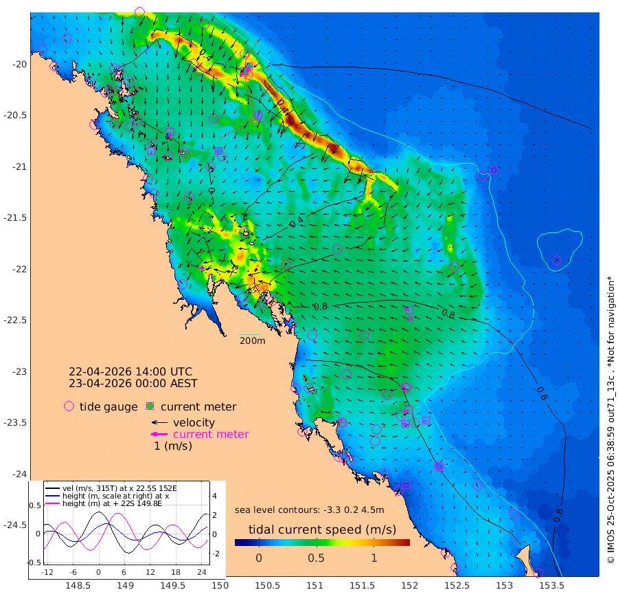 22cm/s -173T +10cm/s rms + 2cm/s 5T. Brampton I 18m 33cm/s 177T +9cm/s rms + 6cm/s 66T. Wigton I 38m 14cm/s -134T +7cm/s rms + 8cm/s 141T. Tern I 47m 35cm/s -161T +7cm/s rms + 12cm/s 54T. N Bugatti Rf 64m 40cm/s -146T +3cm/s rms + 13cm/s 178T. W Bugatti Rf 70m 15cm/s -158T +3cm/s rms + 3cm/s -130T. Creal Rf 69m 33cm/s -84T +7cm/s rms + 4cm/s 2T. North Rf 62m 33cm/s -29T +9cm/s rms + 2cm/s -56T. Cape Capricorn 26m 9cm/s -162T +5cm/s rms + 3cm/s 166T. L Musgrave I 42m 4cm/s -107T +9cm/s rms + 1cm/s -142T. Round Hill Hd 26m 5cm/s -83T +41cm/s rms + 48cm/s 116T. GBRELR 305m 33cm/s -65T +7cm/s rms + 6cm/s 123T. GBRCCH 92m 33cm/s -112T +8cm/s rms + 3cm/s -33T. GBRHIN 45m 19cm/s -95T +4cm/s rms + 2cm/s 41T. GBRHIS 46m 19cm/s -115T +16cm/s rms + 4cm/s -22T. GBROTE 59m 68cm Bell Cay 37cm Holbourne I 33cm Tern I 41cm Bugatti Rf 37cm Creal Rf 47cm White Tip I 99cm North Rf 116cm Rundle I 87cm L Musgrave I 66cm Saumarez Reef 42cm Kennedy Reef 53cm Unnamed Reef No. 2 29cm Abbot Point 26cm Bowen 21cm Tideway Reef 26cm Hayman Island 23cm Square Reef 37cm Double Bay 20cm Molle Island 15cm Cid Harbour 33cm Hook Island 14cm Border Island 12cm Haslewood Island 19cm Shute Harbour 13cm Thomas Island 26cm Credlin Reef 7cm East Repulse Island 4cm Blacksmith Island 0cm Laguna Quays 17cm Carlisle Island (Off) 15cm St. Bees Island 11cm Scawfell Island 26cm Penrith Island 15cm Mackay Outer Harbour 19cm Hay Point 31cm Prudhoe Island 73cm Middle Island (Percy Isles) 71cm Gannet Cay 65cm Elusive Reef -6cm Mcewin Islet 69cm Mumford Island 52cm Osborn Island 59cm Marquis Island 53cm Reef Point 70cm High Peak Island 110cm Port Clinton 111cm Peaked Island 104cm Karamea Bank 120cm Johnson Patch - NW 120cm Rosslyn Bay 121cm Middle Island (Keppel Isles) 125cm Port Alma 104cm Heron Island 115cm One Tree Islet 112cm Polmaise Reef 104cm Tryon Island 111cm Rock Cod Shoal 109cm Gatcombe Head 117cm Gladstone 118cm South Trees (Storm Surge) 109cm Clews Point 103cm Round Hill Head 89cm Lady Elliot Island 90cm Breaksea Spit 103cm Bundaberg (Burnett Heads) 104cm Elliot Heads 75cm Waddy Point (Fraser Island)