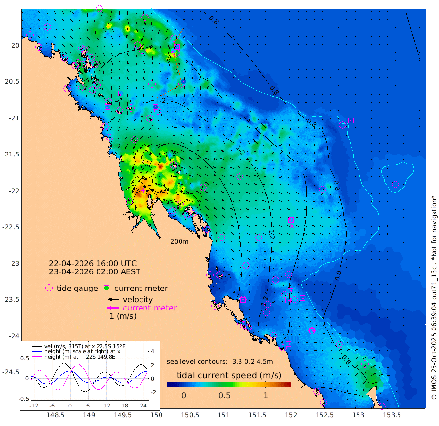 12cm/s -121T +10cm/s rms + 2cm/s 5T. Brampton I 18m 14cm/s 175T +9cm/s rms + 6cm/s 66T. Wigton I 38m 5cm/s -38T +7cm/s rms + 8cm/s 141T. Tern I 47m 11cm/s 168T +7cm/s rms + 12cm/s 54T. N Bugatti Rf 64m 21cm/s -151T +3cm/s rms + 13cm/s 178T. W Bugatti Rf 70m 5cm/s 173T +3cm/s rms + 3cm/s -130T. Creal Rf 69m 9cm/s 165T +7cm/s rms + 4cm/s 2T. North Rf 62m 8cm/s 24T +9cm/s rms + 2cm/s -56T. Cape Capricorn 26m 17cm/s 114T +5cm/s rms + 3cm/s 166T. L Musgrave I 42m 12cm/s 115T +9cm/s rms + 1cm/s -142T. Round Hill Hd 26m 3cm/s -34T +41cm/s rms + 48cm/s 116T. GBRELR 305m 19cm/s -66T +7cm/s rms + 6cm/s 123T. GBRCCH 92m 11cm/s 114T +8cm/s rms + 3cm/s -33T. GBRHIN 45m 10cm/s 98T +4cm/s rms + 2cm/s 41T. GBRHIS 46m 6cm/s 120T +16cm/s rms + 4cm/s -22T. GBROTE 59m 131cm Bell Cay 99cm Holbourne I 146cm Tern I 100cm Bugatti Rf 114cm Creal Rf 91cm White Tip I 104cm North Rf 126cm Rundle I 77cm L Musgrave I 56cm Saumarez Reef 89cm Kennedy Reef 92cm Unnamed Reef No. 2 94cm Abbot Point 98cm Bowen 103cm Tideway Reef 104cm Hayman Island 116cm Square Reef 119cm Double Bay 124cm Molle Island 107cm Cid Harbour 112cm Hook Island 103cm Border Island 106cm Haslewood Island 112cm Shute Harbour 120cm Thomas Island 135cm Credlin Reef 137cm East Repulse Island 121cm Blacksmith Island 130cm Laguna Quays 143cm Carlisle Island (Off) 142cm St. Bees Island 127cm Scawfell Island 150cm Penrith Island 154cm Mackay Outer Harbour 164cm Hay Point 161cm Prudhoe Island 182cm Middle Island (Percy Isles) 128cm Gannet Cay 73cm Elusive Reef 200cm Mcewin Islet 177cm Mumford Island 188cm Osborn Island 200cm Marquis Island 180cm Reef Point 155cm High Peak Island 166cm Port Clinton 145cm Peaked Island 105cm Karamea Bank 134cm Johnson Patch - NW 153cm Rosslyn Bay 151cm Middle Island (Keppel Isles) 169cm Port Alma 103cm Heron Island 106cm One Tree Islet 108cm Polmaise Reef 112cm Tryon Island 116cm Rock Cod Shoal 123cm Gatcombe Head 140cm Gladstone 132cm South Trees (Storm Surge) 96cm Clews Point 93cm Round Hill Head 74cm Lady Elliot Island 75cm Breaksea Spit 96cm Bundaberg (Burnett Heads) 95cm Elliot Heads 61cm Waddy Point (Fraser Island)
