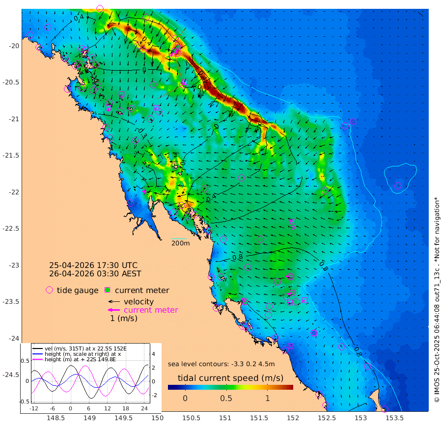 29cm/s -179T +10cm/s rms + 2cm/s 5T. Brampton I 18m 36cm/s 177T +9cm/s rms + 6cm/s 66T. Wigton I 38m 21cm/s -142T +7cm/s rms + 8cm/s 141T. Tern I 47m 50cm/s -159T +7cm/s rms + 12cm/s 54T. N Bugatti Rf 64m 57cm/s -146T +3cm/s rms + 13cm/s 178T. W Bugatti Rf 70m 22cm/s -152T +3cm/s rms + 3cm/s -130T. Creal Rf 69m 42cm/s -84T +7cm/s rms + 4cm/s 2T. North Rf 62m 39cm/s -31T +9cm/s rms + 2cm/s -56T. Cape Capricorn 26m 6cm/s -148T +5cm/s rms + 3cm/s 166T. L Musgrave I 42m 7cm/s -80T +9cm/s rms + 1cm/s -142T. Round Hill Hd 26m 5cm/s -91T +41cm/s rms + 48cm/s 116T. GBRELR 305m 34cm/s -68T +7cm/s rms + 6cm/s 123T. GBRCCH 92m 43cm/s -108T +8cm/s rms + 3cm/s -33T. GBRHIN 45m 26cm/s -94T +4cm/s rms + 2cm/s 41T. GBRHIS 46m 25cm/s -112T +16cm/s rms + 4cm/s -22T. GBROTE 59m 46cm Bell Cay 47cm Holbourne I 2cm Tern I 34cm Bugatti Rf 15cm Creal Rf 49cm White Tip I 90cm North Rf 107cm Rundle I 81cm L Musgrave I 56cm Saumarez Reef 53cm Kennedy Reef 64cm Unnamed Reef No. 2 41cm Abbot Point 34cm Bowen 17cm Tideway Reef 32cm Hayman Island 8cm Square Reef 46cm Double Bay 31cm Molle Island 3cm Cid Harbour 32cm Hook Island 5cm Border Island 0cm Haslewood Island 12cm Shute Harbour -10cm Thomas Island 1cm Credlin Reef -17cm East Repulse Island -23cm Blacksmith Island -26cm Laguna Quays -8cm Carlisle Island (Off) -26cm St. Bees Island -18cm Scawfell Island 2cm Penrith Island -22cm Mackay Outer Harbour -21cm Hay Point -11cm Prudhoe Island 34cm Middle Island (Percy Isles) 54cm Gannet Cay 69cm Elusive Reef -70cm Mcewin Islet 39cm Mumford Island 10cm Osborn Island 9cm Marquis Island 14cm Reef Point 41cm High Peak Island 87cm Port Clinton 85cm Peaked Island 95cm Karamea Bank 102cm Johnson Patch - NW 103cm Rosslyn Bay 103cm Middle Island (Keppel Isles) 101cm Port Alma 95cm Heron Island 110cm One Tree Islet 102cm Polmaise Reef 89cm Tryon Island 103cm Rock Cod Shoal 99cm Gatcombe Head 98cm Gladstone 103cm South Trees (Storm Surge) 103cm Clews Point 92cm Round Hill Head 81cm Lady Elliot Island 84cm Breaksea Spit 95cm Bundaberg (Burnett Heads) 94cm Elliot Heads 68cm Waddy Point (Fraser Island)