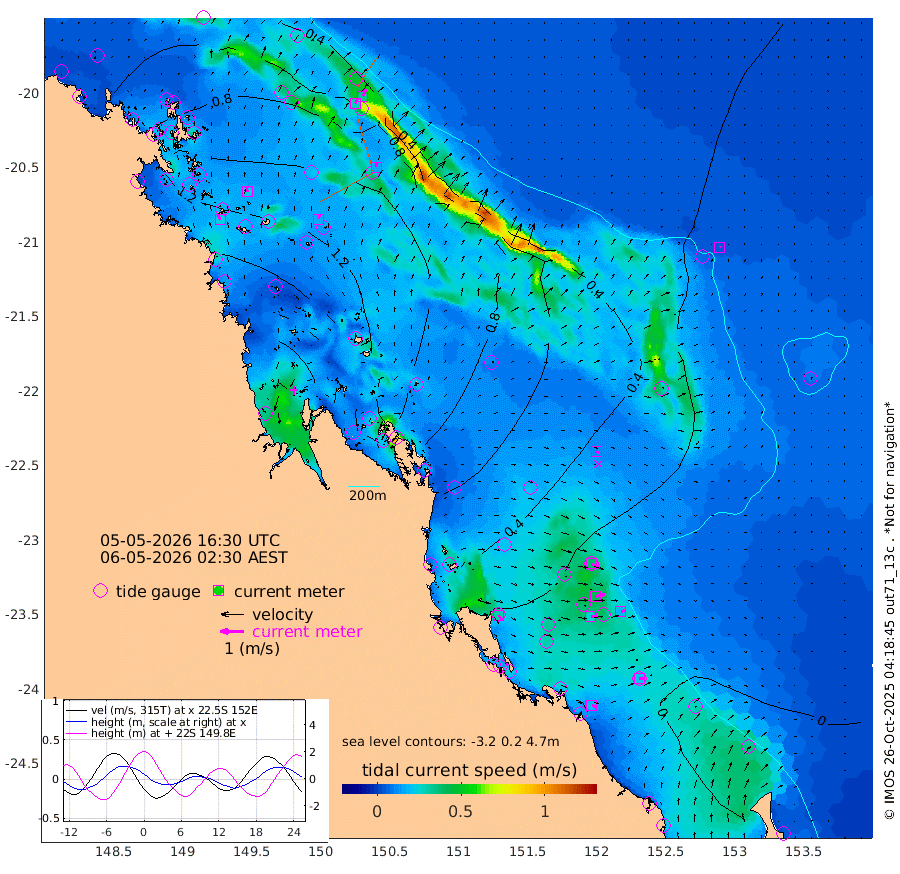 24cm/s -27T +10cm/s rms + 2cm/s 5T. Brampton I 18m 24cm/s -8T +9cm/s rms + 6cm/s 66T. Wigton I 38m 16cm/s 10T +7cm/s rms + 8cm/s 141T. Tern I 47m 33cm/s 26T +7cm/s rms + 12cm/s 54T. N Bugatti Rf 64m 28cm/s 32T +3cm/s rms + 13cm/s 178T. W Bugatti Rf 70m 16cm/s 11T +3cm/s rms + 3cm/s -130T. Creal Rf 69m 38cm/s 115T +7cm/s rms + 4cm/s 2T. North Rf 62m 29cm/s 138T +9cm/s rms + 2cm/s -56T. Cape Capricorn 26m 21cm/s 97T +5cm/s rms + 3cm/s 166T. L Musgrave I 42m 18cm/s 116T +9cm/s rms + 1cm/s -142T. Round Hill Hd 26m 4cm/s 20T +41cm/s rms + 48cm/s 116T. GBRELR 305m 12cm/s 112T +7cm/s rms + 6cm/s 123T. GBRCCH 92m 43cm/s 76T +8cm/s rms + 3cm/s -33T. GBRHIN 45m 26cm/s 91T +4cm/s rms + 2cm/s 41T. GBRHIS 46m 20cm/s 66T +16cm/s rms + 4cm/s -22T. GBROTE 59m 67cm Bell Cay 73cm Holbourne I 113cm Tern I 69cm Bugatti Rf 86cm Creal Rf 57cm White Tip I 18cm North Rf 17cm Rundle I 6cm L Musgrave I 4cm Saumarez Reef 56cm Kennedy Reef 47cm Unnamed Reef No. 2 63cm Abbot Point 70cm Bowen 86cm Tideway Reef 76cm Hayman Island 102cm Square Reef 97cm Double Bay 110cm Molle Island 82cm Cid Harbour 90cm Hook Island 87cm Border Island 85cm Haslewood Island 93cm Shute Harbour 107cm Thomas Island 103cm Credlin Reef 111cm East Repulse Island 108cm Blacksmith Island 128cm Laguna Quays 114cm Carlisle Island (Off) 122cm St. Bees Island 110cm Scawfell Island 120cm Penrith Island 137cm Mackay Outer Harbour 142cm Hay Point 143cm Prudhoe Island 129cm Middle Island (Percy Isles) 62cm Gannet Cay 24cm Elusive Reef 209cm Mcewin Islet 111cm Mumford Island 119cm Osborn Island 123cm Marquis Island 105cm Reef Point 83cm High Peak Island 69cm Port Clinton 45cm Peaked Island 10cm Karamea Bank 37cm Johnson Patch - NW 37cm Rosslyn Bay 31cm Middle Island (Keppel Isles) 46cm Port Alma 13cm Heron Island 17cm One Tree Islet 14cm Polmaise Reef 19cm Tryon Island 8cm Rock Cod Shoal 22cm Gatcombe Head 28cm Gladstone 21cm South Trees (Storm Surge) 3cm Clews Point 4cm Round Hill Head 3cm Lady Elliot Island 8cm Breaksea Spit 5cm Bundaberg (Burnett Heads) 0cm Elliot Heads 6cm Waddy Point (Fraser Island)