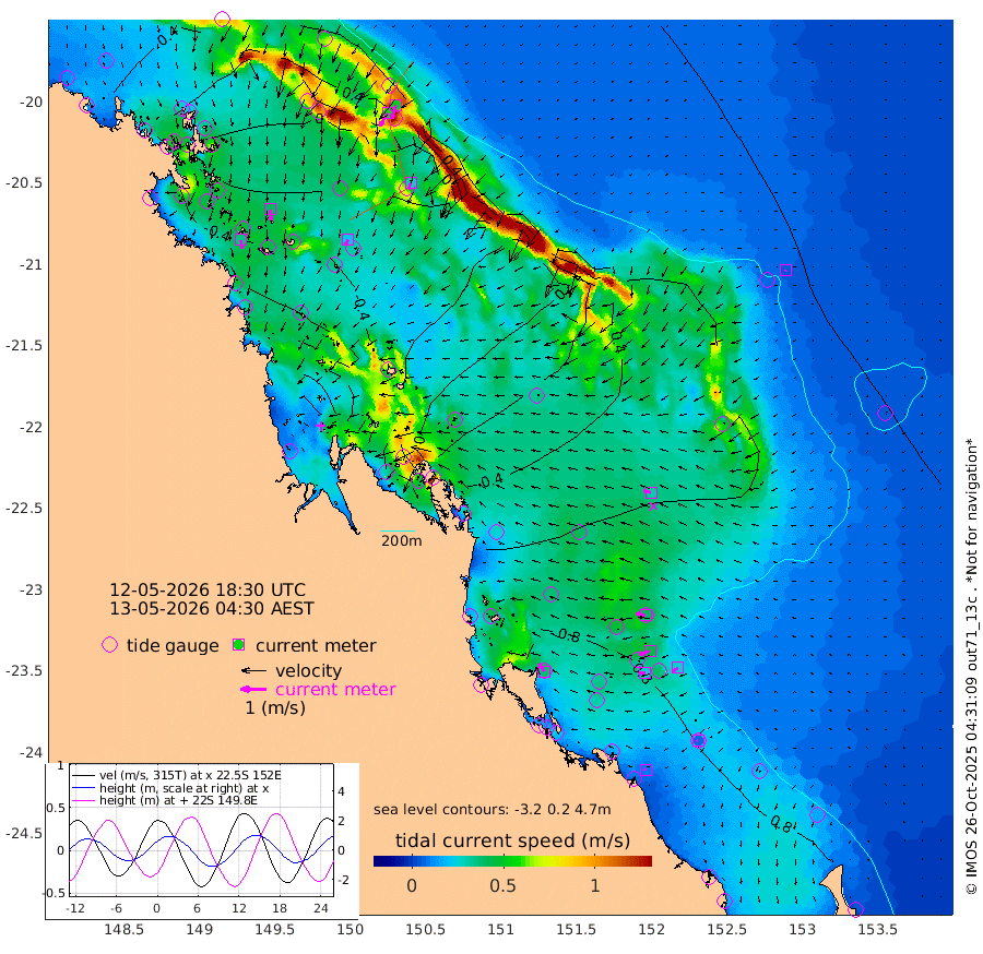 35cm/s 172T +10cm/s rms + 2cm/s 5T. Brampton I 18m 41cm/s 175T +9cm/s rms + 6cm/s 66T. Wigton I 38m 21cm/s -154T +7cm/s rms + 8cm/s 141T. Tern I 47m 55cm/s -160T +7cm/s rms + 12cm/s 54T. N Bugatti Rf 64m 60cm/s -148T +3cm/s rms + 13cm/s 178T. W Bugatti Rf 70m 28cm/s -163T +3cm/s rms + 3cm/s -130T. Creal Rf 69m 40cm/s -81T +7cm/s rms + 4cm/s 2T. North Rf 62m 38cm/s -34T +9cm/s rms + 2cm/s -56T. Cape Capricorn 26m 6cm/s -123T +5cm/s rms + 3cm/s 166T. L Musgrave I 42m 9cm/s -72T +9cm/s rms + 1cm/s -142T. Round Hill Hd 26m 4cm/s -131T +41cm/s rms + 48cm/s 116T. GBRELR 305m 30cm/s -72T +7cm/s rms + 6cm/s 123T. GBRCCH 92m 43cm/s -107T +8cm/s rms + 3cm/s -33T. GBRHIN 45m 25cm/s -96T +4cm/s rms + 2cm/s 41T. GBRHIS 46m 25cm/s -123T +16cm/s rms + 4cm/s -22T. GBROTE 59m 35cm Bell Cay 35cm Holbourne I -10cm Tern I 25cm Bugatti Rf 5cm Creal Rf 41cm White Tip I 79cm North Rf 97cm Rundle I 70cm L Musgrave I 54cm Saumarez Reef 46cm Kennedy Reef 57cm Unnamed Reef No. 2 42cm Abbot Point 34cm Bowen 11cm Tideway Reef 30cm Hayman Island 2cm Square Reef 25cm Double Bay 24cm Molle Island 10cm Cid Harbour 19cm Hook Island 4cm Border Island 5cm Haslewood Island 7cm Shute Harbour -18cm Thomas Island -1cm Credlin Reef -12cm East Repulse Island -21cm Blacksmith Island -35cm Laguna Quays -7cm Carlisle Island (Off) -30cm St. Bees Island -21cm Scawfell Island -3cm Penrith Island -35cm Mackay Outer Harbour -35cm Hay Point -37cm Prudhoe Island 3cm Middle Island (Percy Isles) 41cm Gannet Cay 59cm Elusive Reef -104cm Mcewin Islet 22cm Mumford Island 7cm Osborn Island 5cm Marquis Island 15cm Reef Point 32cm High Peak Island 64cm Port Clinton 70cm Peaked Island 88cm Karamea Bank 81cm Johnson Patch - NW 92cm Rosslyn Bay 96cm Middle Island (Keppel Isles) 92cm Port Alma 85cm Heron Island 89cm One Tree Islet 87cm Polmaise Reef 81cm Tryon Island 99cm Rock Cod Shoal 90cm Gatcombe Head 89cm Gladstone 94cm South Trees (Storm Surge) 91cm Clews Point 82cm Round Hill Head 70cm Lady Elliot Island 68cm Breaksea Spit 88cm Bundaberg (Burnett Heads) 91cm Elliot Heads 53cm Waddy Point (Fraser Island)
