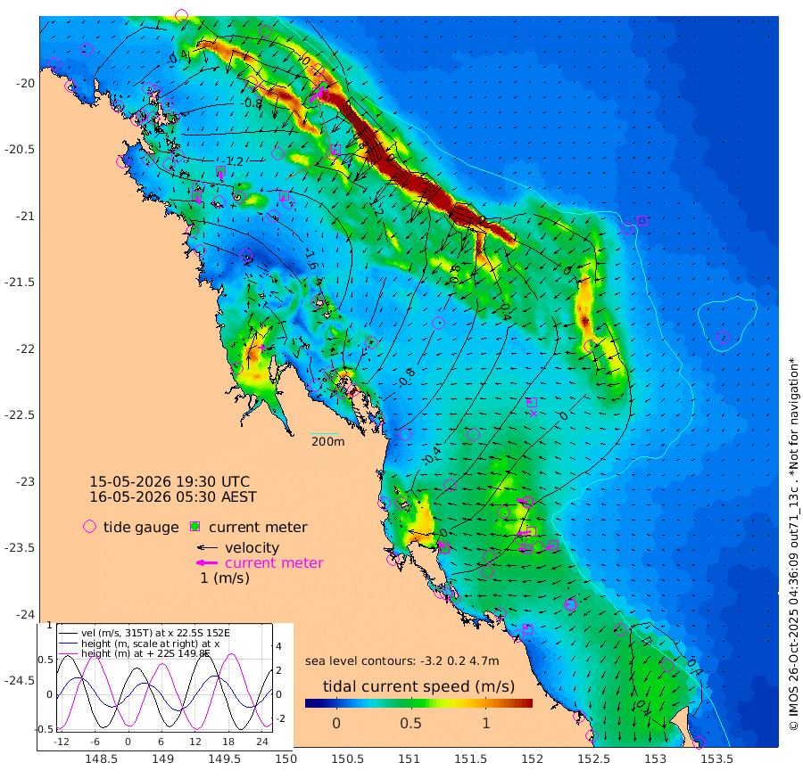 40cm/s 161T +10cm/s rms + 2cm/s 5T. Brampton I 18m 37cm/s 176T +9cm/s rms + 6cm/s 66T. Wigton I 38m 32cm/s -155T +7cm/s rms + 8cm/s 141T. Tern I 47m 59cm/s -155T +7cm/s rms + 12cm/s 54T. N Bugatti Rf 64m 57cm/s -146T +3cm/s rms + 13cm/s 178T. W Bugatti Rf 70m 30cm/s -152T +3cm/s rms + 3cm/s -130T. Creal Rf 69m 54cm/s -75T +7cm/s rms + 4cm/s 2T. North Rf 62m 46cm/s -42T +9cm/s rms + 2cm/s -56T. Cape Capricorn 26m 19cm/s -89T +5cm/s rms + 3cm/s 166T. L Musgrave I 42m 19cm/s -75T +9cm/s rms + 1cm/s -142T. Round Hill Hd 26m 6cm/s -144T +41cm/s rms + 48cm/s 116T. GBRELR 305m 27cm/s -77T +7cm/s rms + 6cm/s 123T. GBRCCH 92m 66cm/s -99T +8cm/s rms + 3cm/s -33T. GBRHIN 45m 43cm/s -94T +4cm/s rms + 2cm/s 41T. GBRHIS 46m 40cm/s -115T +16cm/s rms + 4cm/s -22T. GBROTE 59m -68cm Bell Cay -26cm Holbourne I -141cm Tern I -46cm Bugatti Rf -88cm Creal Rf -15cm White Tip I 18cm North Rf 21cm Rundle I 32cm L Musgrave I 30cm Saumarez Reef -6cm Kennedy Reef 7cm Unnamed Reef No. 2 -21cm Abbot Point -35cm Bowen -68cm Tideway Reef -51cm Hayman Island -97cm Square Reef -44cm Double Bay -71cm Molle Island -88cm Cid Harbour -56cm Hook Island -85cm Border Island -89cm Haslewood Island -85cm Shute Harbour -127cm Thomas Island -122cm Credlin Reef -142cm East Repulse Island -143cm Blacksmith Island -159cm Laguna Quays -137cm Carlisle Island (Off) -158cm St. Bees Island -146cm Scawfell Island -145cm Penrith Island -182cm Mackay Outer Harbour -193cm Hay Point -181cm Prudhoe Island -146cm Middle Island (Percy Isles) -57cm Gannet Cay 27cm Elusive Reef -310cm Mcewin Islet -137cm Mumford Island -180cm Osborn Island -189cm Marquis Island -159cm Reef Point -97cm High Peak Island -50cm Port Clinton -29cm Peaked Island 29cm Karamea Bank -1cm Johnson Patch - NW -12cm Rosslyn Bay -7cm Middle Island (Keppel Isles) -29cm Port Alma 28cm Heron Island 35cm One Tree Islet 27cm Polmaise Reef 9cm Tryon Island 31cm Rock Cod Shoal 13cm Gatcombe Head -3cm Gladstone 11cm South Trees (Storm Surge) 40cm Clews Point 32cm Round Hill Head 36cm Lady Elliot Island 35cm Breaksea Spit 38cm Bundaberg (Burnett Heads) 39cm Elliot Heads 25cm Waddy Point (Fraser Island)