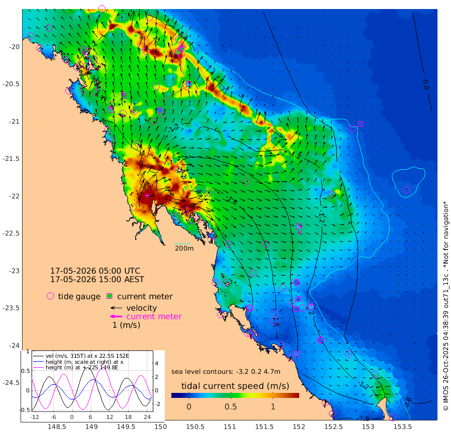 32cm/s -6T +10cm/s rms + 2cm/s 5T. Brampton I 18m 44cm/s -14T +9cm/s rms + 6cm/s 66T. Wigton I 38m 9cm/s 14T +7cm/s rms + 8cm/s 141T. Tern I 47m 43cm/s 7T +7cm/s rms + 12cm/s 54T. N Bugatti Rf 64m 60cm/s 27T +3cm/s rms + 13cm/s 178T. W Bugatti Rf 70m 24cm/s -8T +3cm/s rms + 3cm/s -130T. Creal Rf 69m 7cm/s 25T +7cm/s rms + 4cm/s 2T. North Rf 62m 14cm/s 168T +9cm/s rms + 2cm/s -56T. Cape Capricorn 26m 8cm/s -49T +5cm/s rms + 3cm/s 166T. L Musgrave I 42m 11cm/s -54T +9cm/s rms + 1cm/s -142T. Round Hill Hd 26m 4cm/s -11T +41cm/s rms + 48cm/s 116T. GBRELR 305m 27cm/s 100T +7cm/s rms + 6cm/s 123T. GBRCCH 92m 9cm/s 14T +8cm/s rms + 3cm/s -33T. GBRHIN 45m 6cm/s -37T +4cm/s rms + 2cm/s 41T. GBRHIS 46m 20cm/s -5T +16cm/s rms + 4cm/s -22T. GBROTE 59m -159cm Bell Cay -128cm Holbourne I -164cm Tern I -122cm Bugatti Rf -134cm Creal Rf -115cm White Tip I -135cm North Rf -170cm Rundle I -99cm L Musgrave I -93cm Saumarez Reef -123cm Kennedy Reef -120cm Unnamed Reef No. 2 -129cm Abbot Point -129cm Bowen -124cm Tideway Reef -131cm Hayman Island -146cm Square Reef -141cm Double Bay -135cm Molle Island -136cm Cid Harbour -128cm Hook Island -119cm Border Island -125cm Haslewood Island -132cm Shute Harbour -132cm Thomas Island -154cm Credlin Reef -146cm East Repulse Island -142cm Blacksmith Island -133cm Laguna Quays -155cm Carlisle Island (Off) -173cm St. Bees Island -149cm Scawfell Island -165cm Penrith Island -155cm Mackay Outer Harbour -165cm Hay Point -170cm Prudhoe Island -200cm Middle Island (Percy Isles) -145cm Gannet Cay -85cm Elusive Reef -139cm Mcewin Islet -220cm Mumford Island -212cm Osborn Island -223cm Marquis Island -208cm Reef Point -184cm High Peak Island -201cm Port Clinton -206cm Peaked Island -139cm Karamea Bank -174cm Johnson Patch - NW -202cm Rosslyn Bay -206cm Middle Island (Keppel Isles) -223cm Port Alma -135cm Heron Island -137cm One Tree Islet -147cm Polmaise Reef -145cm Tryon Island -152cm Rock Cod Shoal -161cm Gatcombe Head -184cm Gladstone -177cm South Trees (Storm Surge) -132cm Clews Point -122cm Round Hill Head -93cm Lady Elliot Island -87cm Breaksea Spit -133cm Bundaberg (Burnett Heads) -142cm Elliot Heads -65cm Waddy Point (Fraser Island)