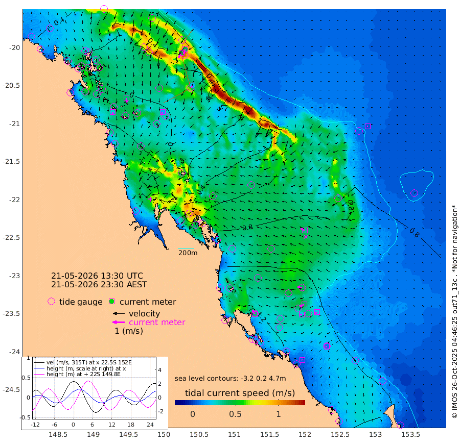 27cm/s -178T +10cm/s rms + 2cm/s 5T. Brampton I 18m 37cm/s 176T +9cm/s rms + 6cm/s 66T. Wigton I 38m 17cm/s -139T +7cm/s rms + 8cm/s 141T. Tern I 47m 43cm/s -161T +7cm/s rms + 12cm/s 54T. N Bugatti Rf 64m 49cm/s -147T +3cm/s rms + 13cm/s 178T. W Bugatti Rf 70m 19cm/s -157T +3cm/s rms + 3cm/s -130T. Creal Rf 69m 39cm/s -84T +7cm/s rms + 4cm/s 2T. North Rf 62m 37cm/s -31T +9cm/s rms + 2cm/s -56T. Cape Capricorn 26m 10cm/s -147T +5cm/s rms + 3cm/s 166T. L Musgrave I 42m 6cm/s -99T +9cm/s rms + 1cm/s -142T. Round Hill Hd 26m 6cm/s -90T +41cm/s rms + 48cm/s 116T. GBRELR 305m 36cm/s -66T +7cm/s rms + 6cm/s 123T. GBRCCH 92m 39cm/s -112T +8cm/s rms + 3cm/s -33T. GBRHIN 45m 24cm/s -94T +4cm/s rms + 2cm/s 41T. GBRHIS 46m 23cm/s -113T +16cm/s rms + 4cm/s -22T. GBROTE 59m 66cm Bell Cay 43cm Holbourne I 25cm Tern I 42cm Bugatti Rf 33cm Creal Rf 52cm White Tip I 104cm North Rf 122cm Rundle I 94cm L Musgrave I 73cm Saumarez Reef 48cm Kennedy Reef 60cm Unnamed Reef No. 2 34cm Abbot Point 29cm Bowen 21cm Tideway Reef 30cm Hayman Island 23cm Square Reef 39cm Double Bay 23cm Molle Island 12cm Cid Harbour 33cm Hook Island 11cm Border Island 8cm Haslewood Island 17cm Shute Harbour 6cm Thomas Island 19cm Credlin Reef -5cm East Repulse Island -4cm Blacksmith Island -10cm Laguna Quays 5cm Carlisle Island (Off) 2cm St. Bees Island 3cm Scawfell Island 18cm Penrith Island 1cm Mackay Outer Harbour 5cm Hay Point 19cm Prudhoe Island 64cm Middle Island (Percy Isles) 69cm Gannet Cay 70cm Elusive Reef -42cm Mcewin Islet 65cm Mumford Island 38cm Osborn Island 42cm Marquis Island 40cm Reef Point 64cm High Peak Island 109cm Port Clinton 113cm Peaked Island 109cm Karamea Bank 125cm Johnson Patch - NW 123cm Rosslyn Bay 124cm Middle Island (Keppel Isles) 125cm Port Alma 111cm Heron Island 124cm One Tree Islet 119cm Polmaise Reef 109cm Tryon Island 115cm Rock Cod Shoal 114cm Gatcombe Head 119cm Gladstone 121cm South Trees (Storm Surge) 117cm Clews Point 109cm Round Hill Head 95cm Lady Elliot Island 97cm Breaksea Spit 109cm Bundaberg (Burnett Heads) 110cm Elliot Heads 81cm Waddy Point (Fraser Island)