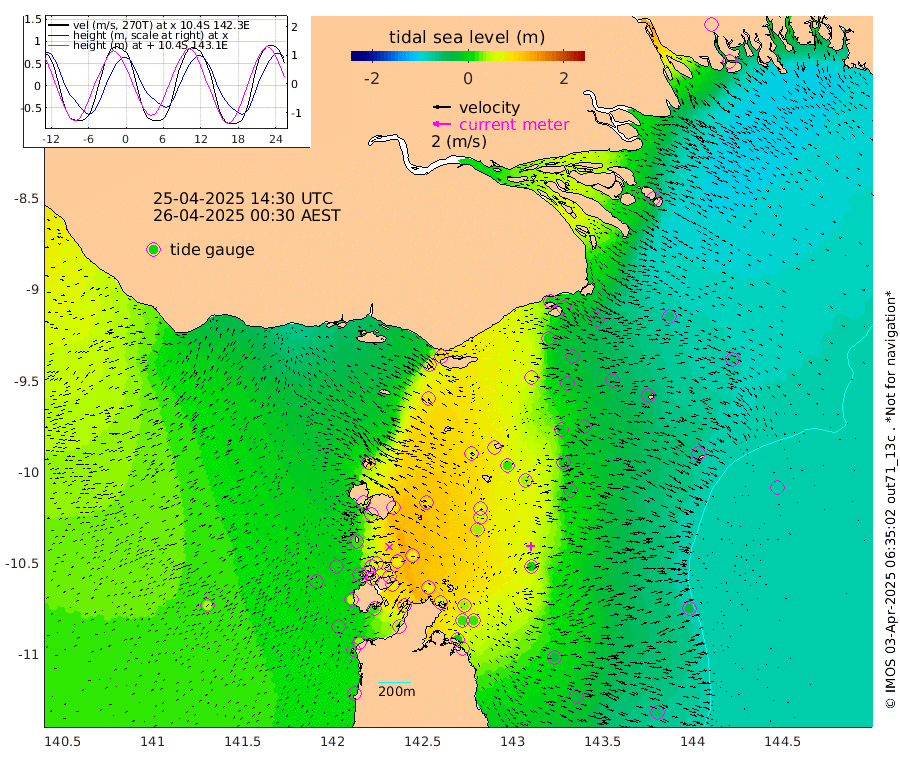 8cm Daru 0cm Bobo Island -28cm Umuda Island -28cm Goaribari Island 190cm Omati -61cm Meer Island Barge -56cm Bramble Cay -23cm Unnamed Cay -27cm Pearce Cay -39cm Stephens Island -34cm Merrie England Shoals 5cm Mutacomal Reef -37cm Darnley Island Barge -66cm East Cay -10cm Yorke Island Barge -12cm Rennel Island -80cm Ashmore Reef North 0cm Aureed Island 19cm Dungeness Reef 81cm Zagai Island 71cm Yam Island 92cm Dauan Island 106cm Saibai Island 90cm Phipi Reef 75cm Warrior Reef - West 92cm Mabuiag Island Barge -15cm Half Way Island 30cm Coconut Island 2cm Dugong Islet 48cm Poll Island 37cm Kirkcaldie Reef 93cm Suarji Island 58cm Sue Islet 21cm Hawkesbury Island 75cm Alert Patches 72cm Twin Island 45cm Badu Island 89cm St Pauls (Moa Island) 37cm Kubin (Moa Island) 69cm Ince Point 63cm Thursday Island 66cm Nardana Patches 41cm Turtle Head 50cm Round Island 14cm Goods Island 14cm Booby Island 14cm White Rocks Area 40cm Carpentaria 74cm Papou Point 47cm Bampfield Head 10cm Crab Island 13cm Red Wallis Island 22cm Packe Island 17cm Harrington Reef 32cm Herald Camp 38cm Sharp Point 37cm Red Island Point 71cm Possession Island 68cm Alpha Rock 50cm Frederick Point 20cm Wyborn Reef Light 33cm Tetley Island -35cm Triangle Reef 3cm Turtle Head Island -53cm Maclennan Cay -24cm Mcsweeny Reef -29cm Collette Reef 7cm Vrilya Point
