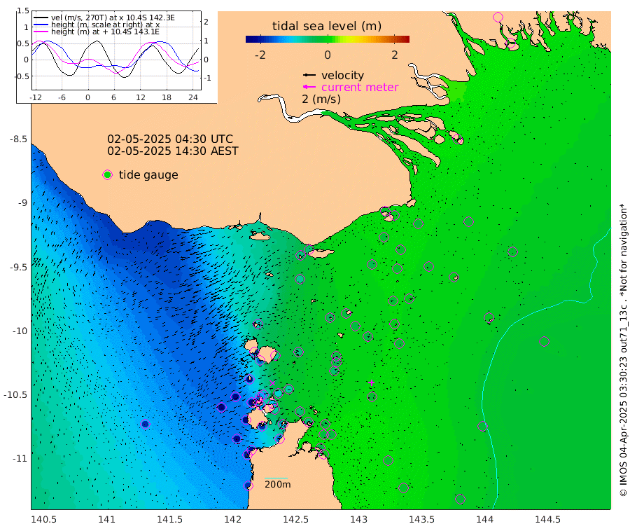 -22cm Daru -11cm Bobo Island -4cm Umuda Island 5cm Goaribari Island -5cm Omati -13cm Meer Island Barge -17cm Bramble Cay -21cm Unnamed Cay -19cm Pearce Cay -17cm Stephens Island -23cm Merrie England Shoals -28cm Mutacomal Reef -7cm Darnley Island Barge -21cm East Cay -10cm Yorke Island Barge -28cm Rennel Island -19cm Ashmore Reef North -11cm Aureed Island -35cm Dungeness Reef -30cm Zagai Island -50cm Yam Island -65cm Dauan Island -53cm Saibai Island -69cm Phipi Reef -38cm Warrior Reef - West -97cm Mabuiag Island Barge -25cm Half Way Island -37cm Coconut Island -29cm Dugong Islet -43cm Poll Island -54cm Kirkcaldie Reef -63cm Suarji Island -36cm Sue Islet -211cm Hawkesbury Island -92cm Alert Patches -81cm Twin Island -190cm Badu Island -80cm St Pauls (Moa Island) -163cm Kubin (Moa Island) -111cm Ince Point -133cm Thursday Island -126cm Nardana Patches -161cm Turtle Head -175cm Round Island -204cm Goods Island -228cm Booby Island -219cm White Rocks Area -183cm Carpentaria -79cm Papou Point -232cm Bampfield Head -197cm Crab Island -216cm Red Wallis Island -186cm Packe Island -35cm Harrington Reef -209cm Herald Camp -12cm Sharp Point -152cm Red Island Point -113cm Possession Island -58cm Alpha Rock -60cm Frederick Point -31cm Wyborn Reef Light -36cm Tetley Island -23cm Triangle Reef -43cm Turtle Head Island -25cm Maclennan Cay -20cm Mcsweeny Reef -18cm Collette Reef -184cm Vrilya Point