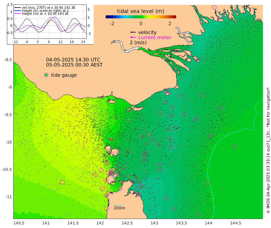 -43cm Daru -40cm Bobo Island -71cm Umuda Island -83cm Goaribari Island -61cm Omati -24cm Meer Island Barge -34cm Bramble Cay -41cm Unnamed Cay -41cm Pearce Cay -45cm Stephens Island -49cm Merrie England Shoals -44cm Mutacomal Reef -40cm Darnley Island Barge -29cm East Cay -40cm Yorke Island Barge -43cm Rennel Island -20cm Ashmore Reef North -42cm Aureed Island -35cm Dungeness Reef -4cm Zagai Island -6cm Yam Island 32cm Dauan Island 33cm Saibai Island 12cm Phipi Reef -10cm Warrior Reef - West 43cm Mabuiag Island Barge -46cm Half Way Island -30cm Coconut Island -46cm Dugong Islet -22cm Poll Island -32cm Kirkcaldie Reef -9cm Suarji Island -20cm Sue Islet 96cm Hawkesbury Island 0cm Alert Patches -1cm Twin Island 89cm Badu Island 4cm St Pauls (Moa Island) 66cm Kubin (Moa Island) 22cm Ince Point 35cm Thursday Island 33cm Nardana Patches 50cm Turtle Head 81cm Round Island 84cm Goods Island 98cm Booby Island 90cm White Rocks Area 81cm Carpentaria 14cm Papou Point 123cm Bampfield Head 79cm Crab Island 86cm Red Wallis Island 64cm Packe Island -50cm Harrington Reef 93cm Herald Camp -8cm Sharp Point 45cm Red Island Point 31cm Possession Island -6cm Alpha Rock -20cm Frederick Point -30cm Wyborn Reef Light -24cm Tetley Island -14cm Triangle Reef -30cm Turtle Head Island -23cm Maclennan Cay -43cm Mcsweeny Reef -39cm Collette Reef 65cm Vrilya Point
