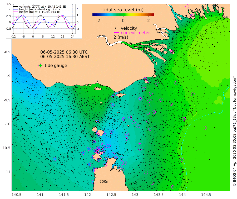 -67cm Daru -53cm Bobo Island -43cm Umuda Island -44cm Goaribari Island -153cm Omati 2cm Meer Island Barge -11cm Bramble Cay -44cm Unnamed Cay -42cm Pearce Cay -33cm Stephens Island -35cm Merrie England Shoals -67cm Mutacomal Reef -23cm Darnley Island Barge 0cm East Cay -45cm Yorke Island Barge -57cm Rennel Island 22cm Ashmore Reef North -49cm Aureed Island -80cm Dungeness Reef -102cm Zagai Island -120cm Yam Island -119cm Dauan Island -110cm Saibai Island -115cm Phipi Reef -107cm Warrior Reef - West -127cm Mabuiag Island Barge -61cm Half Way Island -78cm Coconut Island -77cm Dugong Islet -100cm Poll Island -104cm Kirkcaldie Reef -123cm Suarji Island -96cm Sue Islet -157cm Hawkesbury Island -128cm Alert Patches -128cm Twin Island -141cm Badu Island -140cm St Pauls (Moa Island) -149cm Kubin (Moa Island) -136cm Ince Point -140cm Thursday Island -139cm Nardana Patches -135cm Turtle Head -149cm Round Island -136cm Goods Island -141cm Booby Island -138cm White Rocks Area -123cm Carpentaria -126cm Papou Point -157cm Bampfield Head -115cm Crab Island -139cm Red Wallis Island -145cm Packe Island -85cm Harrington Reef -165cm Herald Camp -40cm Sharp Point -123cm Red Island Point -132cm Possession Island -111cm Alpha Rock -109cm Frederick Point -77cm Wyborn Reef Light -87cm Tetley Island -15cm Triangle Reef -84cm Turtle Head Island -12cm Maclennan Cay -38cm Mcsweeny Reef -25cm Collette Reef -105cm Vrilya Point