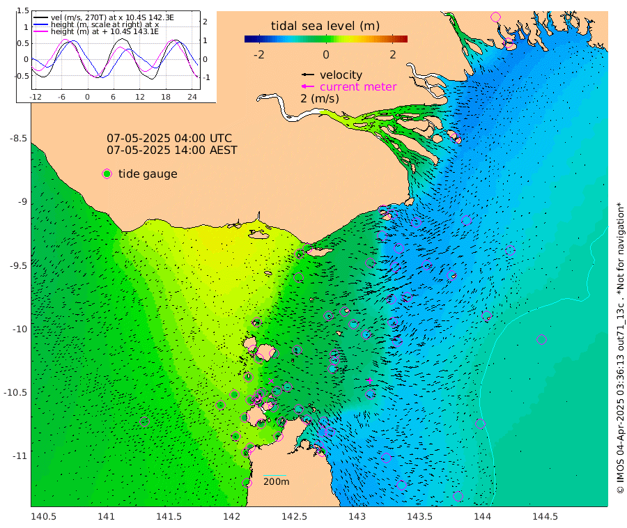 -112cm Daru -120cm Bobo Island -142cm Umuda Island -148cm Goaribari Island -53cm Omati -85cm Meer Island Barge -106cm Bramble Cay -119cm Unnamed Cay -116cm Pearce Cay -120cm Stephens Island -123cm Merrie England Shoals -119cm Mutacomal Reef -109cm Darnley Island Barge -99cm East Cay -109cm Yorke Island Barge -117cm Rennel Island -69cm Ashmore Reef North -113cm Aureed Island -96cm Dungeness Reef -65cm Zagai Island -70cm Yam Island 8cm Dauan Island -2cm Saibai Island 2cm Phipi Reef -55cm Warrior Reef - West -9cm Mabuiag Island Barge -116cm Half Way Island -109cm Coconut Island -115cm Dugong Islet -89cm Poll Island -94cm Kirkcaldie Reef -73cm Suarji Island -80cm Sue Islet -3cm Hawkesbury Island -62cm Alert Patches -73cm Twin Island 9cm Badu Island -60cm St Pauls (Moa Island) -25cm Kubin (Moa Island) -44cm Ince Point -35cm Thursday Island -35cm Nardana Patches -19cm Turtle Head -24cm Round Island -3cm Goods Island 6cm Booby Island -8cm White Rocks Area -18cm Carpentaria -60cm Papou Point -34cm Bampfield Head 13cm Crab Island -2cm Red Wallis Island -23cm Packe Island -130cm Harrington Reef -20cm Herald Camp -11cm Sharp Point -17cm Red Island Point -52cm Possession Island -78cm Alpha Rock -96cm Frederick Point -121cm Wyborn Reef Light -115cm Tetley Island -76cm Triangle Reef -126cm Turtle Head Island -88cm Maclennan Cay -113cm Mcsweeny Reef -104cm Collette Reef 14cm Vrilya Point