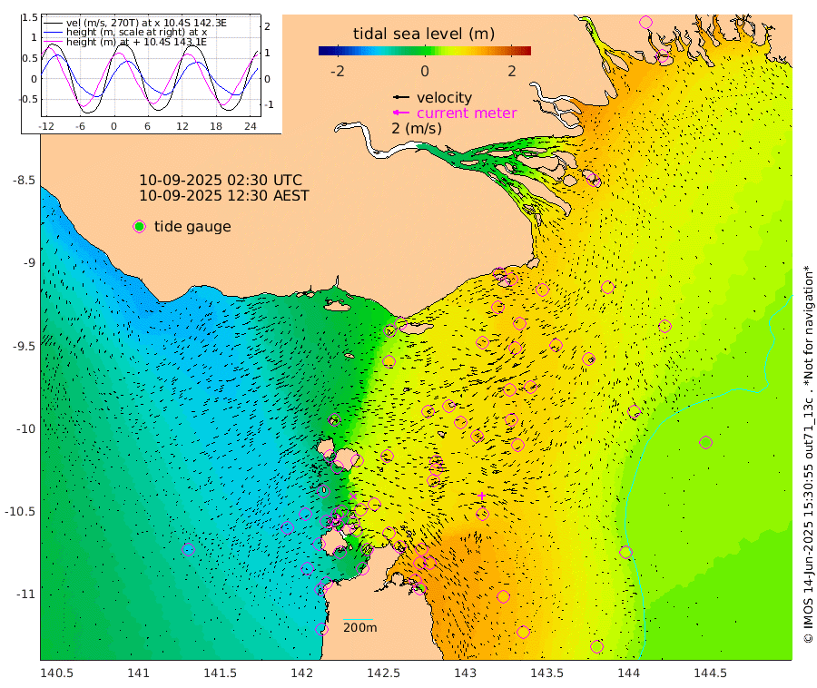 126cm Daru 125cm Bobo Island 139cm Umuda Island 150cm Goaribari Island 151cm Omati 53cm Meer Island Barge 78cm Bramble Cay 106cm Unnamed Cay 109cm Pearce Cay 99cm Stephens Island 102cm Merrie England Shoals 115cm Mutacomal Reef 92cm Darnley Island Barge 54cm East Cay 107cm Yorke Island Barge 104cm Rennel Island 24cm Ashmore Reef North 112cm Aureed Island 111cm Dungeness Reef 111cm Zagai Island 93cm Yam Island 64cm Dauan Island 58cm Saibai Island 91cm Phipi Reef 109cm Warrior Reef - West 25cm Mabuiag Island Barge 102cm Half Way Island 118cm Coconut Island 104cm Dugong Islet 103cm Poll Island 100cm Kirkcaldie Reef 96cm Suarji Island 99cm Sue Islet -77cm Hawkesbury Island 70cm Alert Patches 76cm Twin Island -40cm Badu Island 80cm St Pauls (Moa Island) -23cm Kubin (Moa Island) 36cm Ince Point 11cm Thursday Island 18cm Nardana Patches -17cm Turtle Head -30cm Round Island -73cm Goods Island -110cm Booby Island -100cm White Rocks Area -111cm Carpentaria 63cm Papou Point -84cm Bampfield Head -90cm Crab Island -105cm Red Wallis Island -47cm Packe Island 120cm Harrington Reef -78cm Herald Camp 28cm Sharp Point -23cm Red Island Point 39cm Possession Island 74cm Alpha Rock 96cm Frederick Point 121cm Wyborn Reef Light 118cm Tetley Island 50cm Triangle Reef 123cm Turtle Head Island 44cm Maclennan Cay 99cm Mcsweeny Reef 89cm Collette Reef -97cm Vrilya Point